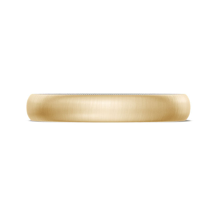 Solid 18k gold is expertly crafted into a sleek, domed ring that enthralls a mined diamond center. The high polish finish lends a striking and alluring contrast to the bezel-inspired piece, while a hidden TACORI Crescent adds dimension.