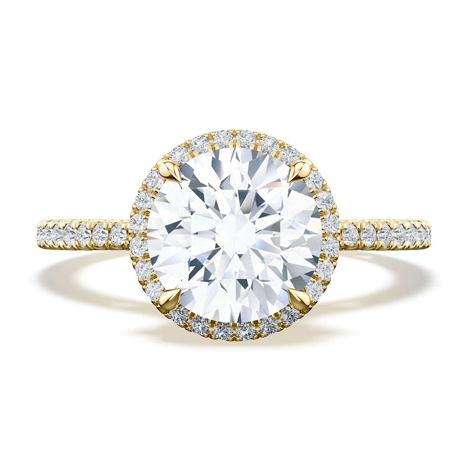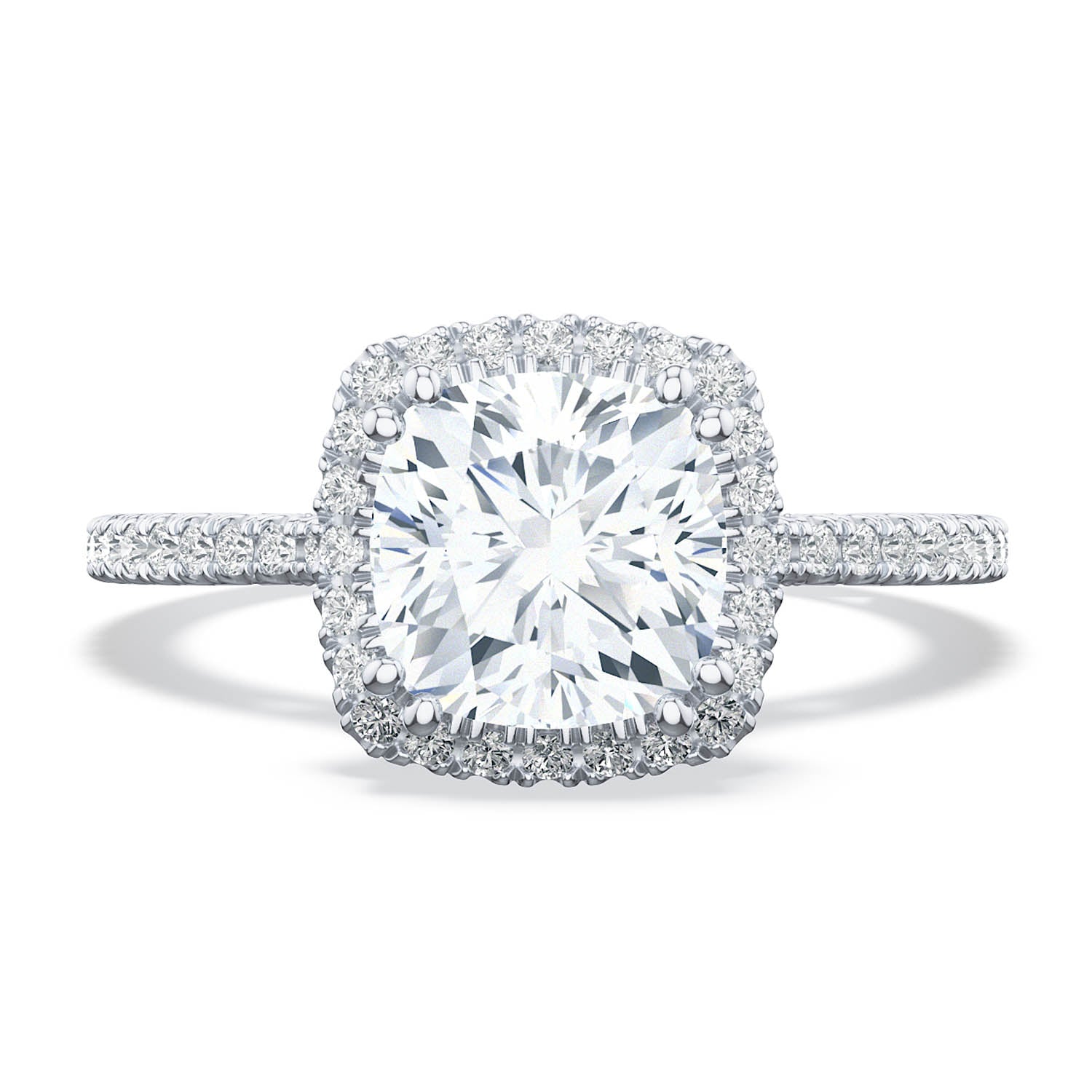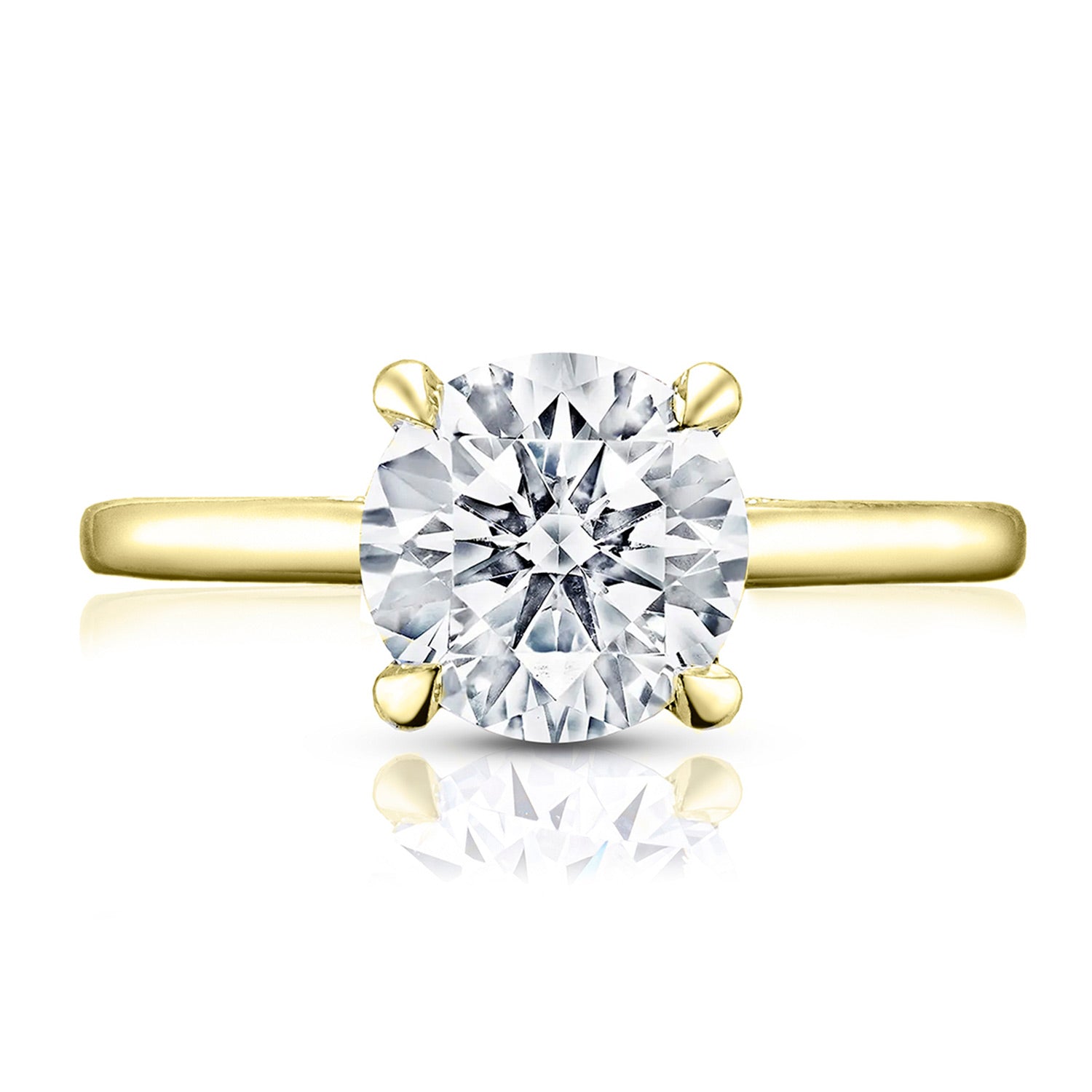 A bloomed round brilliant solitaire rests on a Cathedral foundation above a pavé ceiling and a Simply TACORI inner face. Stunning milgrain is inspired by the draping found in bridal gowns, and evokes couture bridal wear.