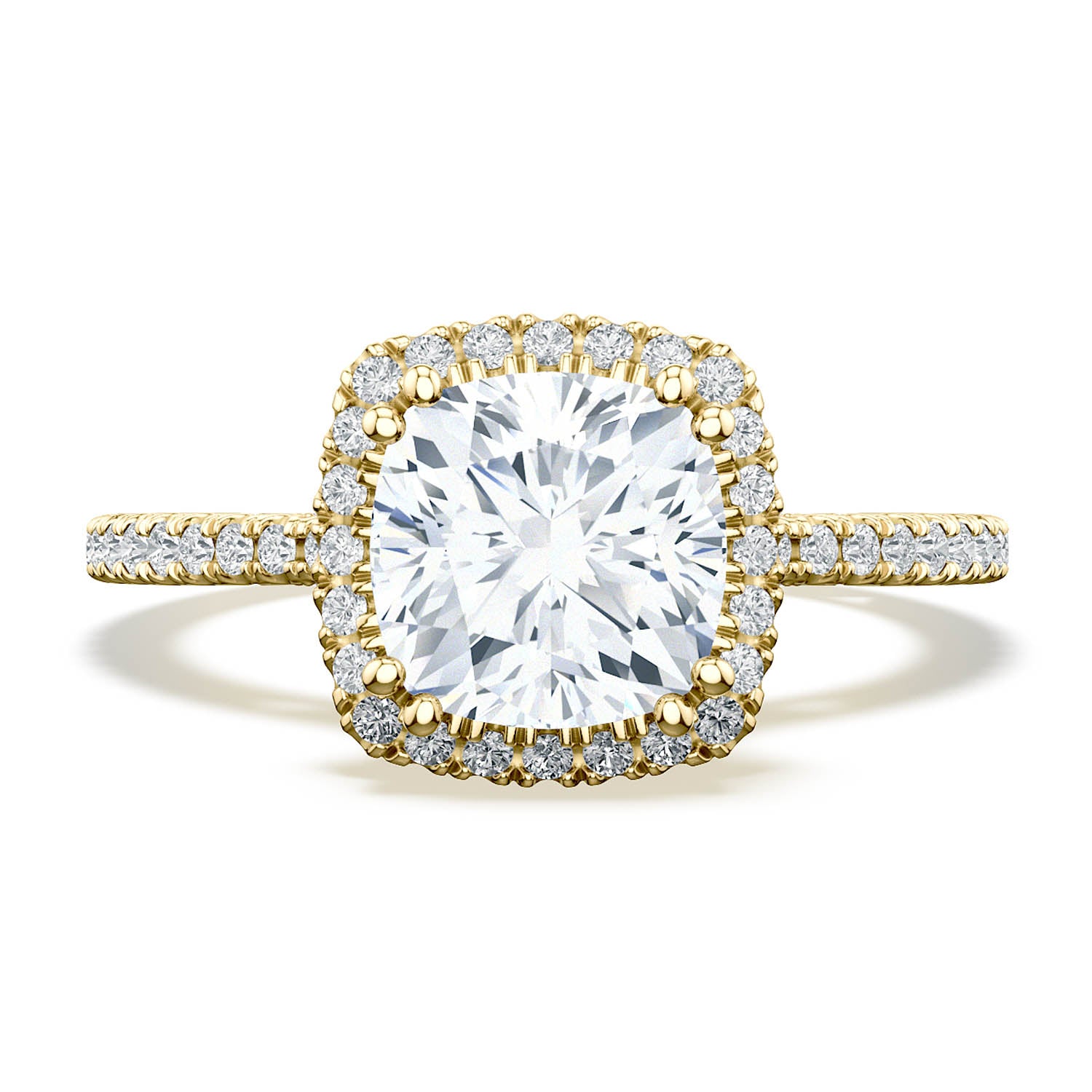 A bloom solitaire rests on a Cathedral foundation above a pavé ceiling and a Simply TACORI inner face. Stunning milgrain is inspired by the draping found in bridal gowns, and evokes couture bridal wear.