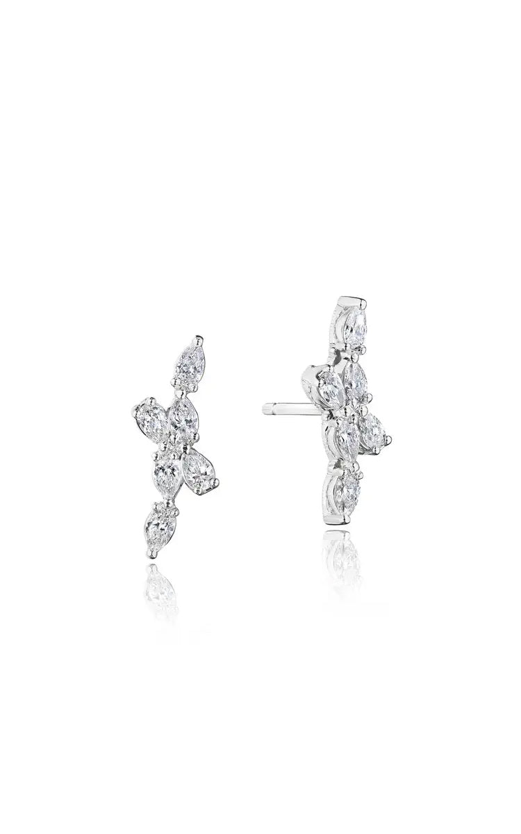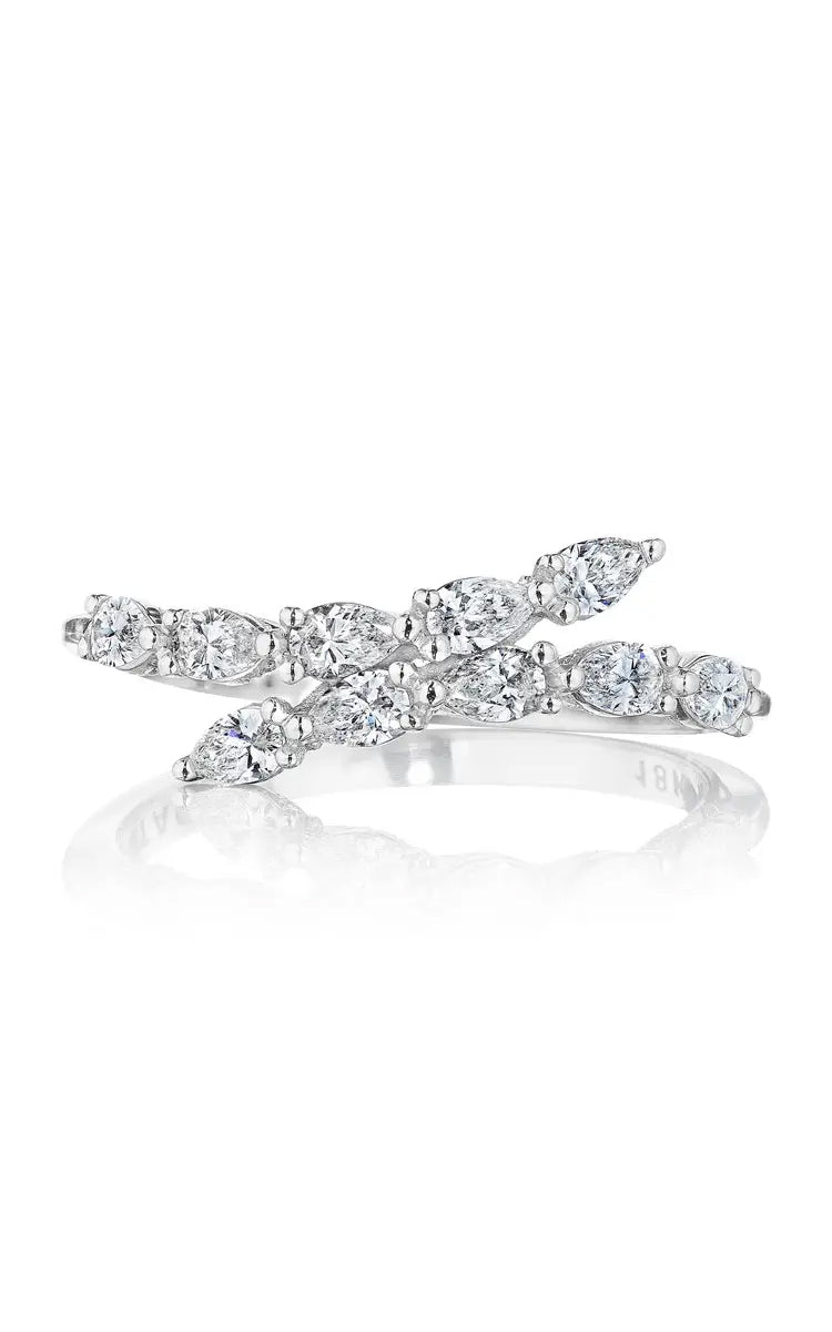 Passing strings of marquise and round brilliant cut diamonds are set into a foundation of 18k White Gold. The silhouette of each stone is embellished with milgrain-accented TACORI Crescents.