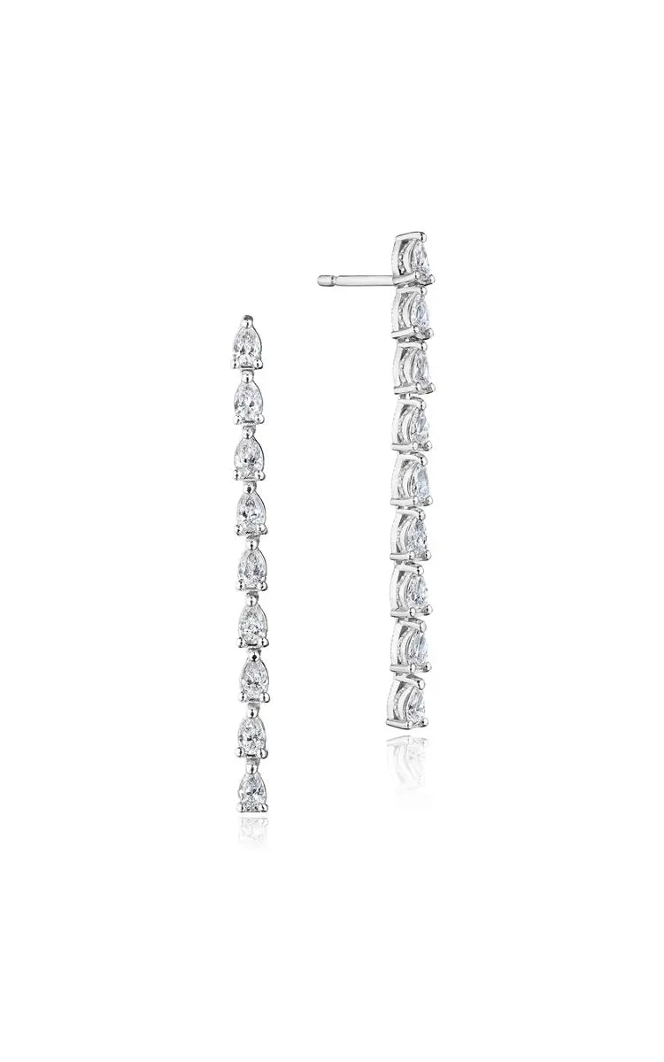 Passing strings of pear cut diamonds hang gracefully from a delicate 18k White Gold. Milgrain-accented TACORI Crescents decorate the silhouette of each stone.