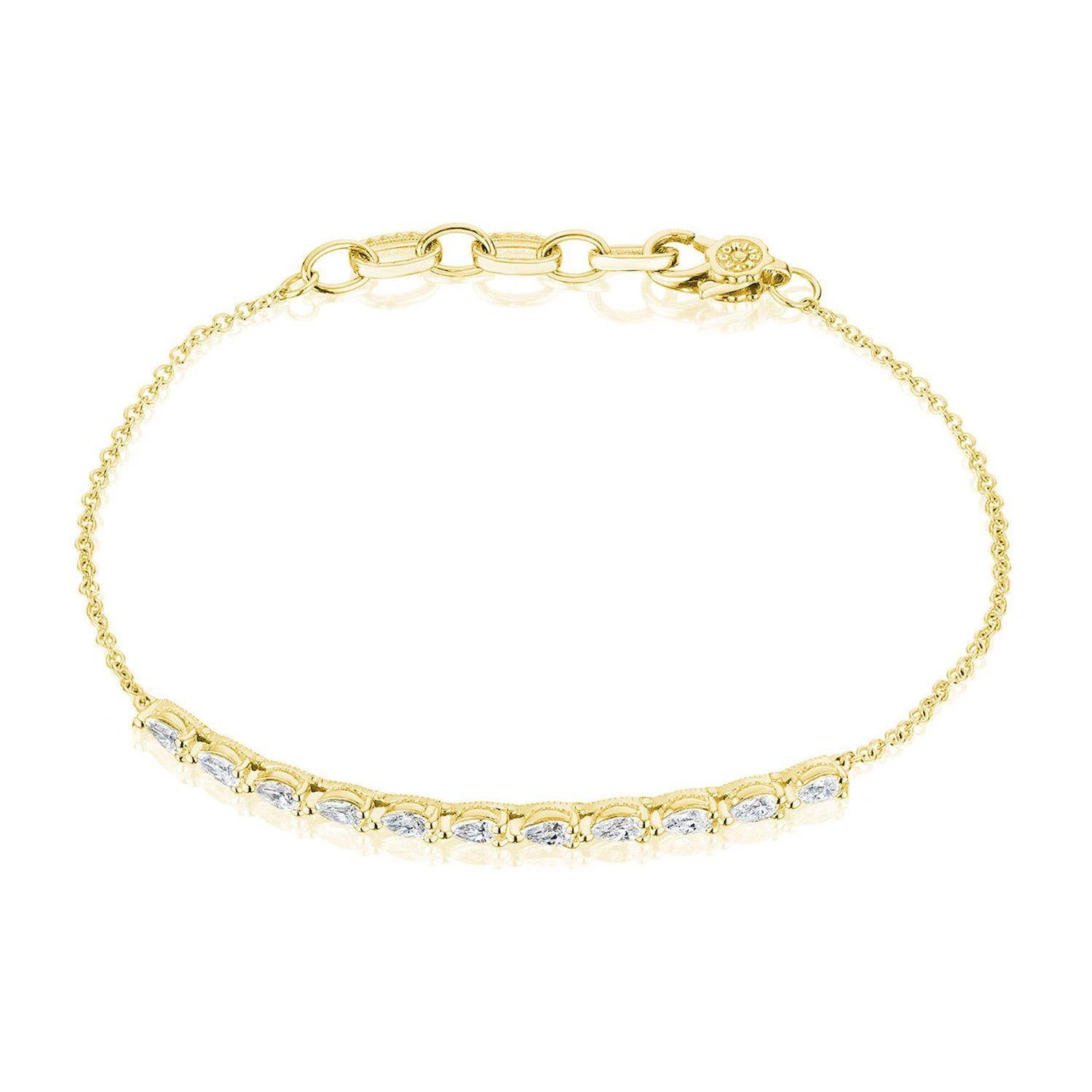 A glimmering, unbroken string of pear cut diamonds are set into delicate 18k White Gold. Milgrain-accented TACORI Crescents embellish the silhouette of each stone.