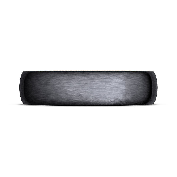 Solid 18k gold is expertly crafted into a sleek, domed ring that enthralls a mined diamond center. The high polish finish lends a striking and alluring contrast to the bezel-inspired piece, while a hidden TACORI Crescent adds dimension.
