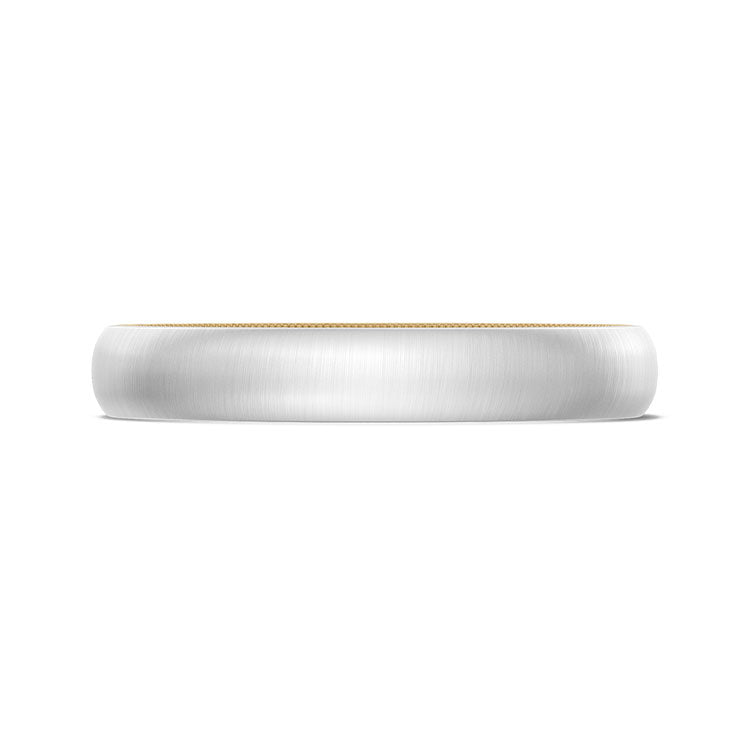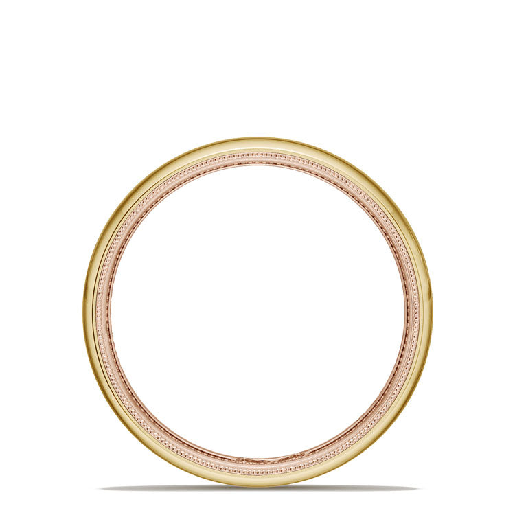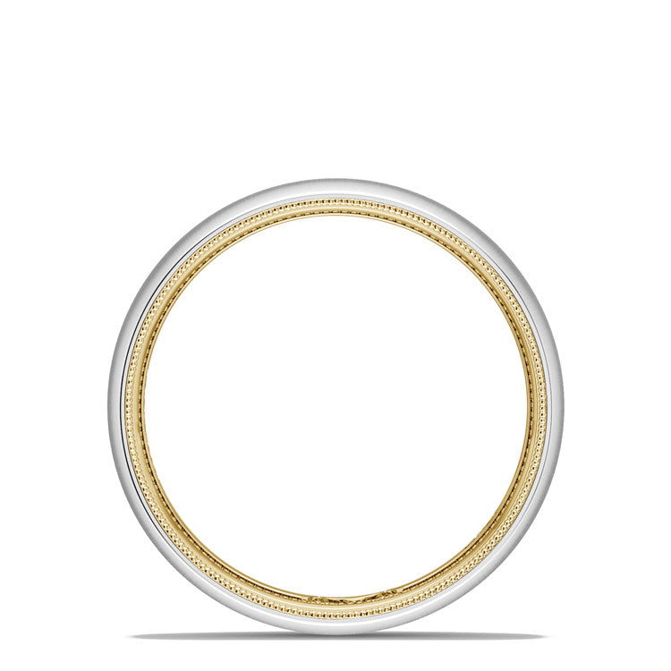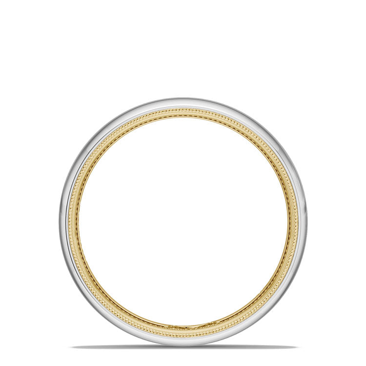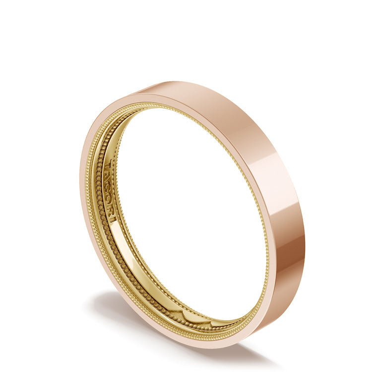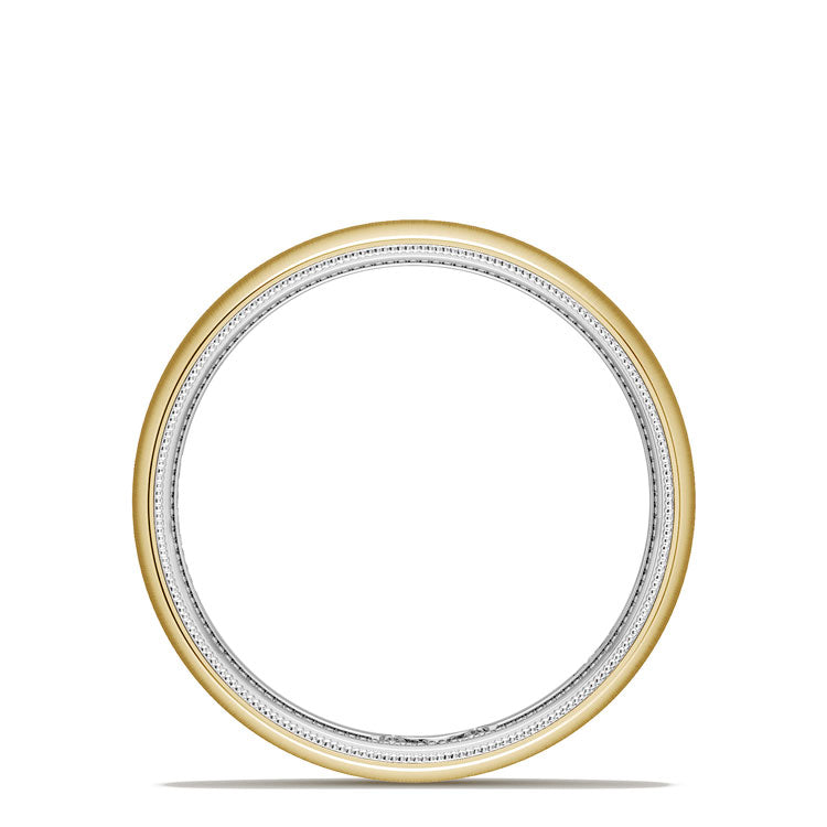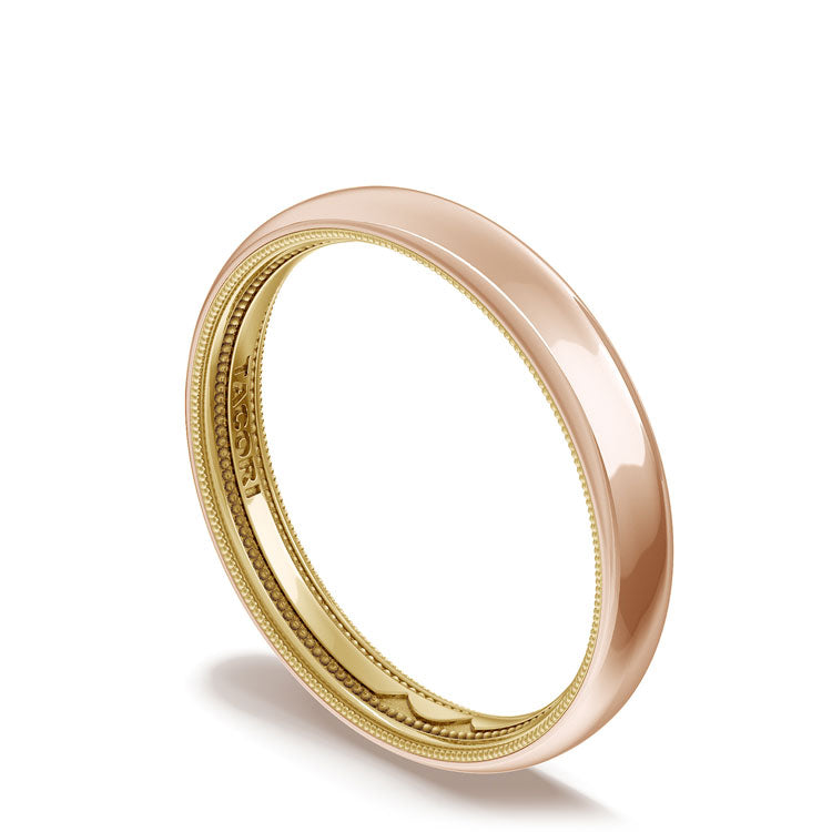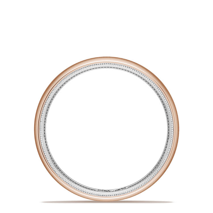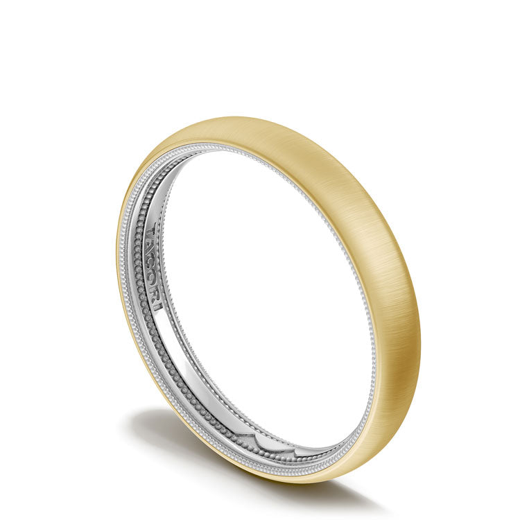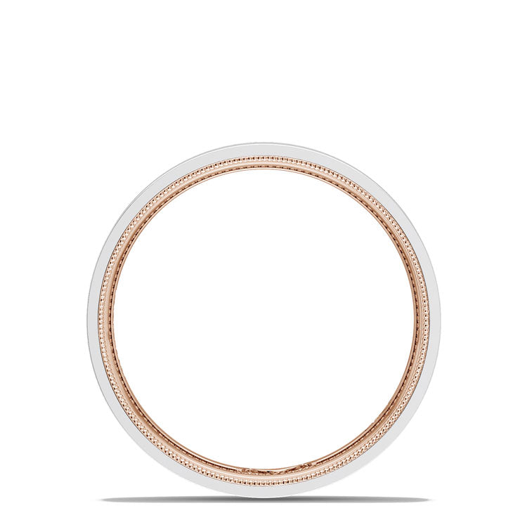 A band of two premium TACORI metals features a stunning tone-on-tone color contrast. The inner face silhouette is decorated with Crescent detailing and hand-hewn milgrain. Rings are available in sizes 4-12.