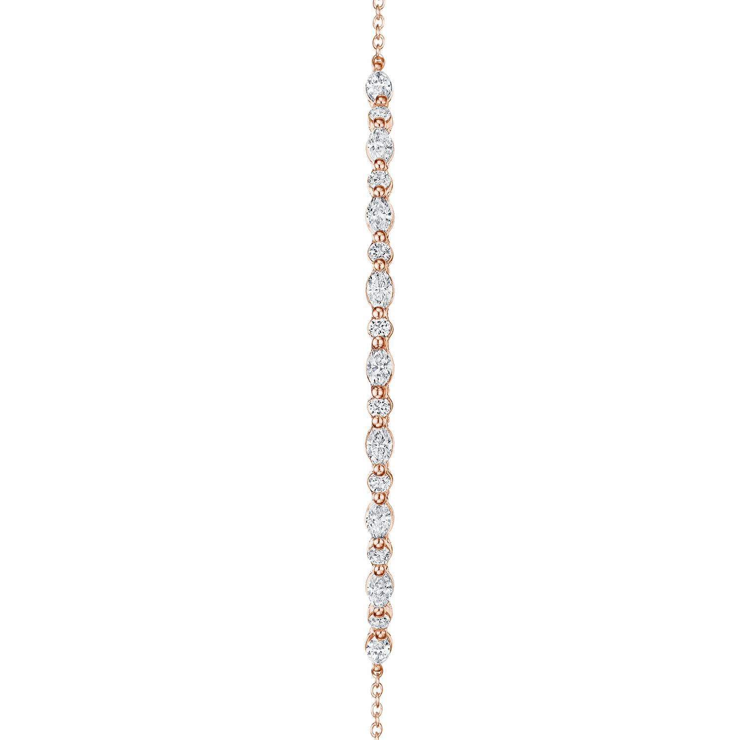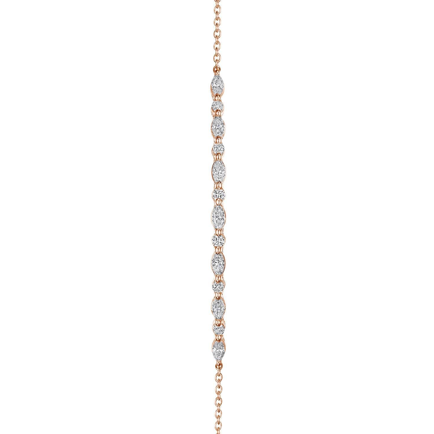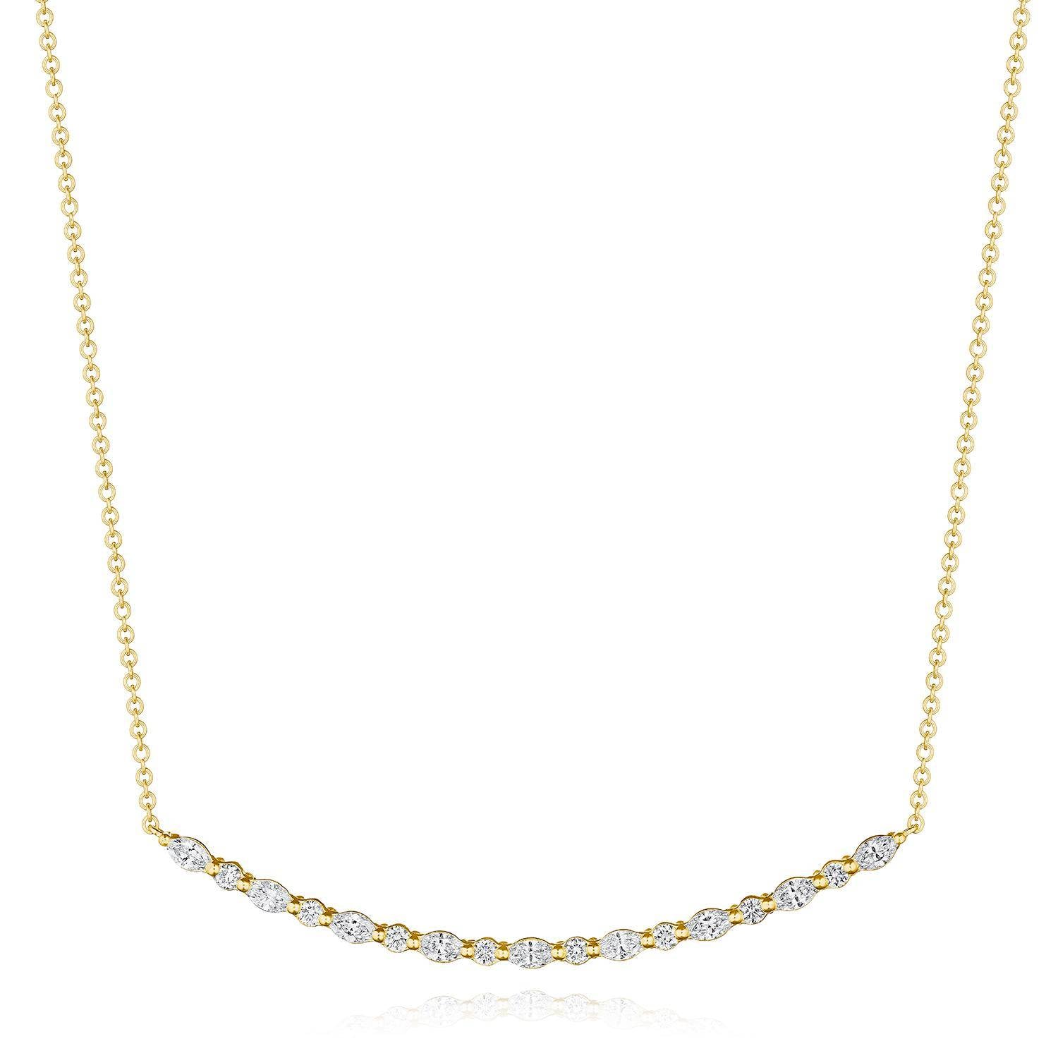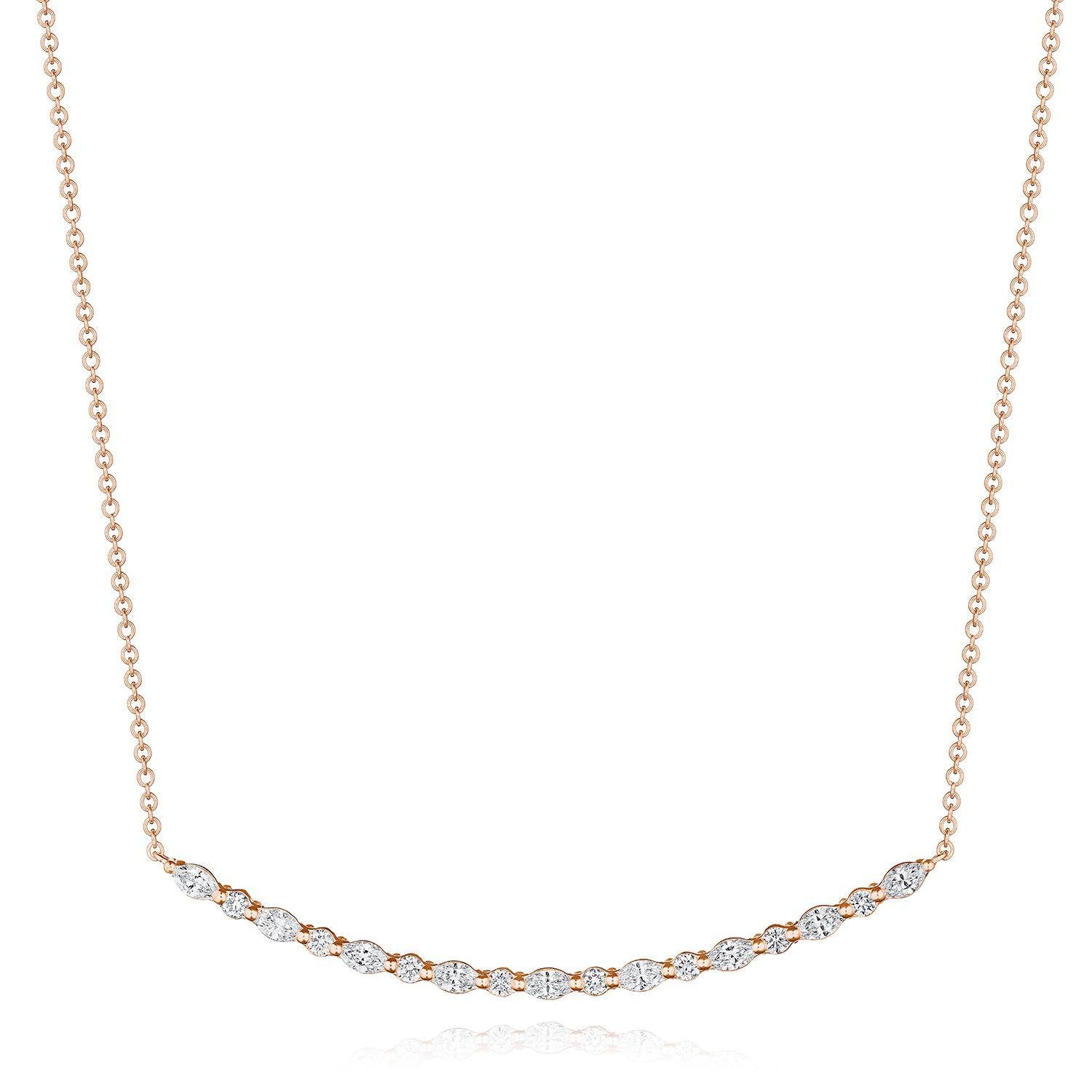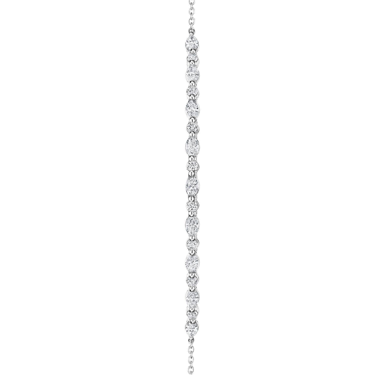 A delicate string of marquise and round brilliant cut diamonds hangs from a chain of 18k White Gold. The silhouette of each stone is embellished with milgrain-accented TACORI Crescents.