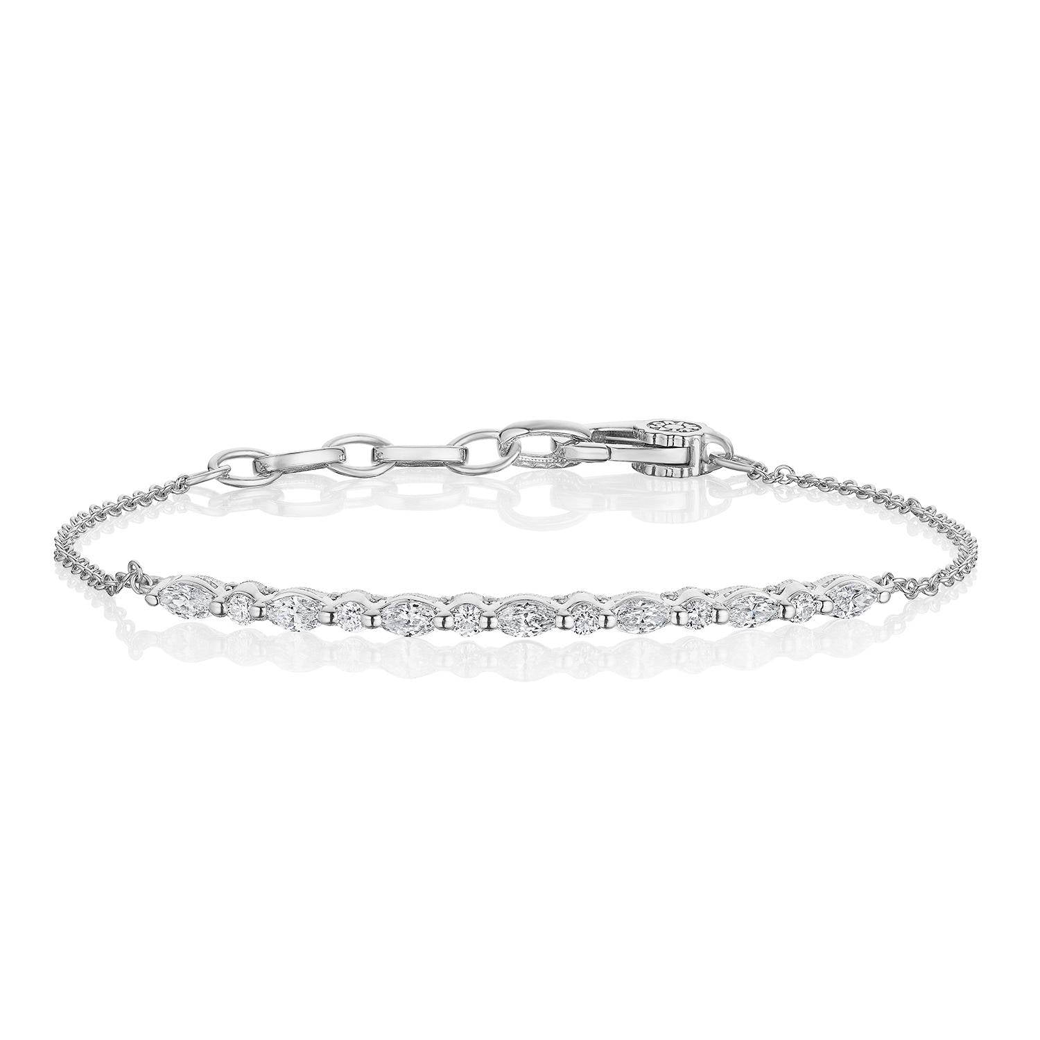 A glimmering, unbroken string of pear cut diamonds are set into delicate 18k White Gold. Milgrain-accented TACORI Crescents embellish the silhouette of each stone.