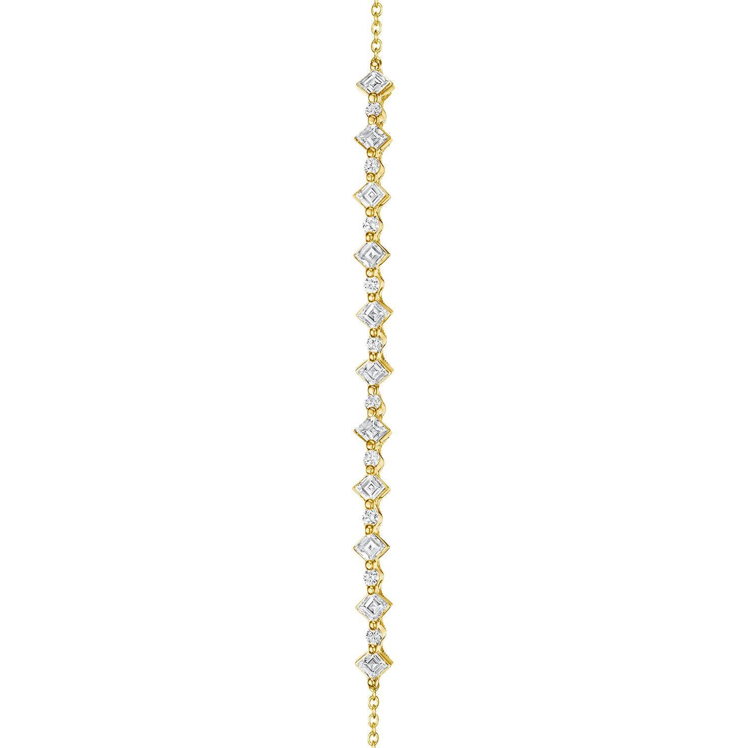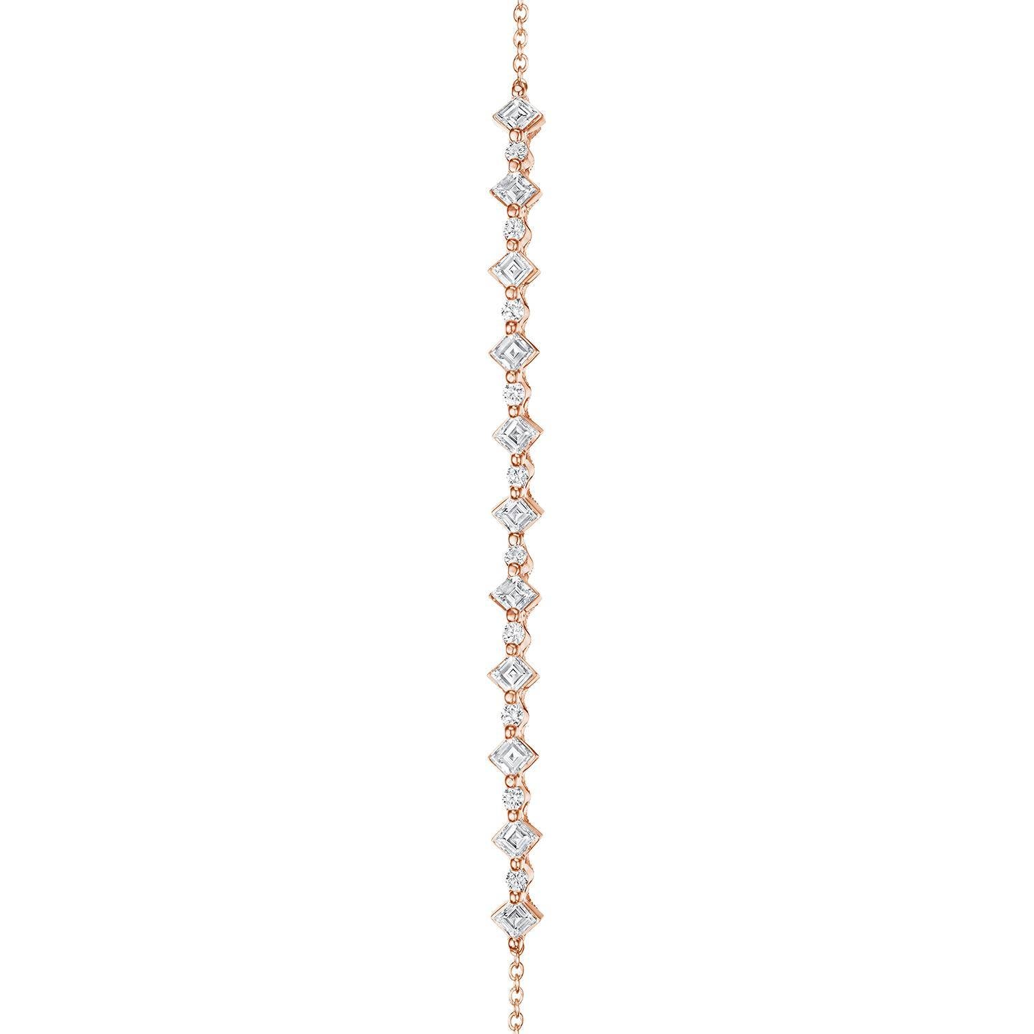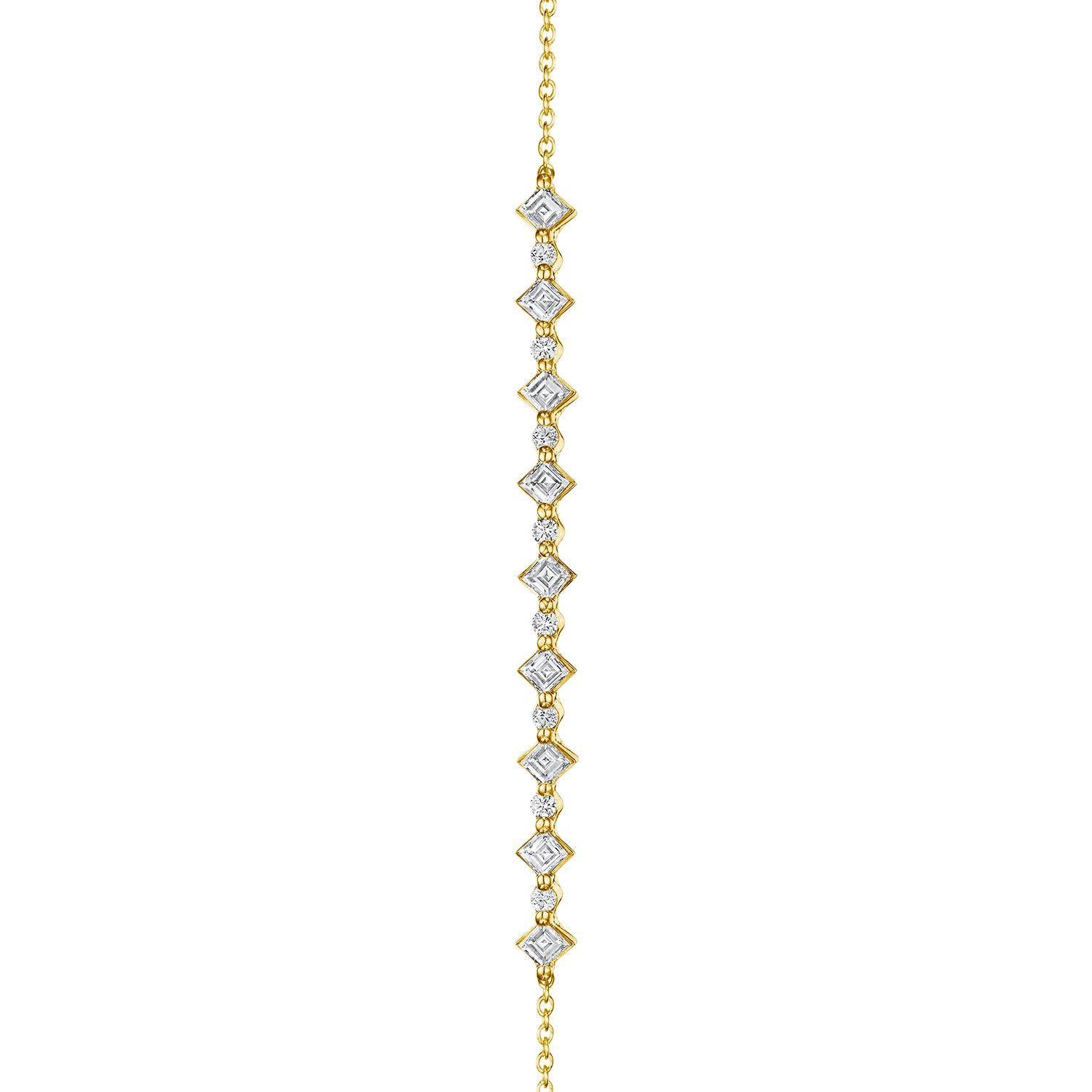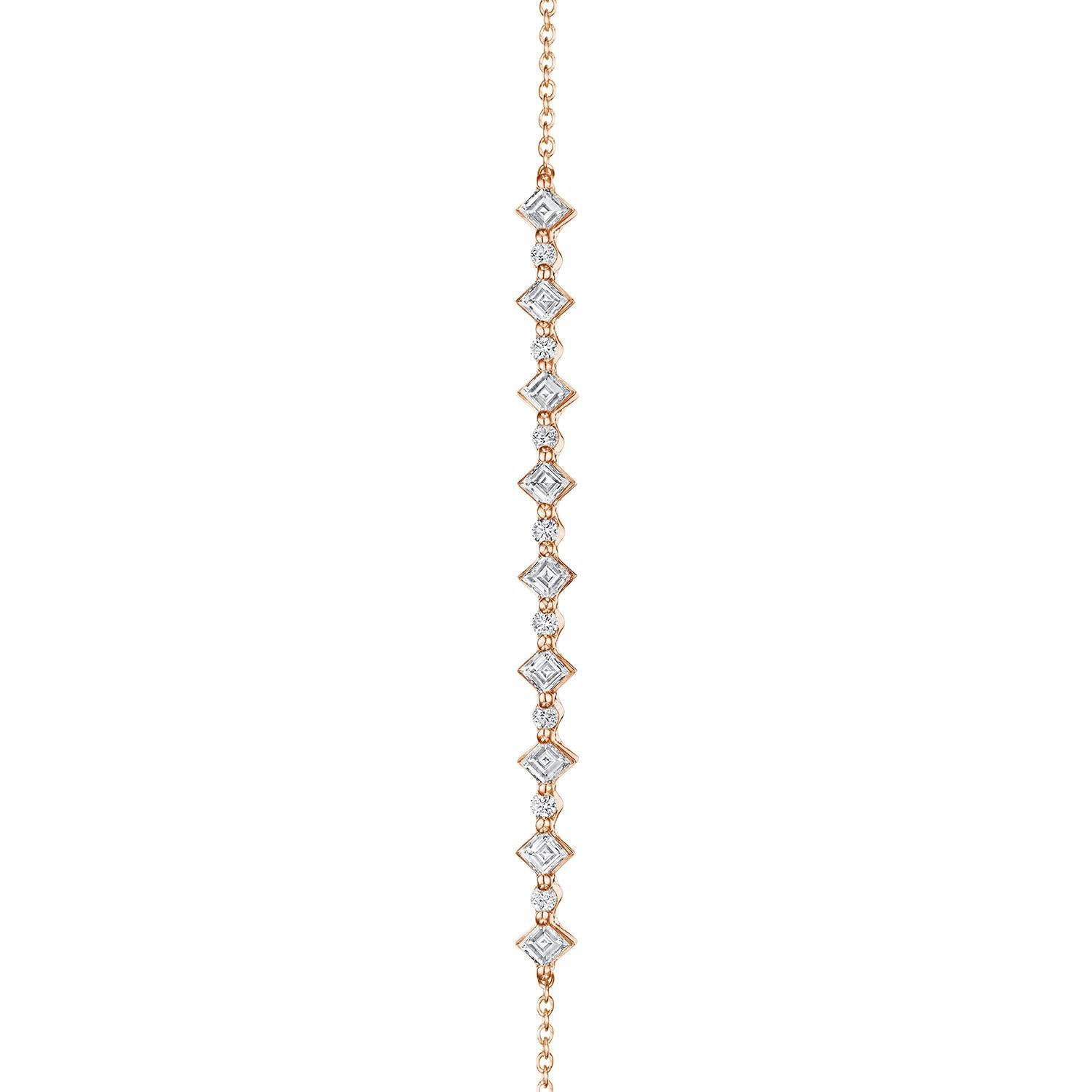 A delicate string of carré and round brilliant cut diamonds hangs from a chain of 18k White Gold. The silhouette of each stone is embellished with milgrain-accented TACORI Crescents.