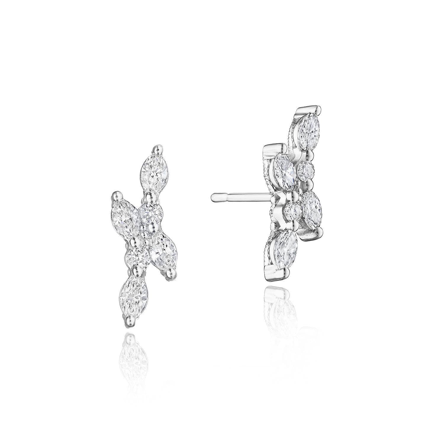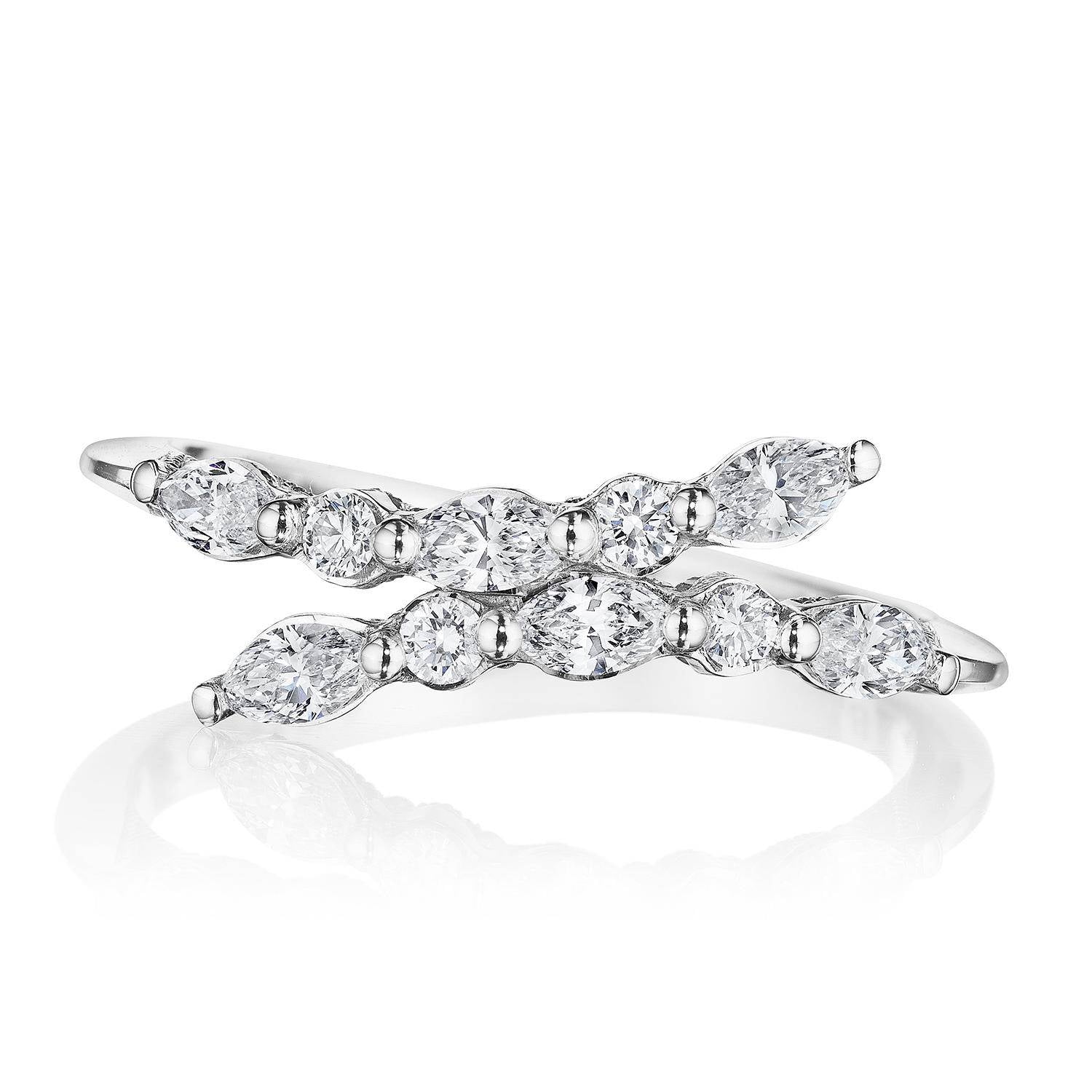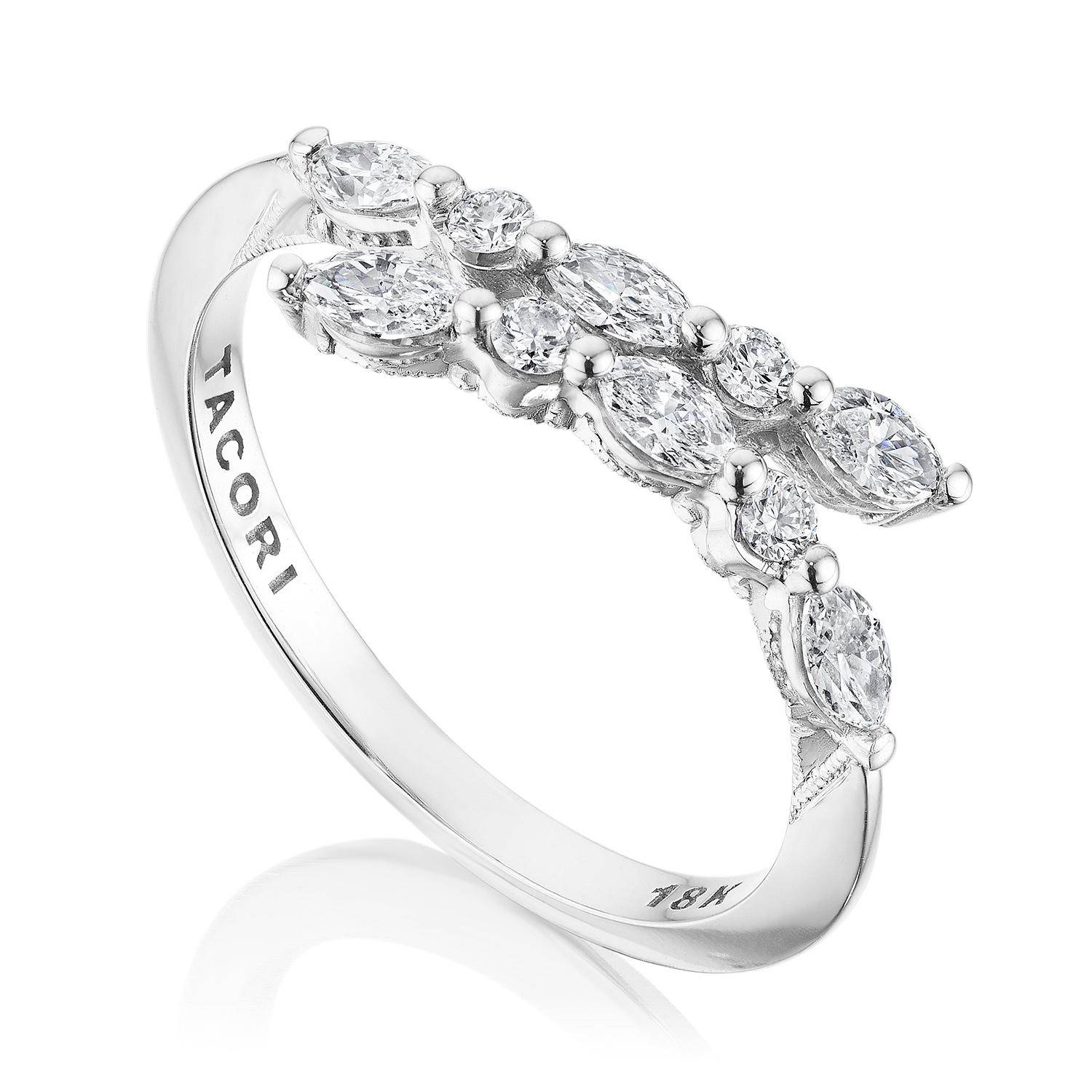Passing strings of marquise and round brilliant cut diamonds are set into a foundation of 18k White Gold. The silhouette of each stone is embellished with milgrain-accented TACORI Crescents.