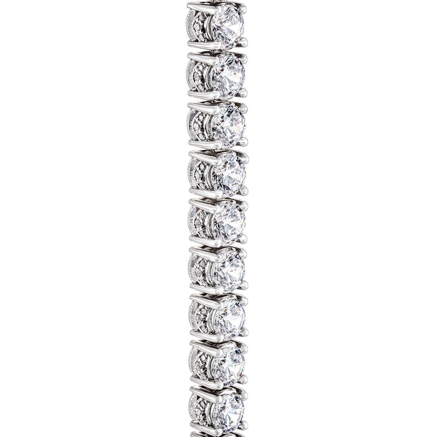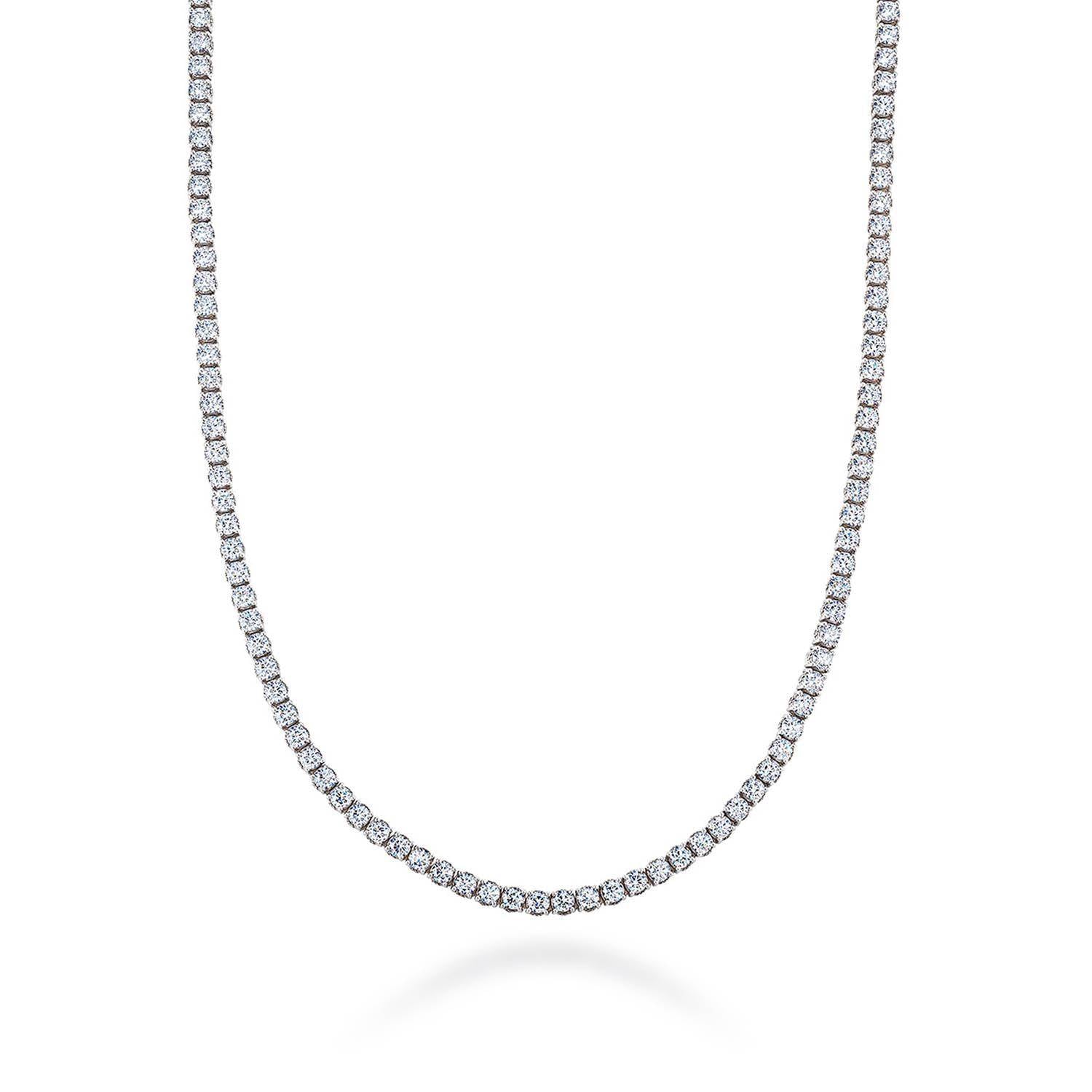 Shimmering across the neckline, the Riviera necklace illustrates the power of meticulous craftsmanship to mesmerize with a simple design. The seamless string of round-brilliant diamonds are hand-selected for their impeccable cut and clarity, and hand-set with the a precision to forever hold a sublime form.
