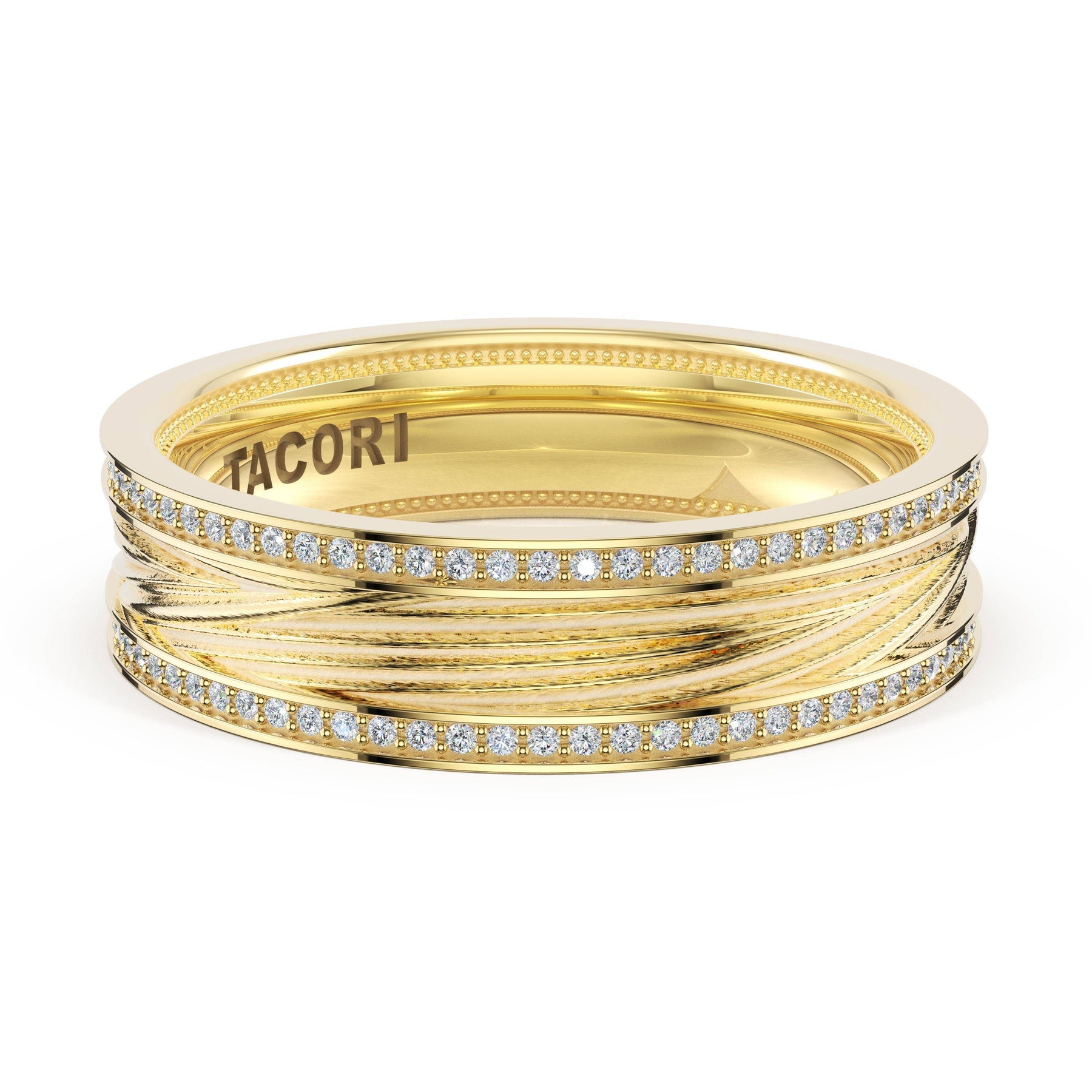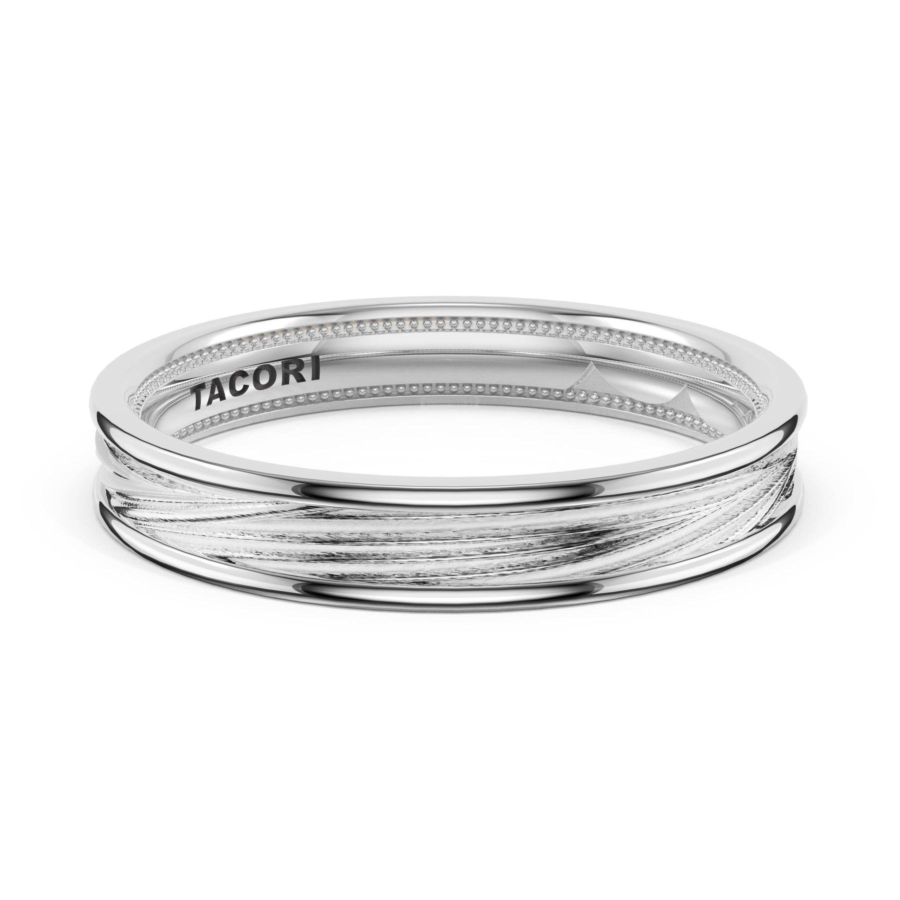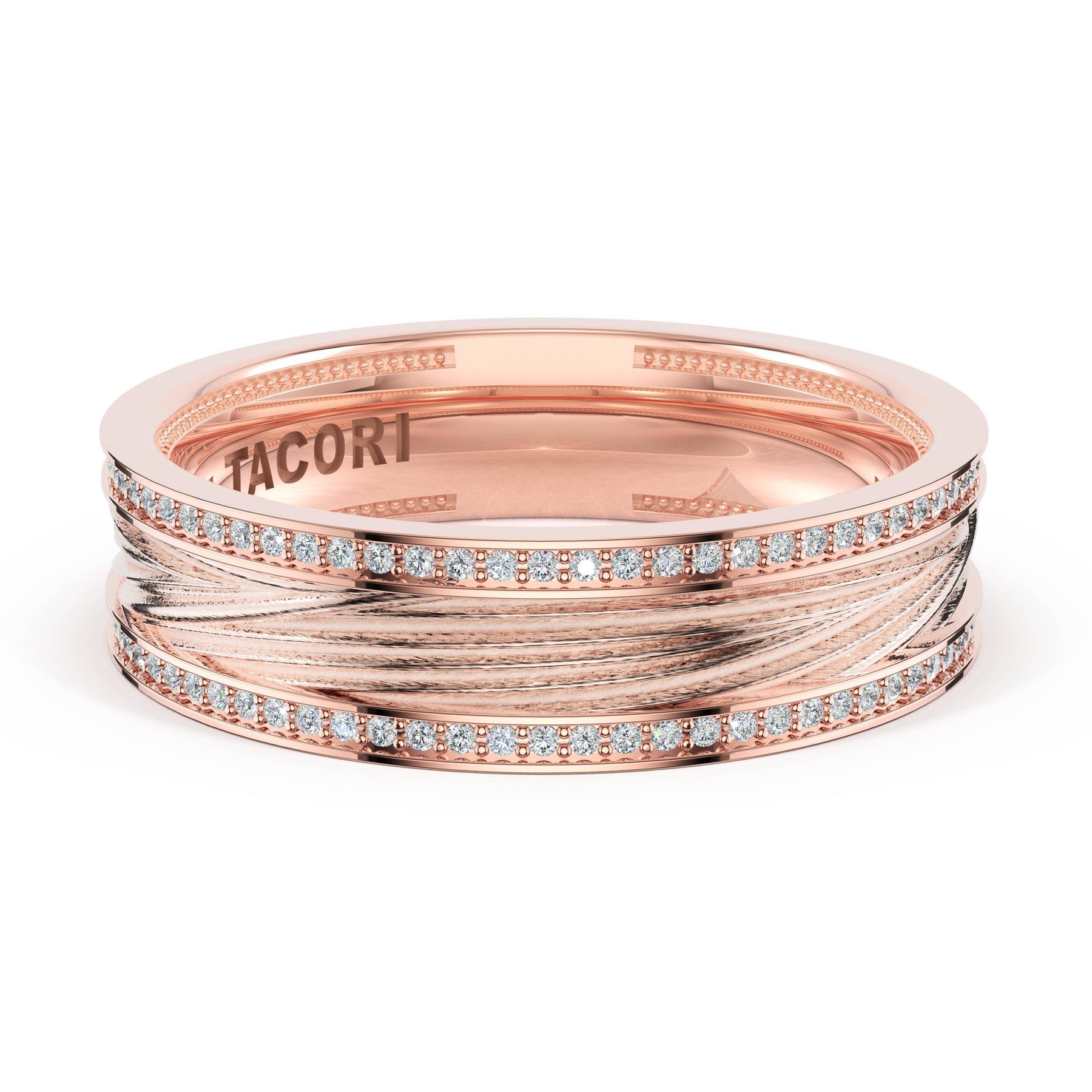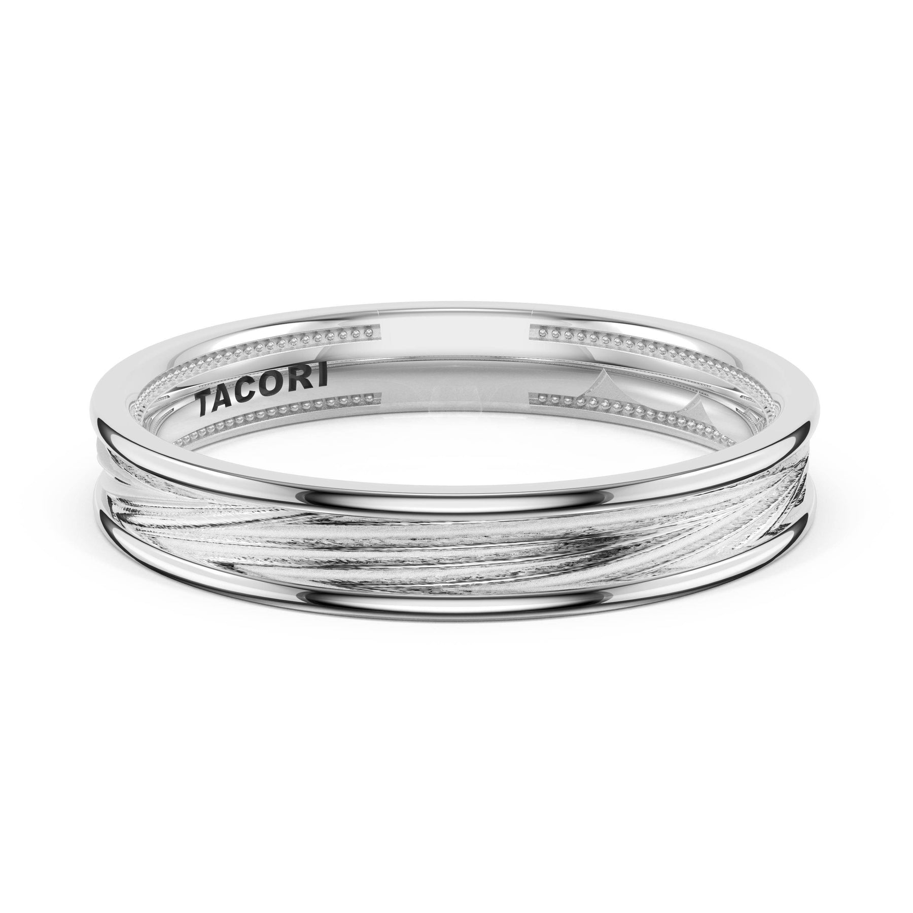 Organic texture flows across the high-polish foundation in fluid lines that catch and reflect light. A wide design showcasing TACORI's mastery of sculptural metalwork.