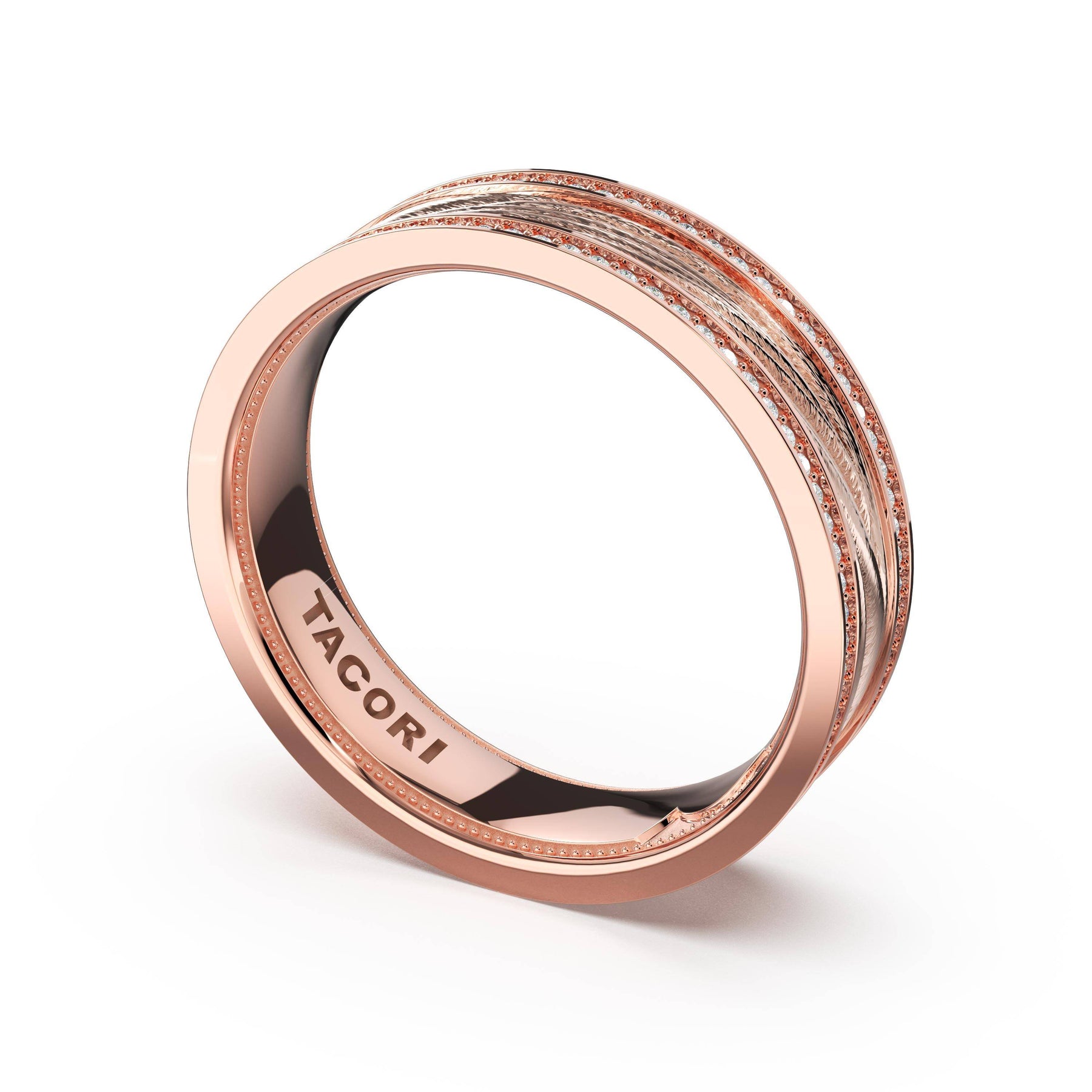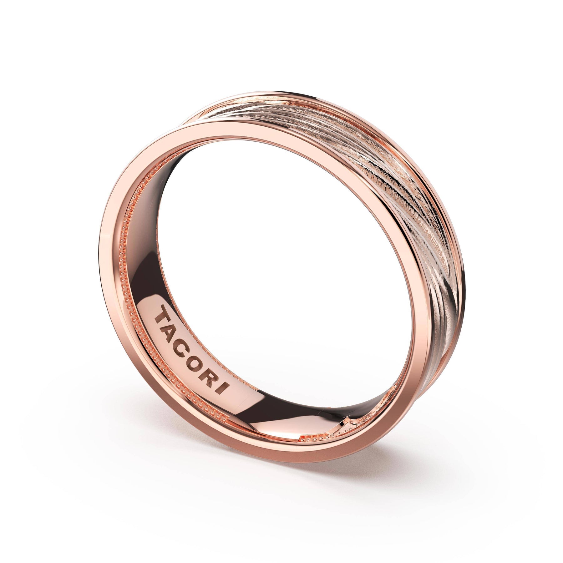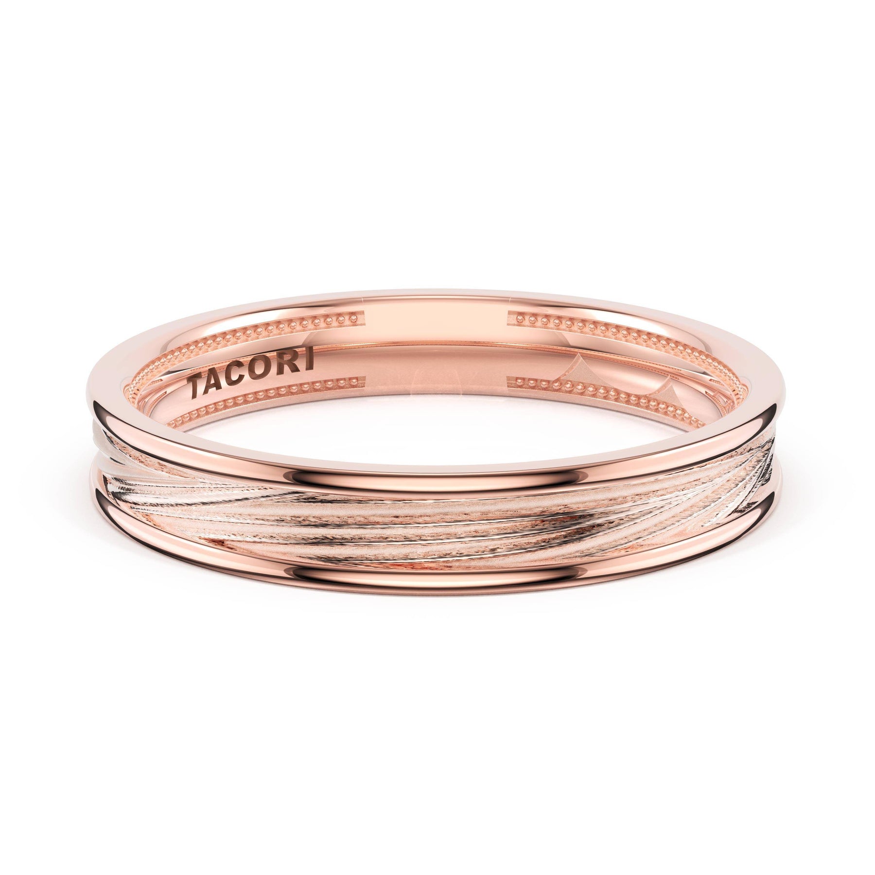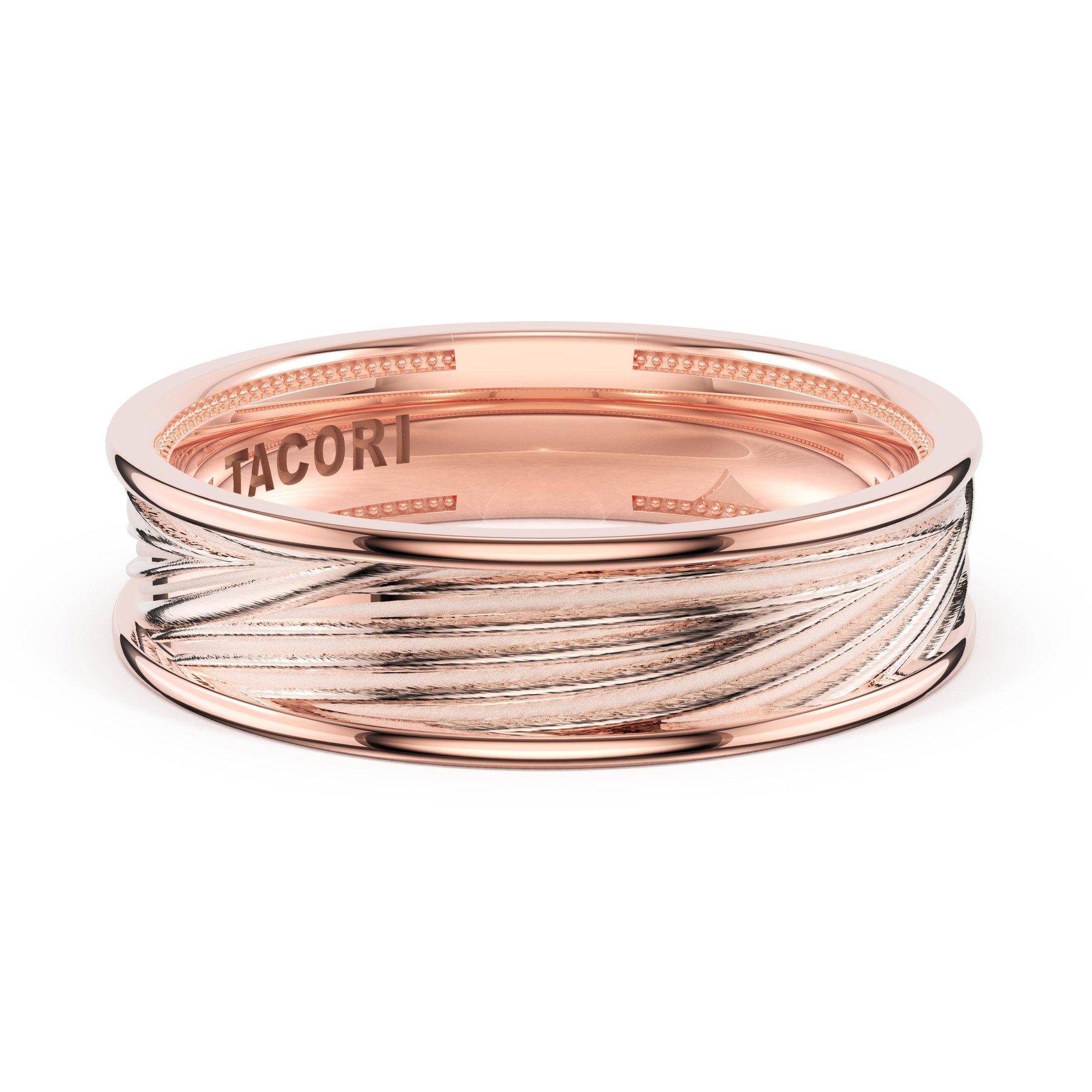 Organic texture flows across the high-polish foundation in fluid lines that catch and reflect light. A wide design showcasing TACORI's mastery of sculptural metalwork.