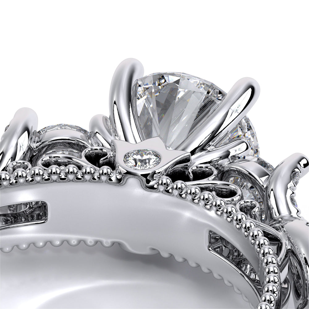 VENETIAN-5052 engagement ring from the Venetian Collection features a floral tiara on a delicate straight shank with graduating round brilliant diamonds. Choose a lace shank for a more vintage look or opt for a classic shank to keep it simple. This beauty continues to stay as one of our most loved Verragio styles.