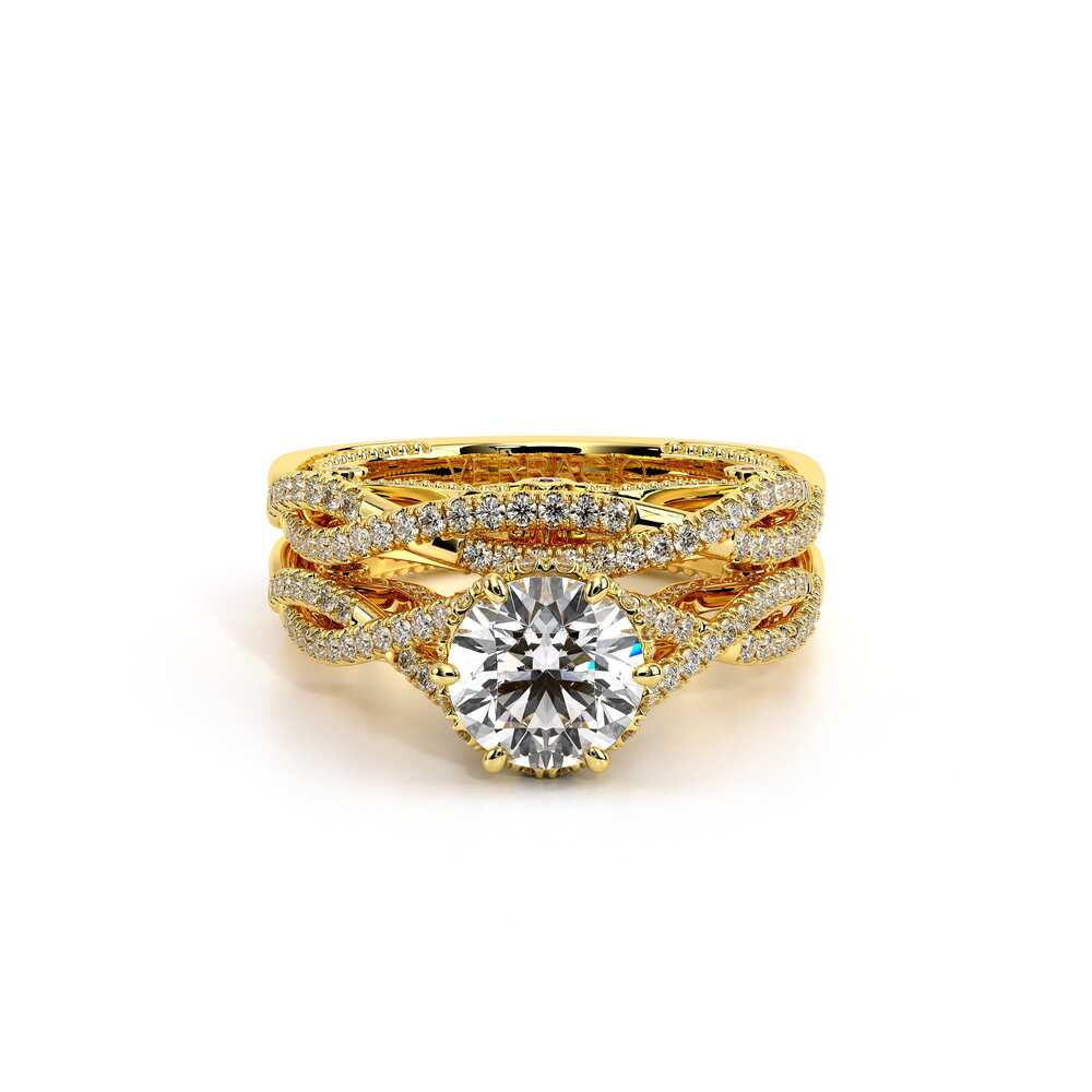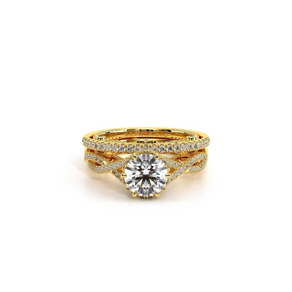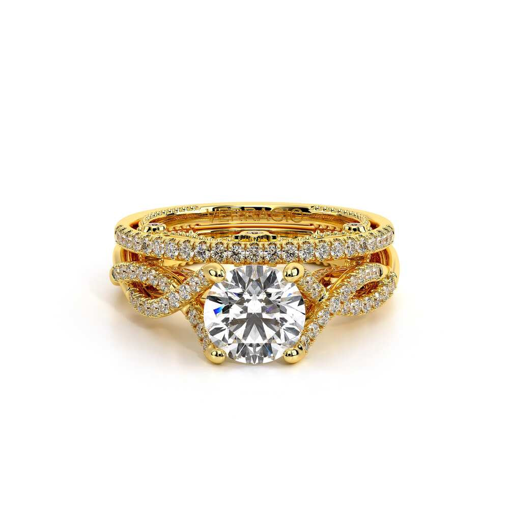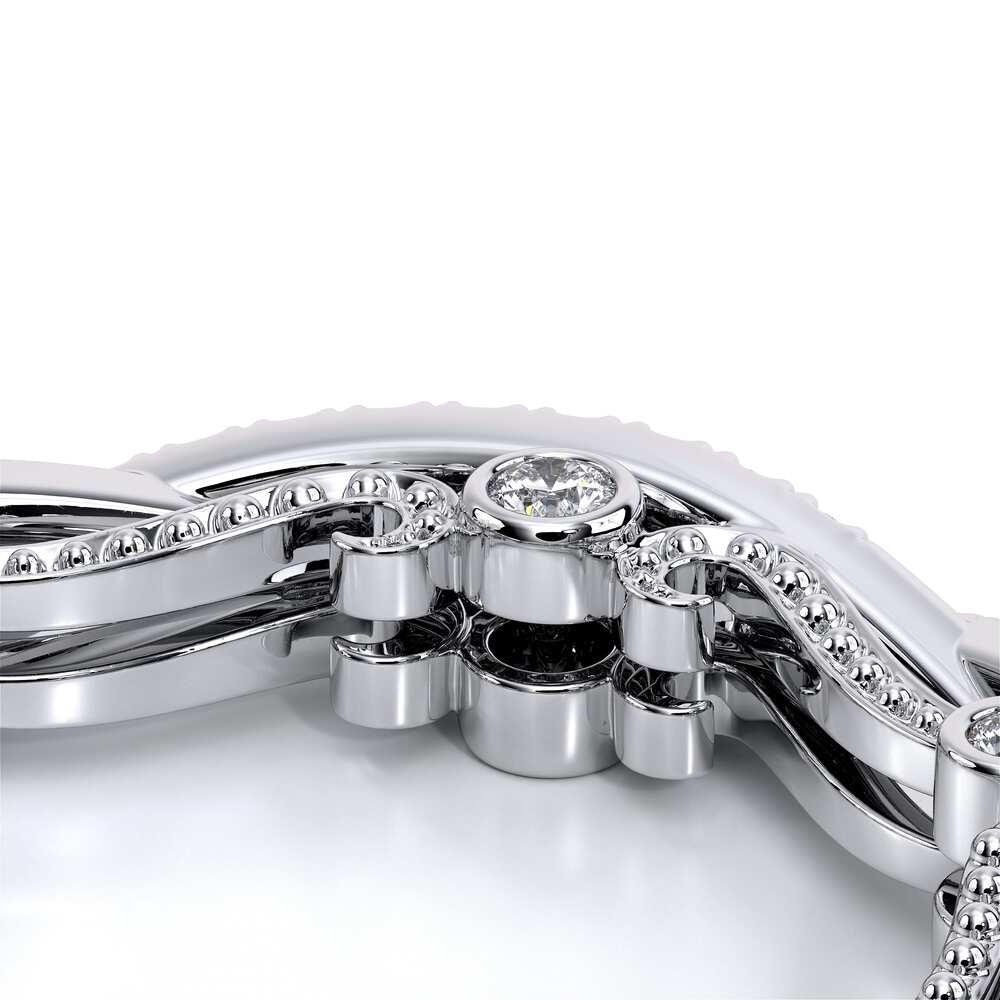 INSIGNIA-7087R Featuring, Verragio's uniquely designed handcrafted floret halo that is adorned with meticulously set round pave brilliant-cut diamonds on a twisted band. Encompassed by Insignia's handcrafted diamond scrollwork and Verragio's signature beading to enhance a Round diamond center.