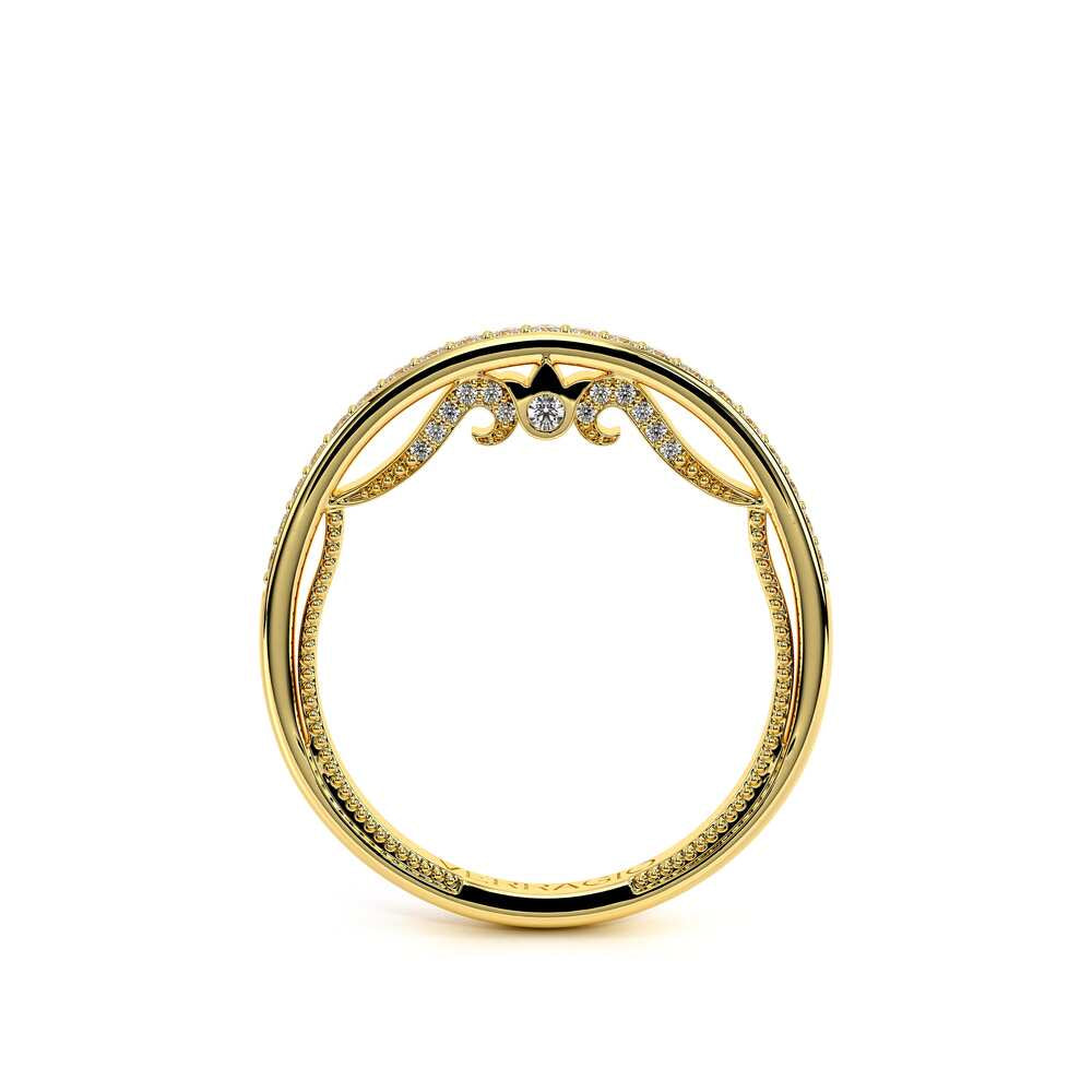INSIGNIA-7070WSB wedding ring from the Insignia Collection, featuring round brilliant-cut diamonds pave set on a straight band. Unique with bezel set diamonds with distinguishing Insignia Scrollwork accompanied by Verragio's signature crest and beading.