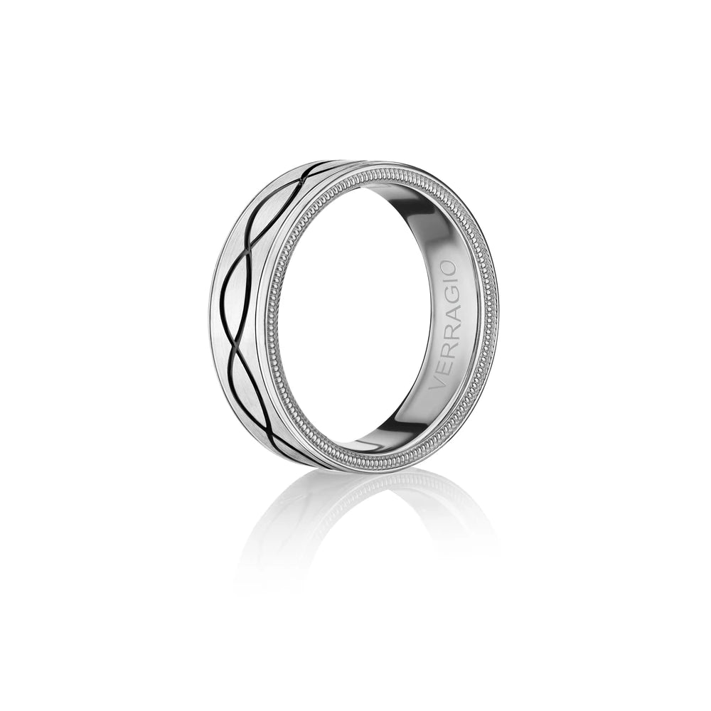 VW-7013 is a classy matte finished 7MM men's band, adorned with Verragio's timeless signature beading in rose. Featured with an exquisite infinity design on the band to symbolize your eternal love.
