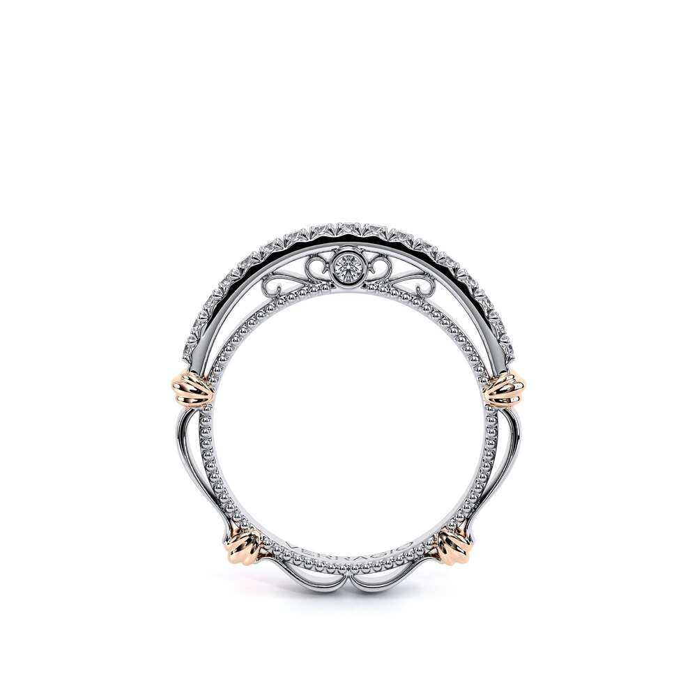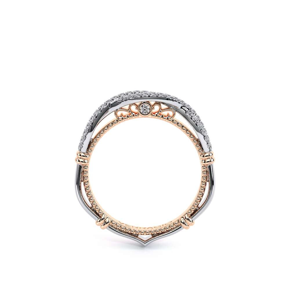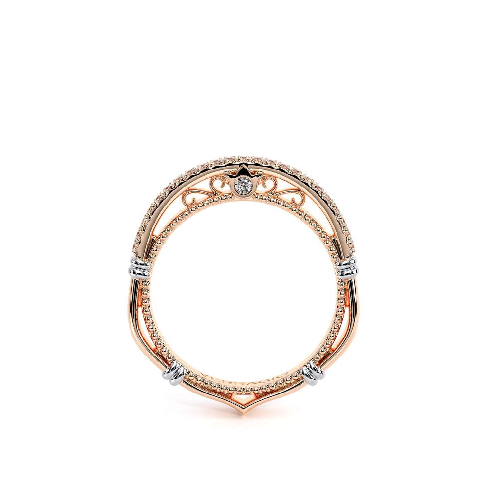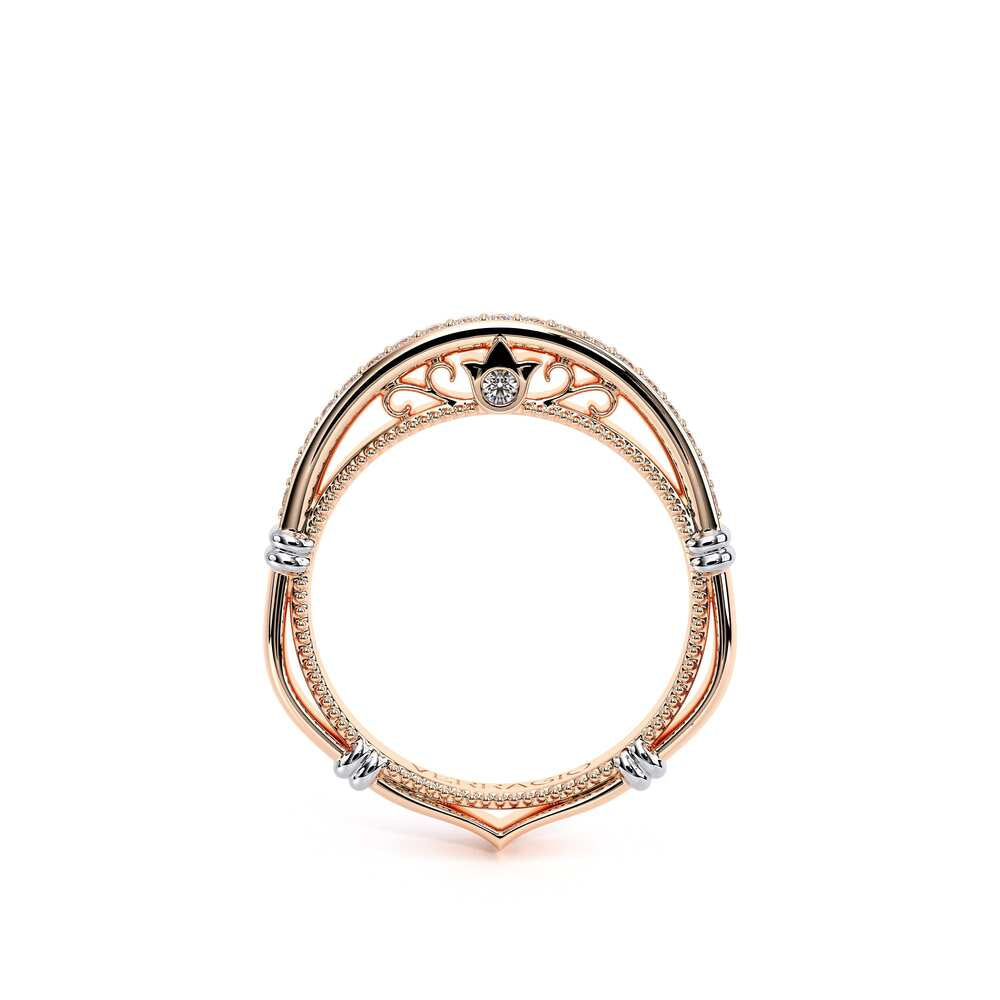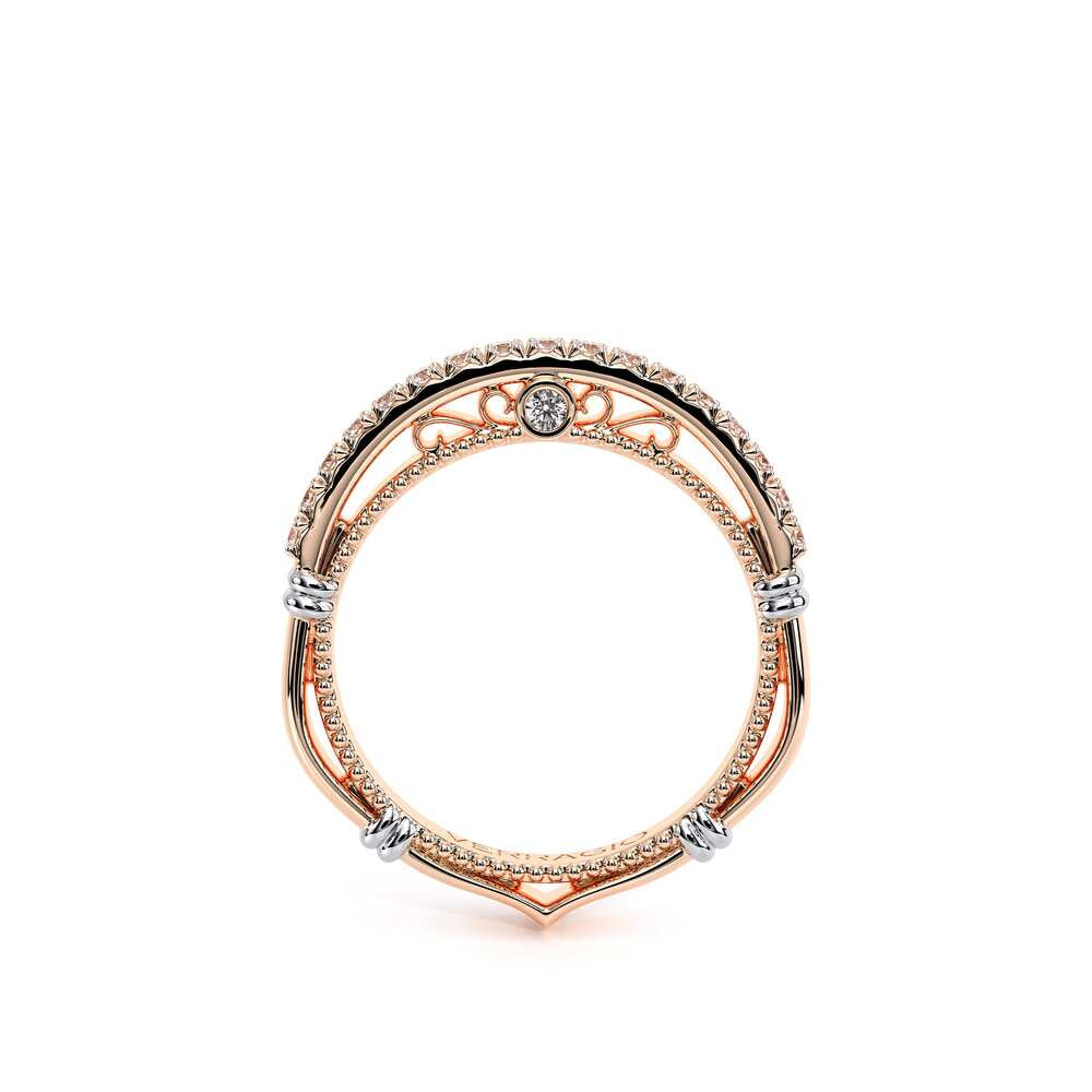 PARISIAN-151W wedding band carries the beautiful scalloped bezel set diamonds on the band, adorned with rose gold Parisian lace and Timeless wraps details to compliment your Verragio engagement ring perfectly. **Note: +$400 for Lace, Beading or Both in a different color