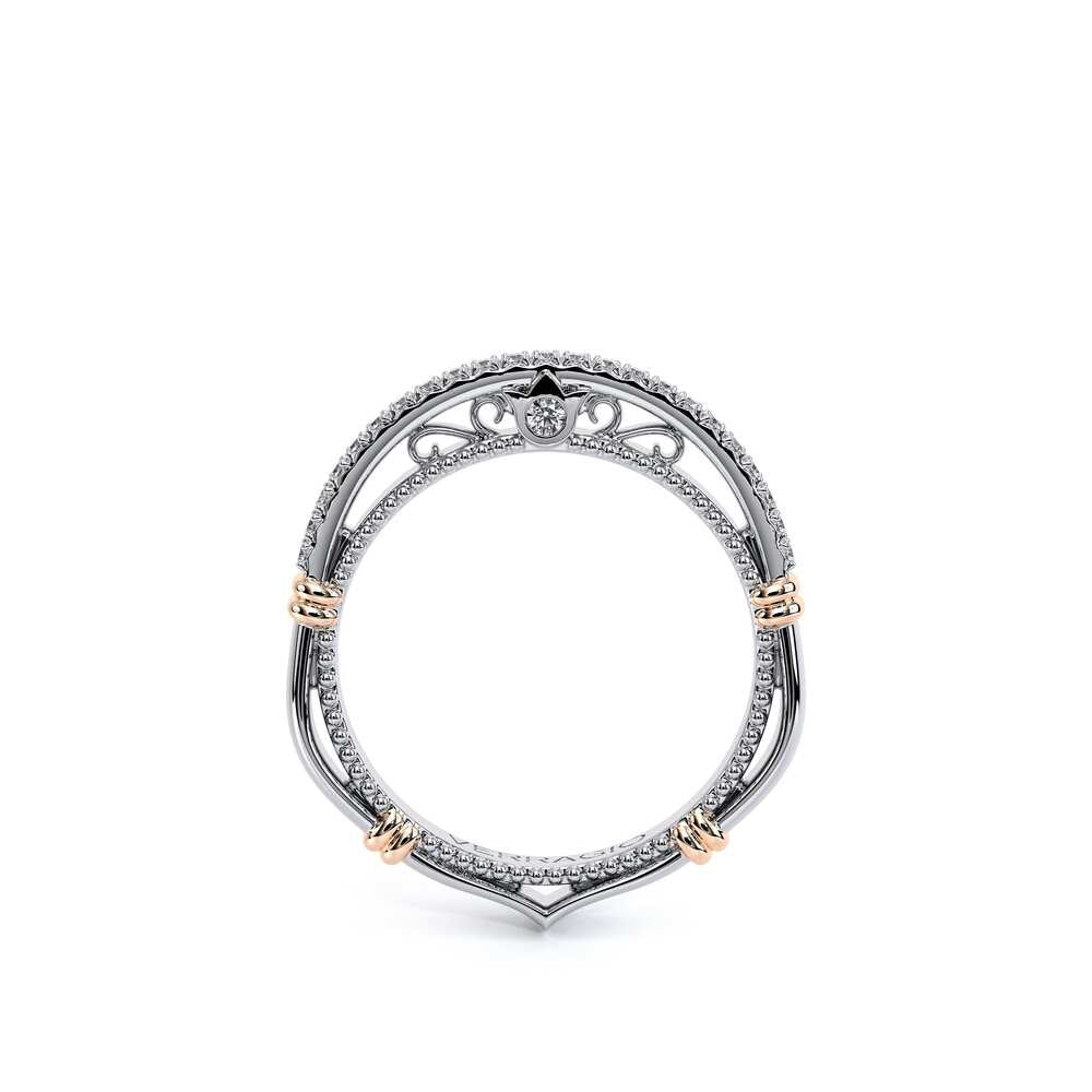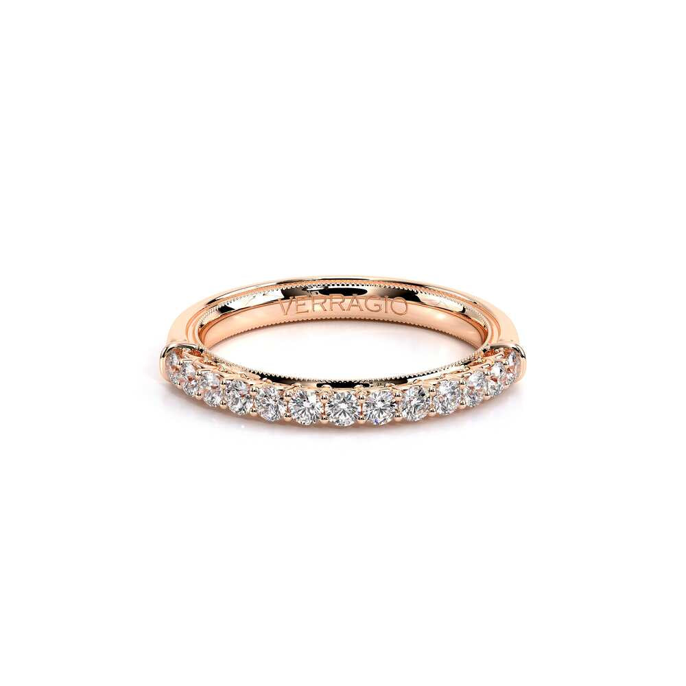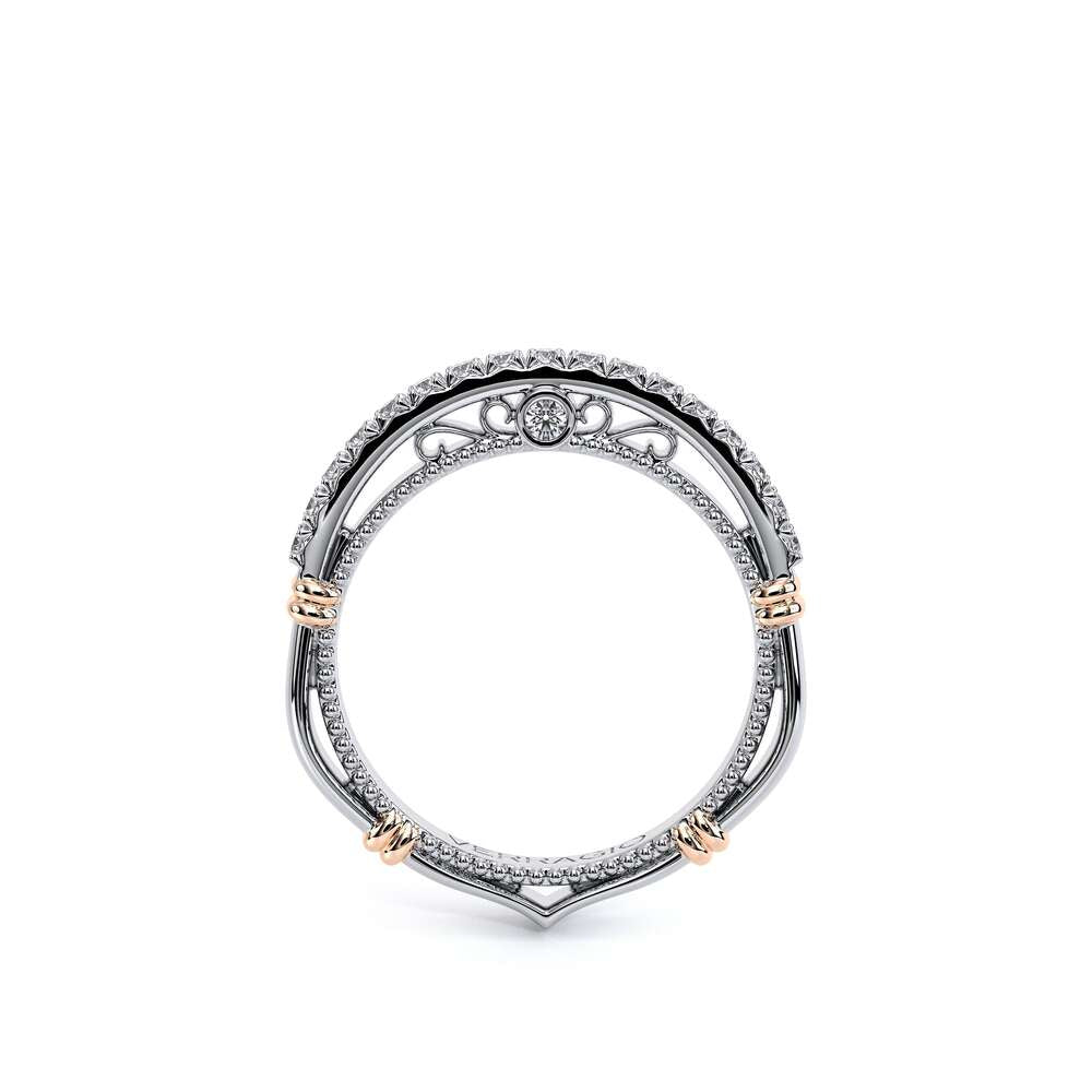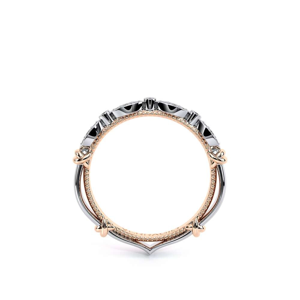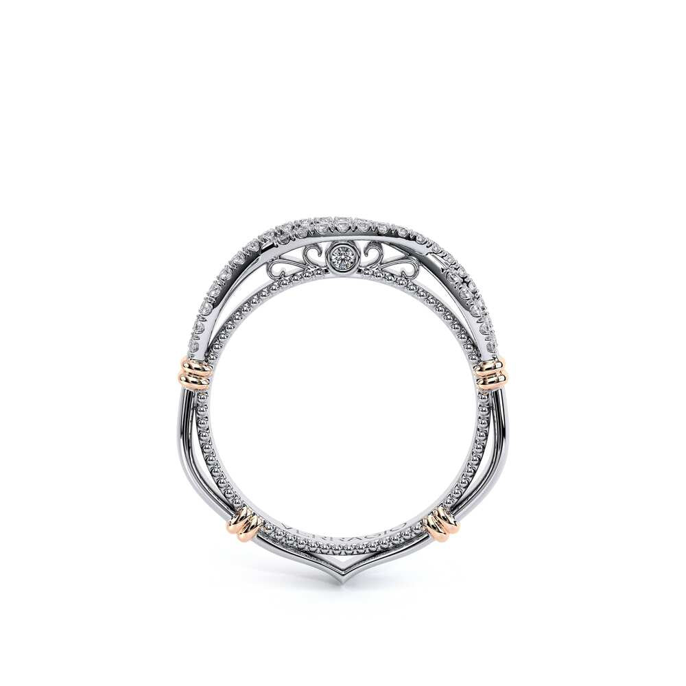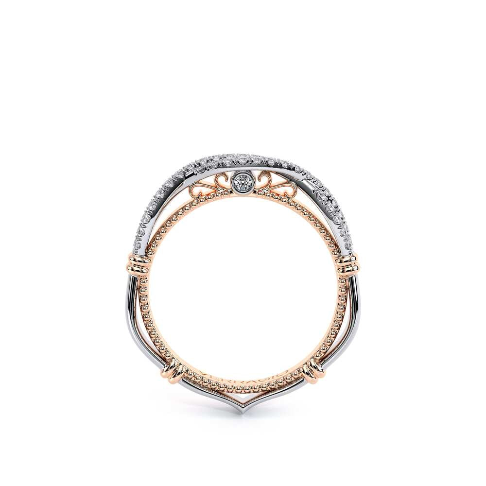 PARISIAN-151W wedding band carries the beautiful scalloped bezel set diamonds on the band, adorned with rose gold Parisian lace and Timeless wraps details to compliment your Verragio engagement ring perfectly. **Note: +$400 for Lace, Beading or Both in a different color