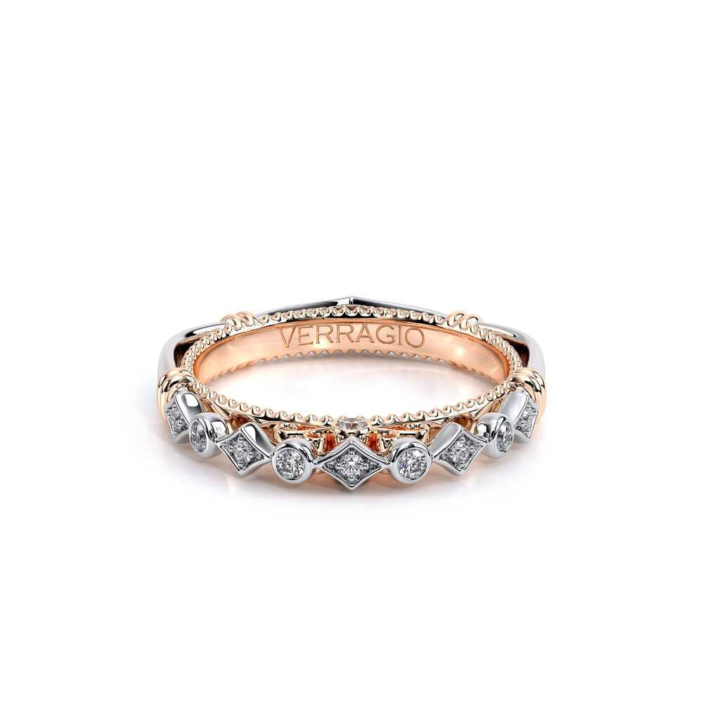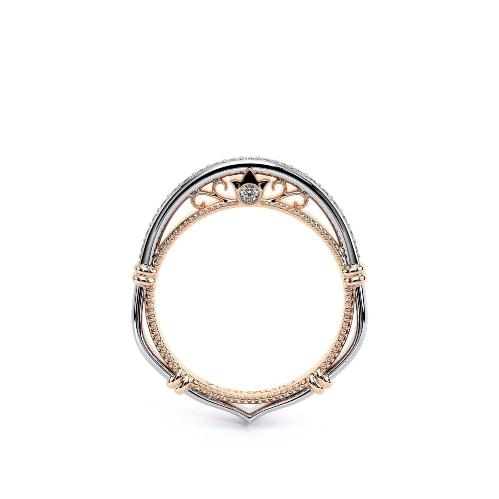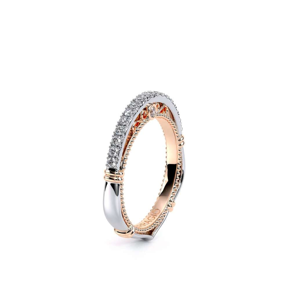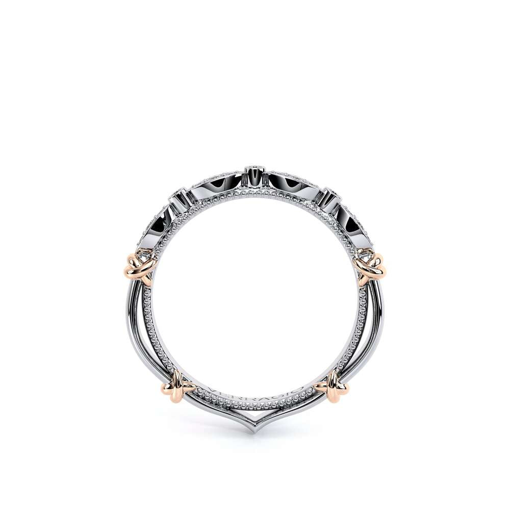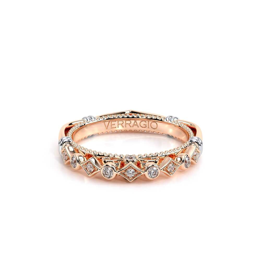 PARISIAN-151W wedding band carries the beautiful scalloped bezel set diamonds on the band, adorned with rose gold Parisian lace and Timeless wraps details to compliment your Verragio engagement ring perfectly. **Note: +$400 for Lace, Beading or Both in a different color