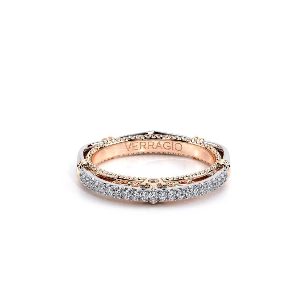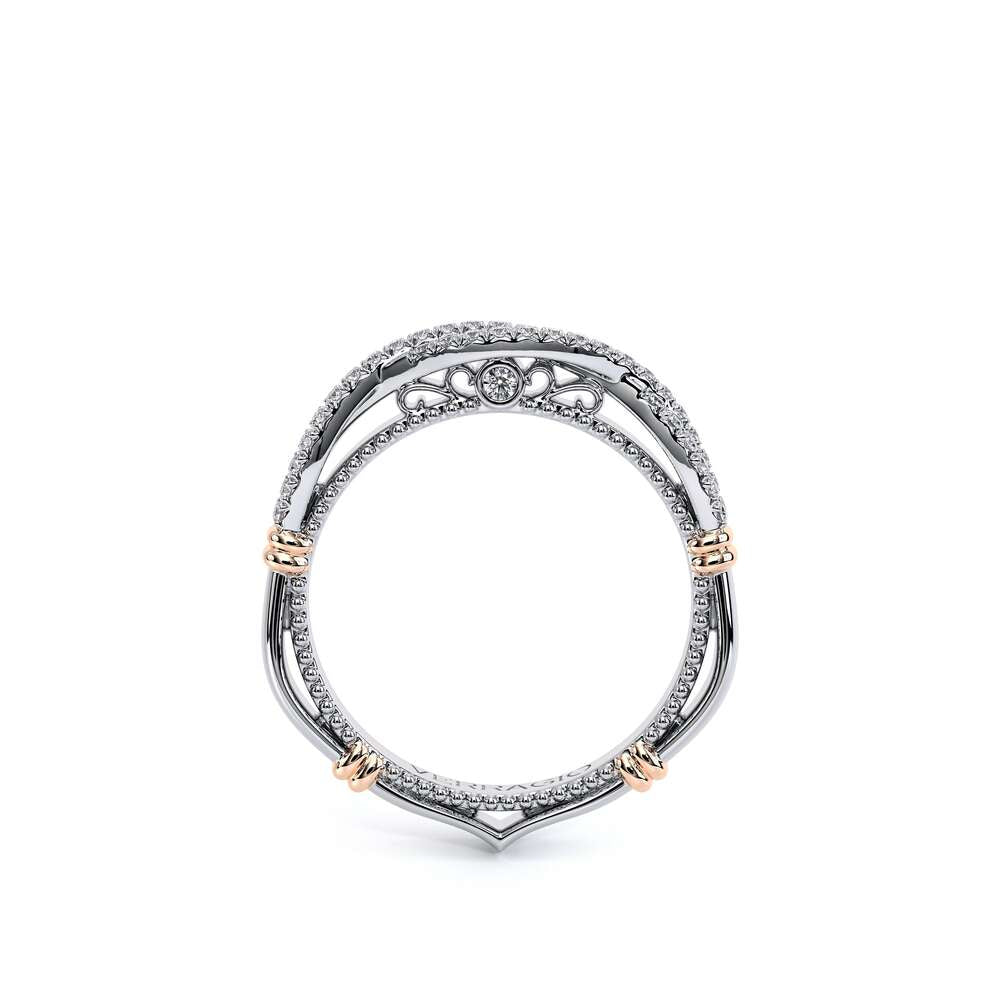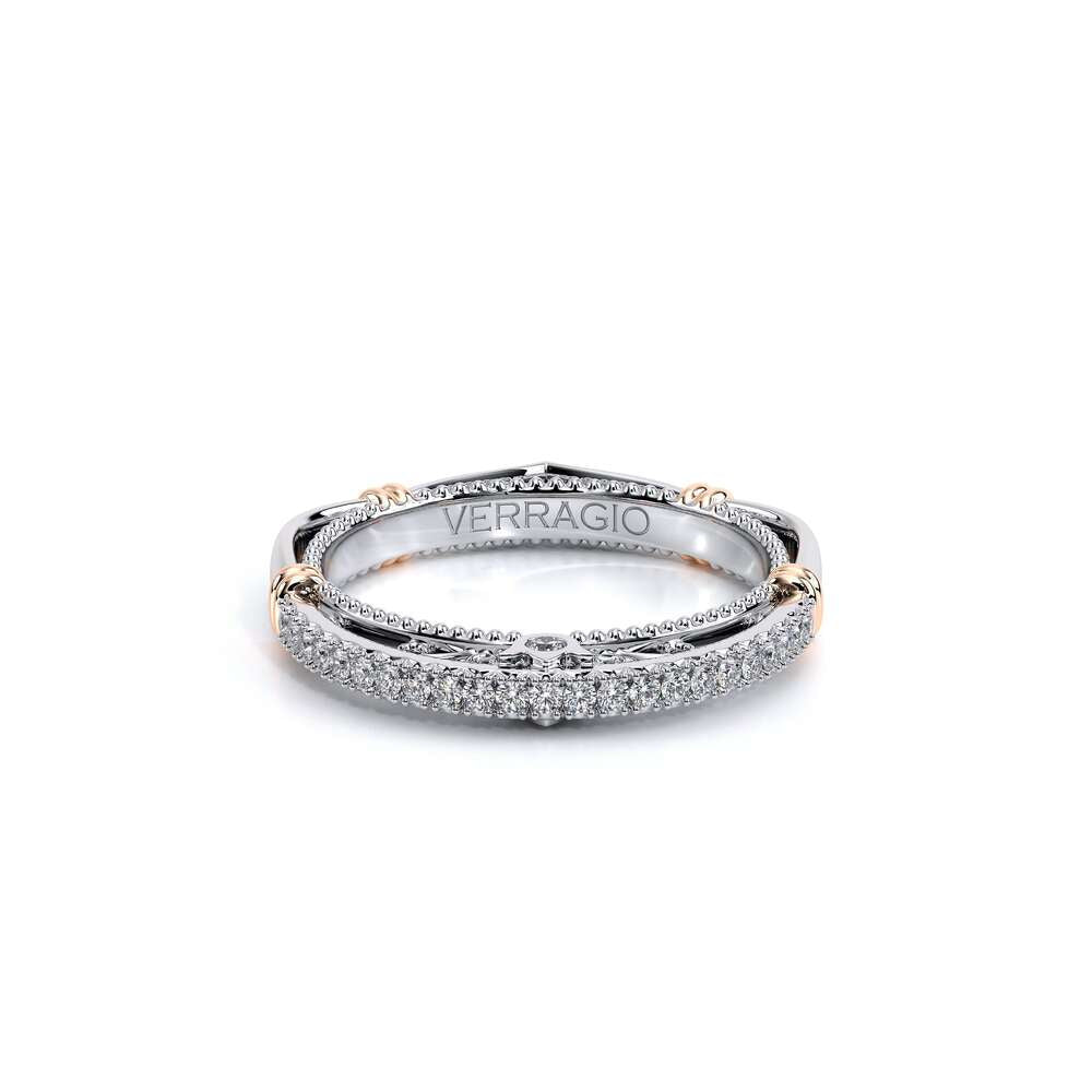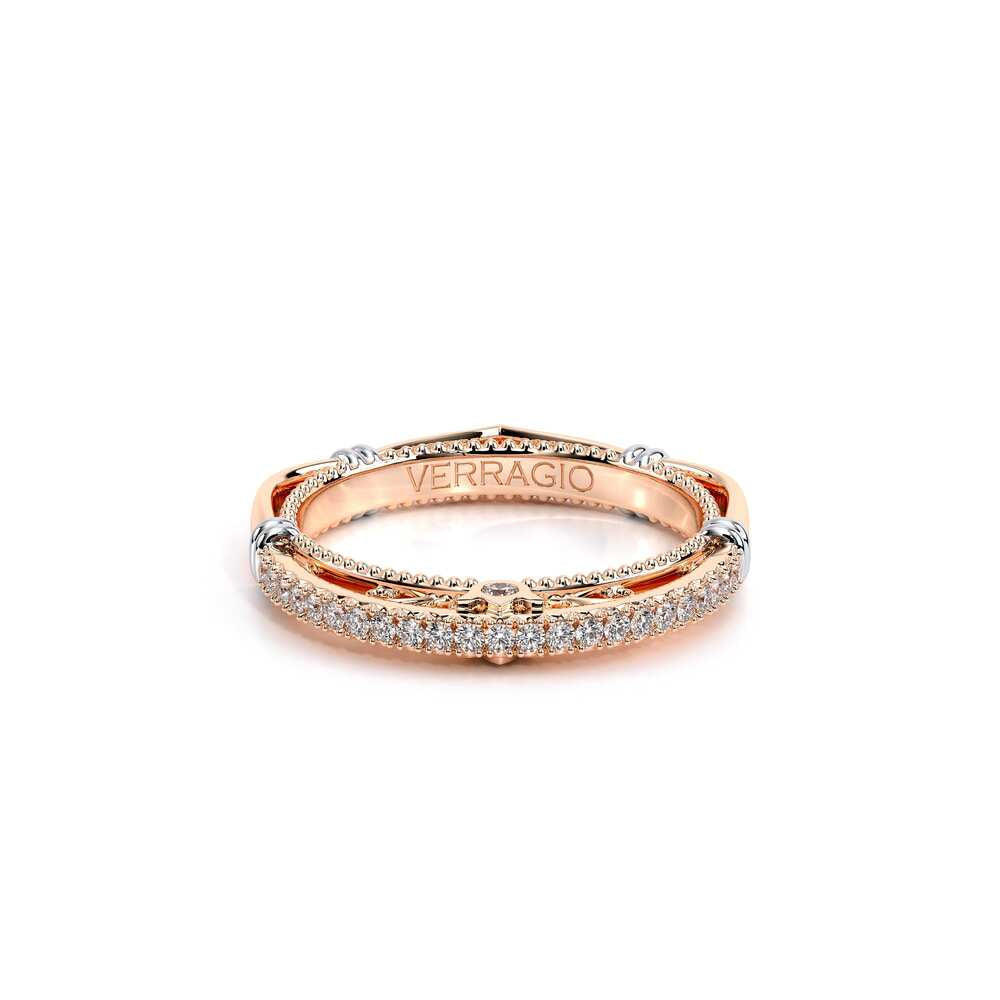 PARISIAN-124W is our classic straight wedding band that is decorated with gold Parisian Lace, Verragio signature beading and our rose gold Timeless wraps that is made to create the perfect matching wedding set. **Note: +$400 for Lace, Beading or Both in a different color