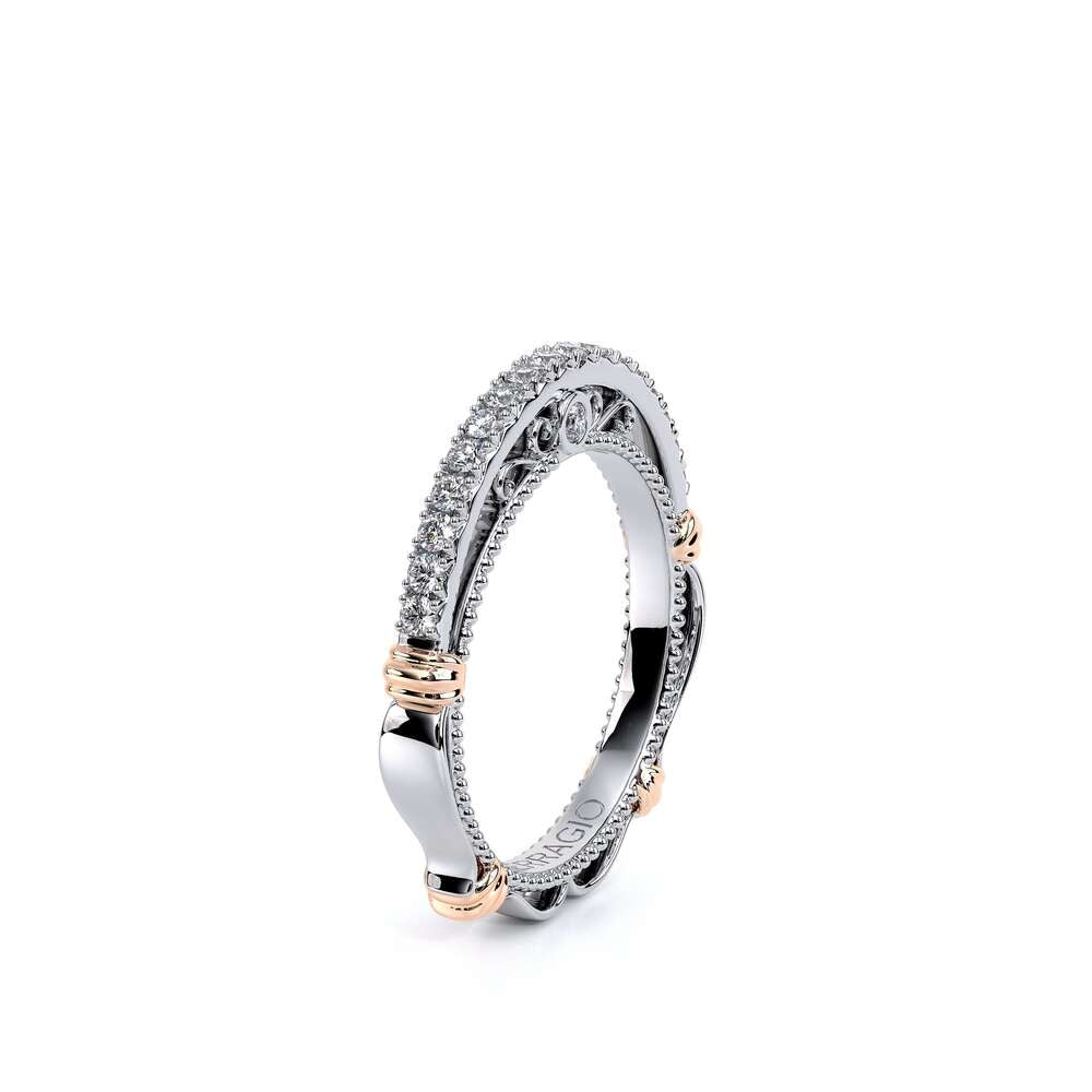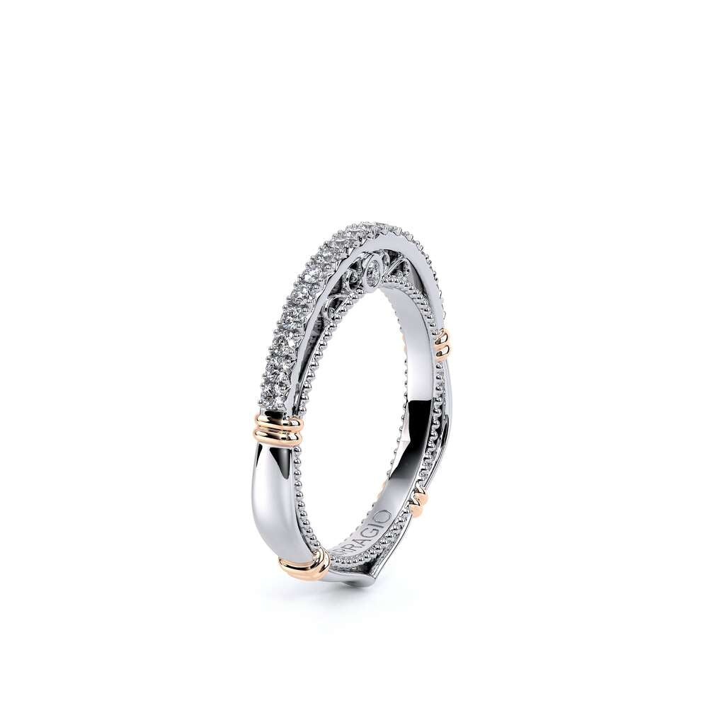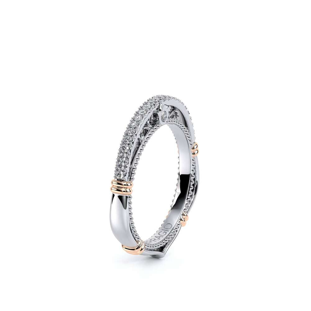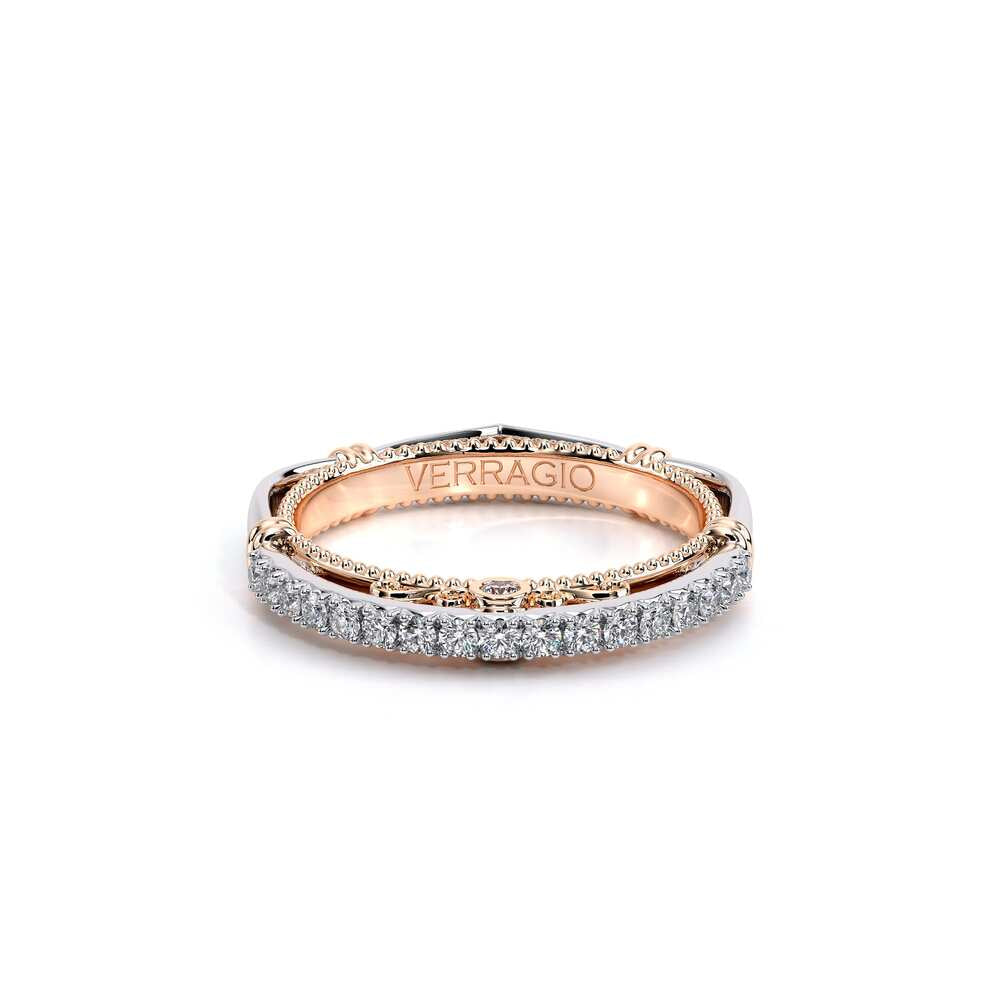 PARISIAN-124W is our classic straight wedding band that is decorated with gold Parisian Lace, Verragio signature beading and our rose gold Timeless wraps that is made to create the perfect matching wedding set. **Note: +$400 for Lace, Beading or Both in a different color