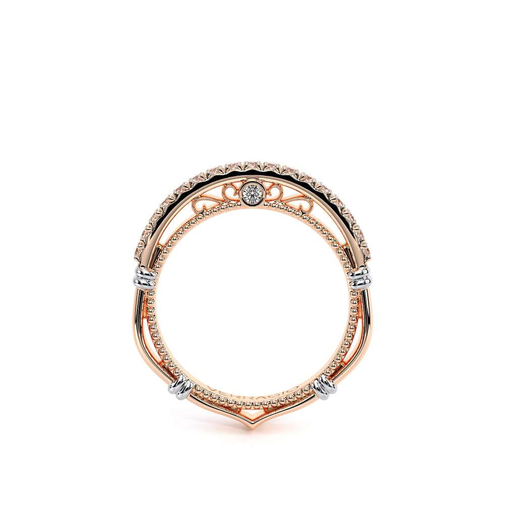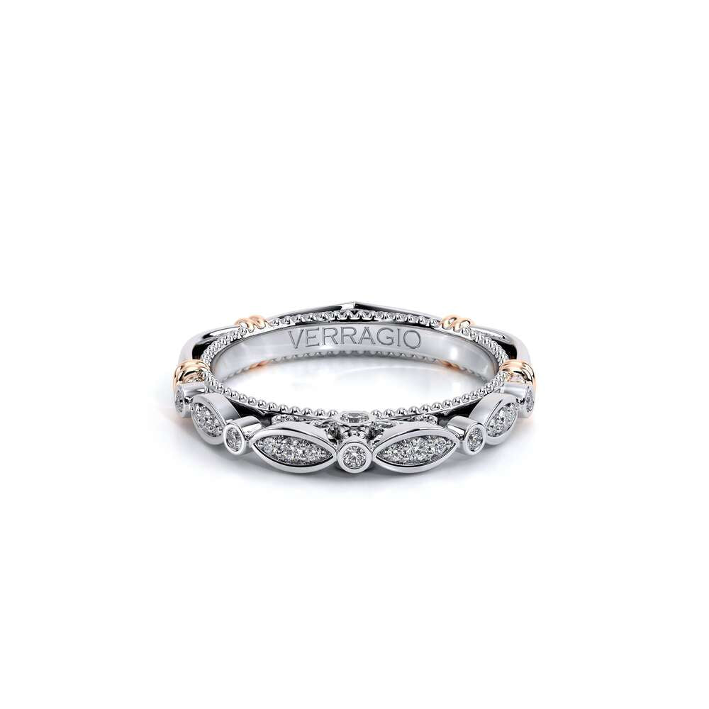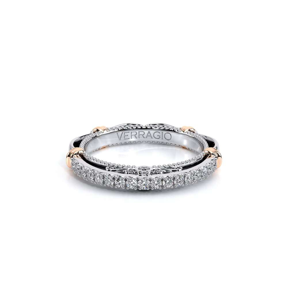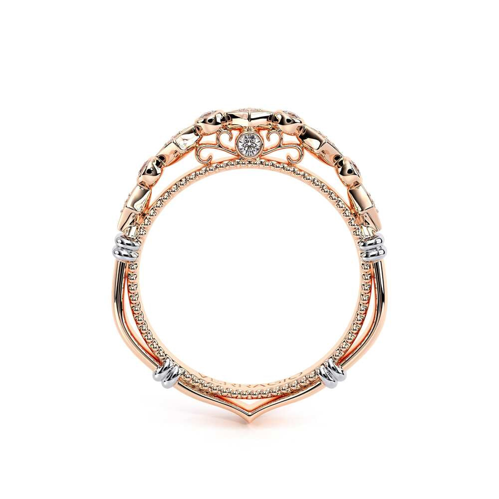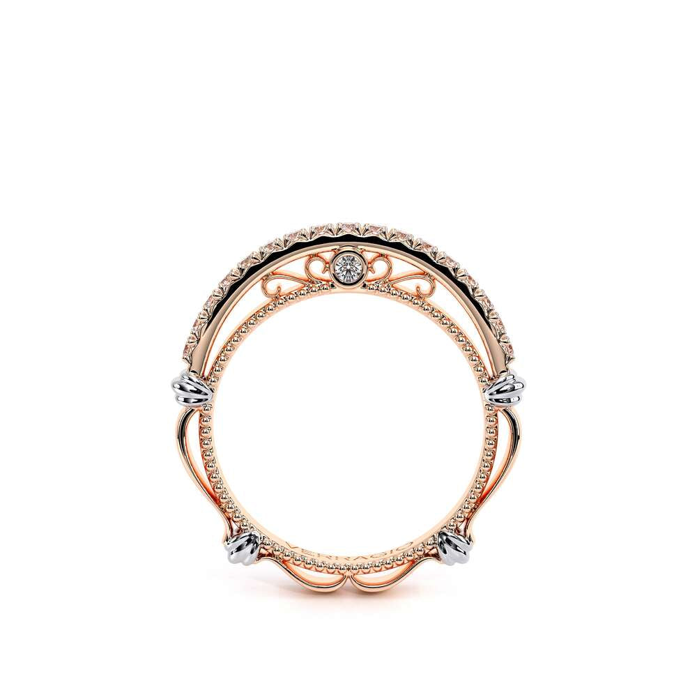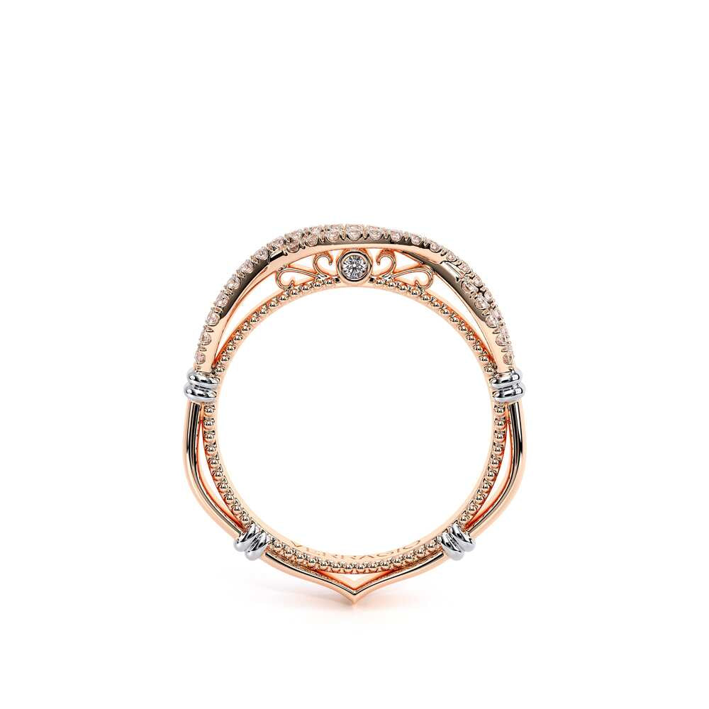 PARISIAN-141W highlights the beautiful scalloped bezel set diamonds on the straight band, featuring our rose gold Eternal wraps and Verragio signature beading details to compliment your Verragio engagement ring perfectly. **Note: +$400 for Beading in a different color