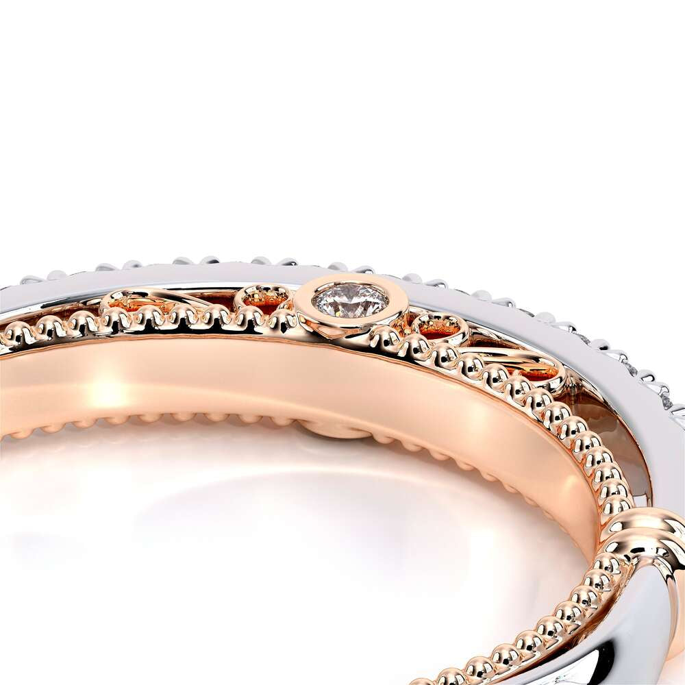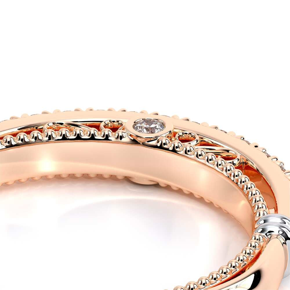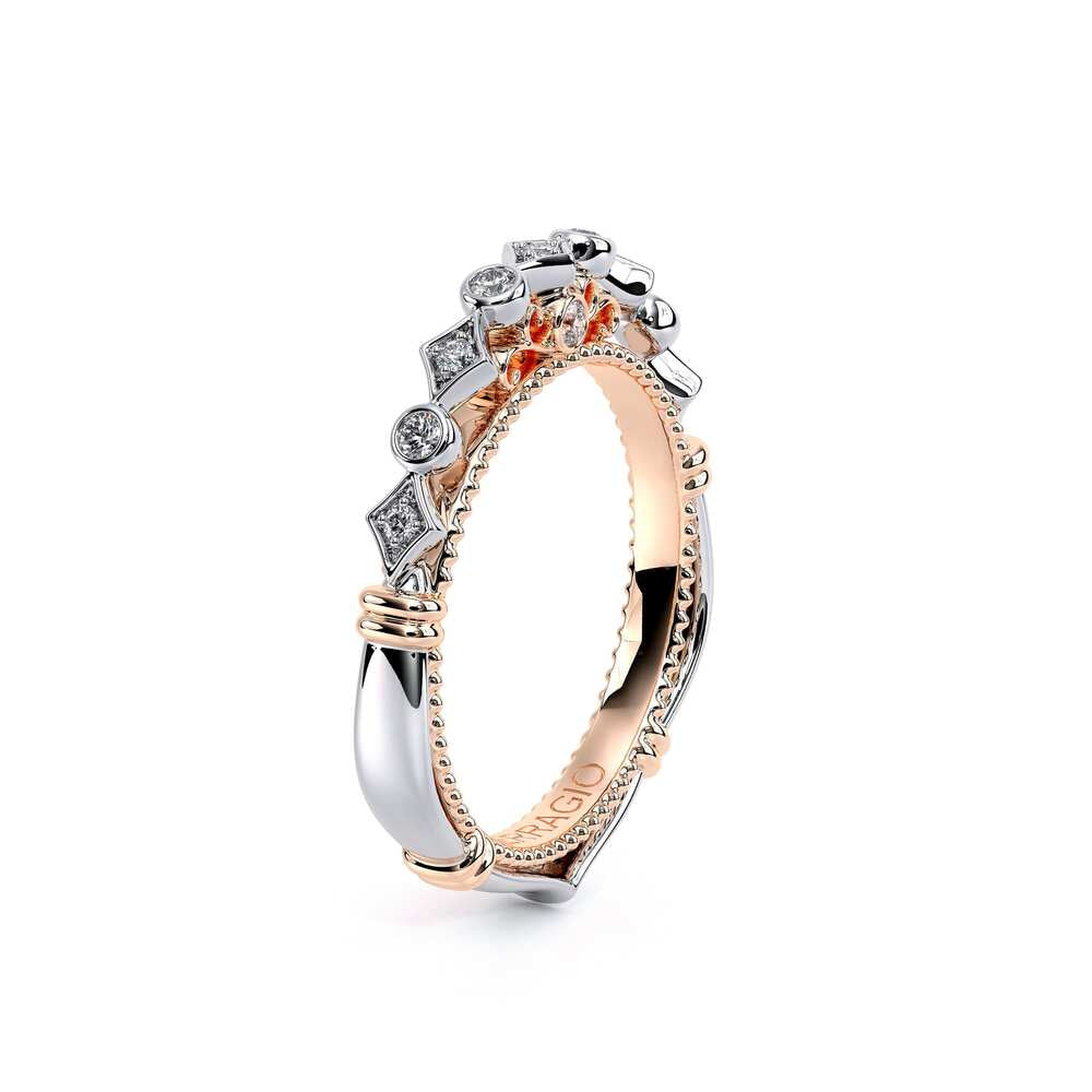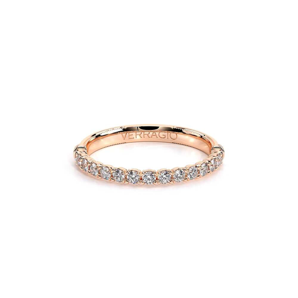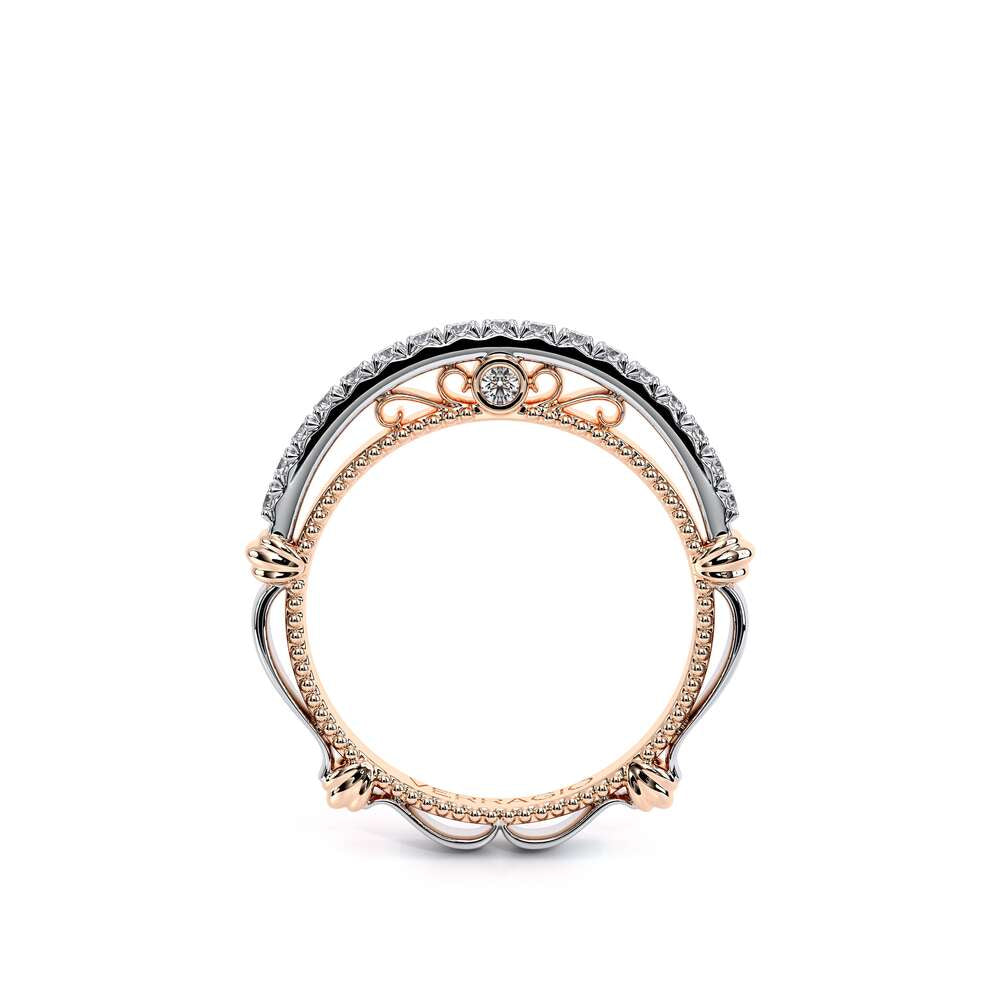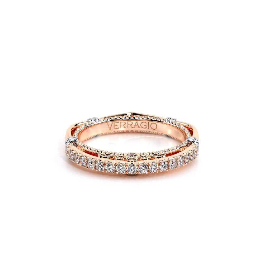 PARISIAN-141W highlights the beautiful scalloped bezel set diamonds on the straight band, featuring our rose gold Eternal wraps and Verragio signature beading details to compliment your Verragio engagement ring perfectly. **Note: +$400 for Beading in a different color