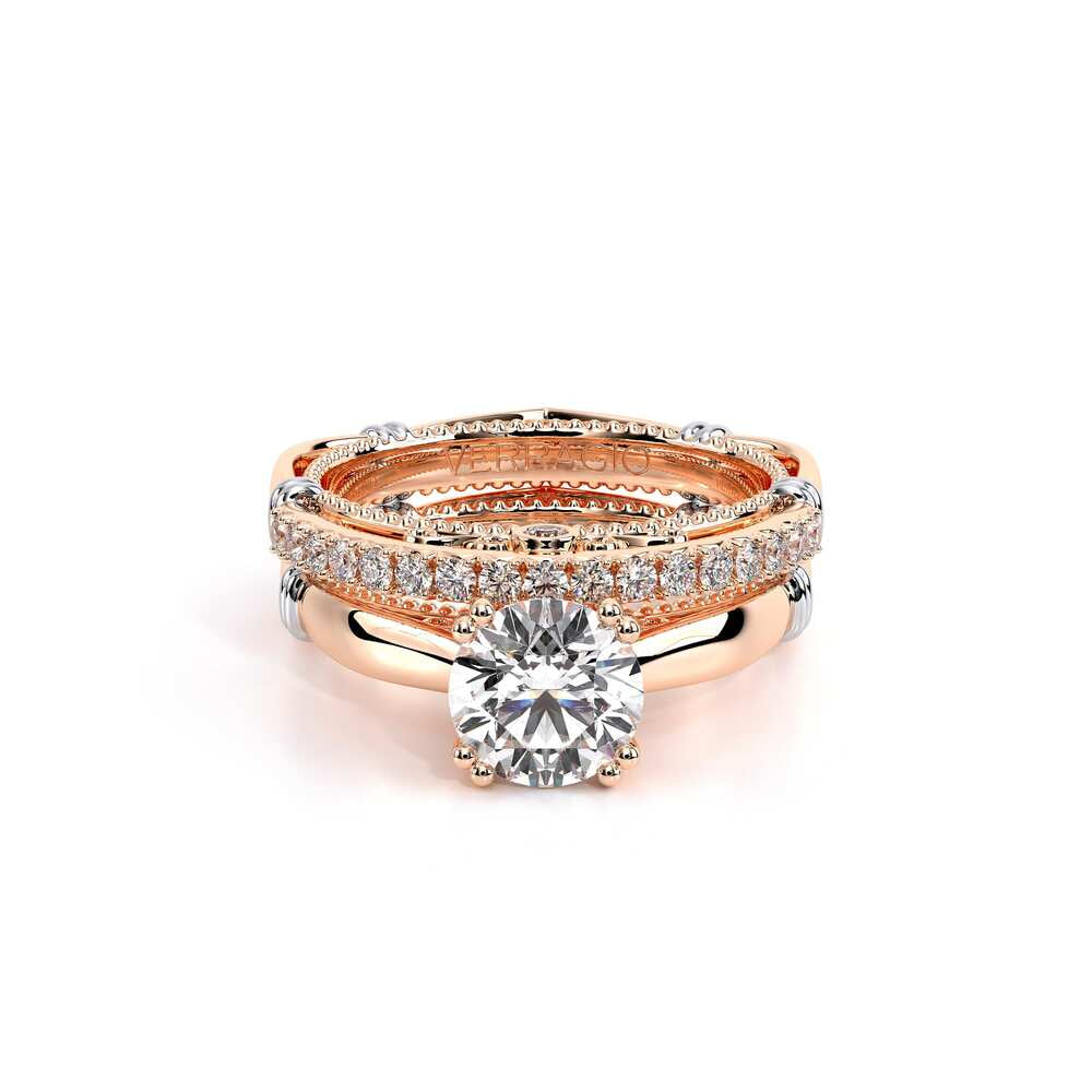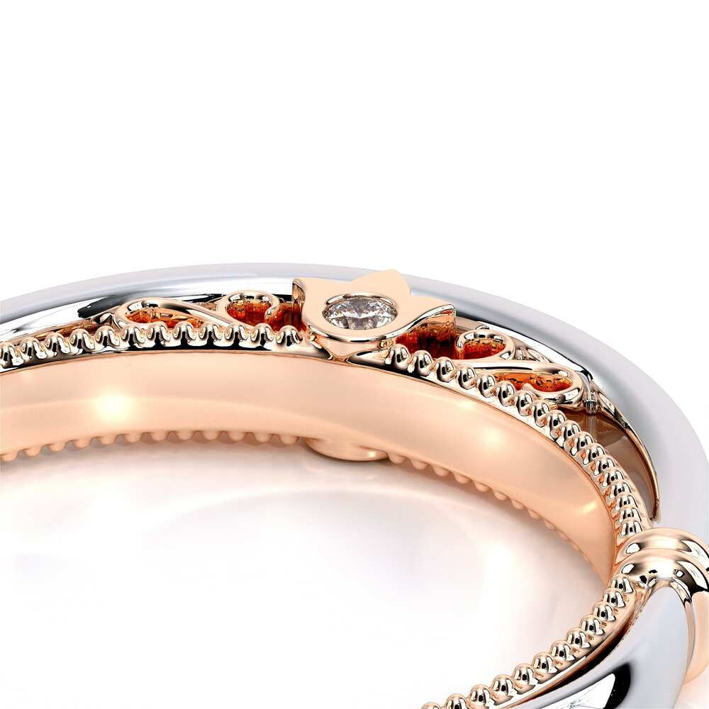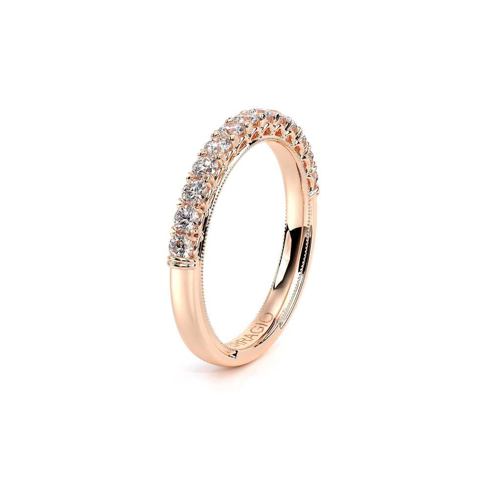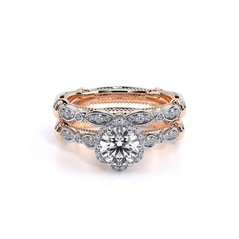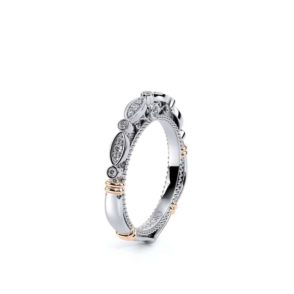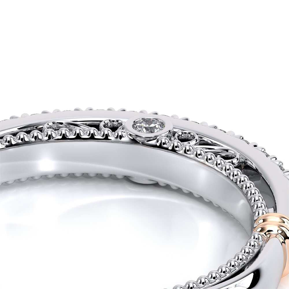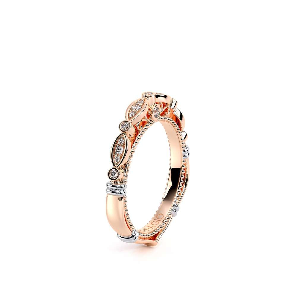 PARISIAN-141W highlights the beautiful scalloped bezel set diamonds on the straight band, featuring our rose gold Eternal wraps and Verragio signature beading details to compliment your Verragio engagement ring perfectly. **Note: +$400 for Beading in a different color