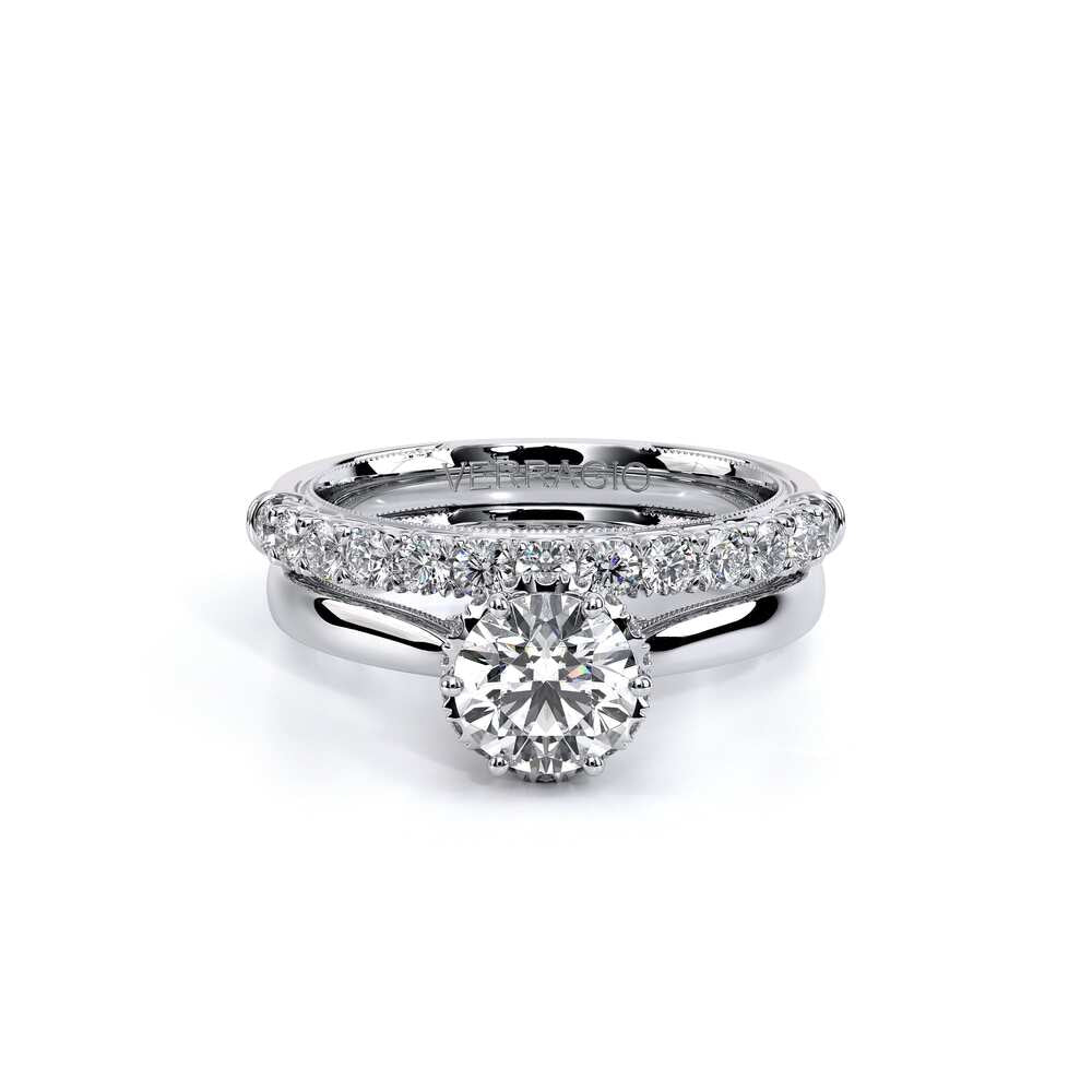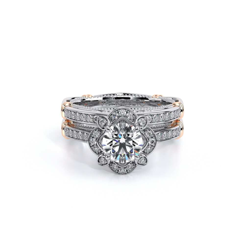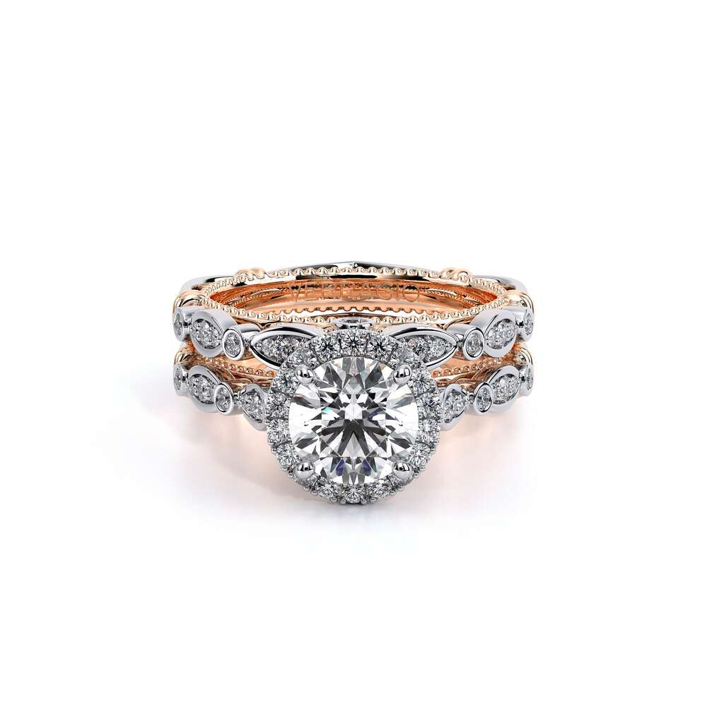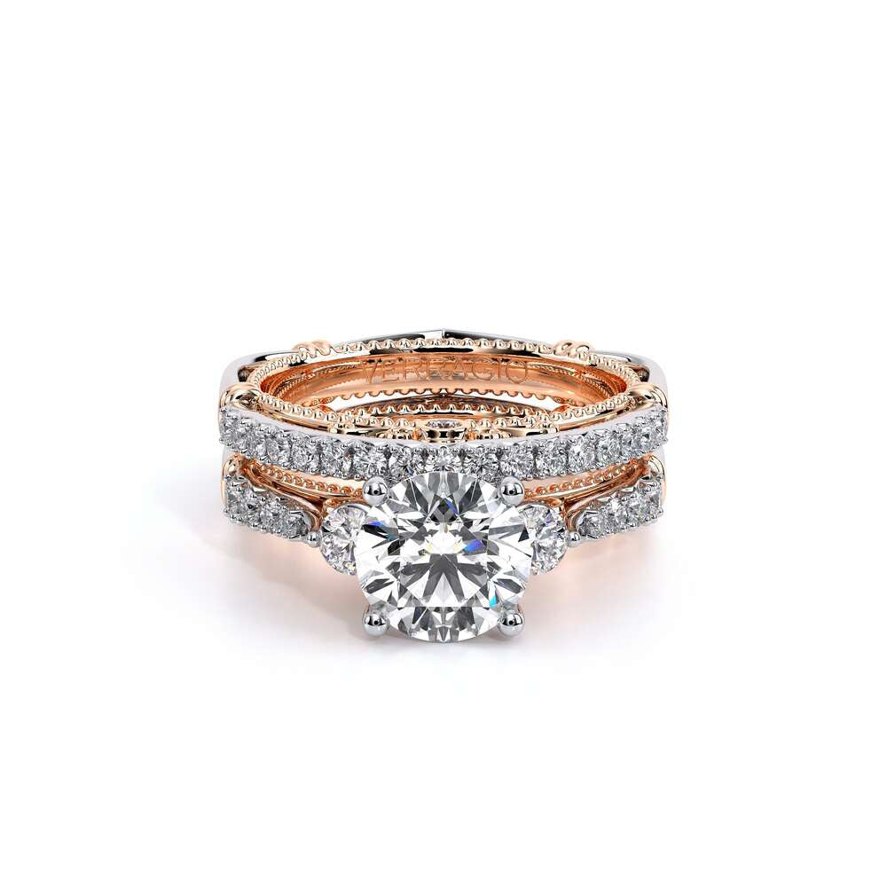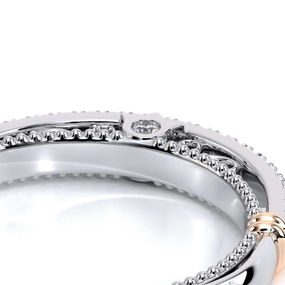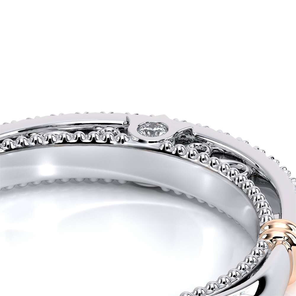 PARISIAN-141W highlights the beautiful scalloped bezel set diamonds on the straight band, featuring our rose gold Eternal wraps and Verragio signature beading details to compliment your Verragio engagement ring perfectly. **Note: +$400 for Beading in a different color