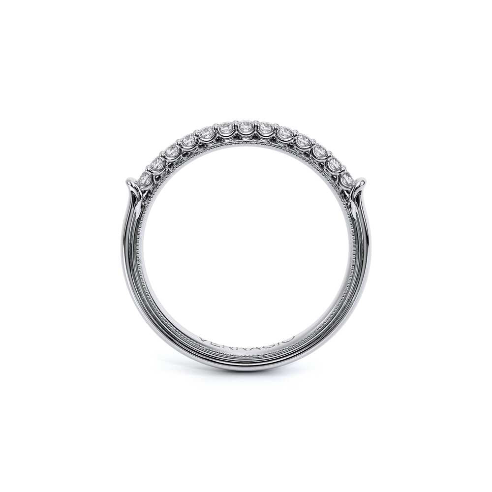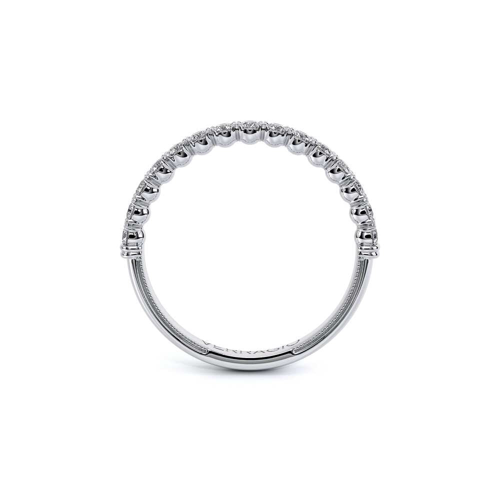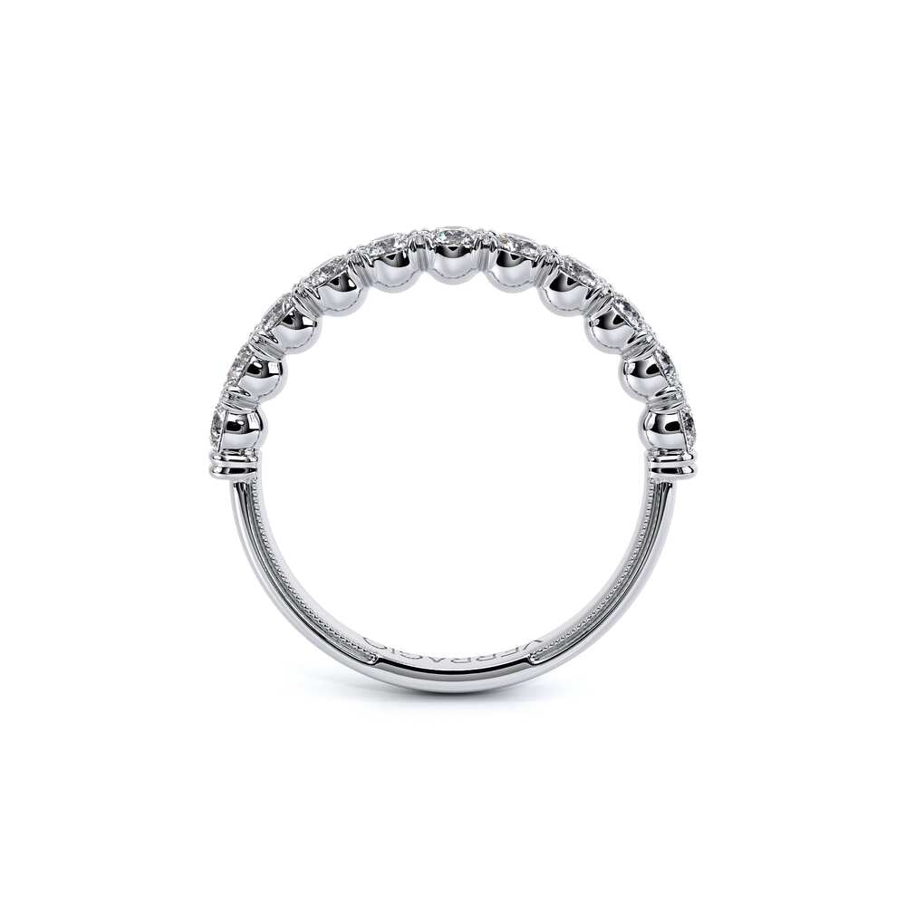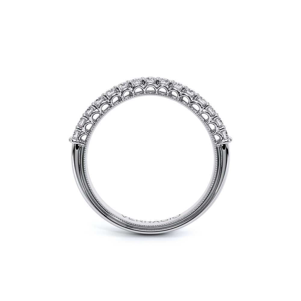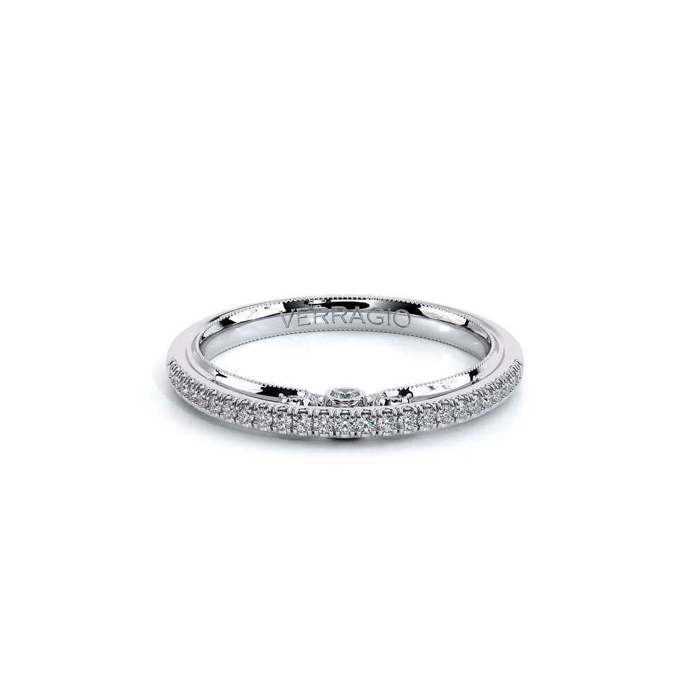 PARISIAN-136W wedding band carries through the beautiful scalloped bezel set diamonds on the band, adorned with Parisian lace and Timeless wraps details to compliment your Verragio engagement ring perfectly. **Note: +$400 for Lace, Beading or Both in a different color