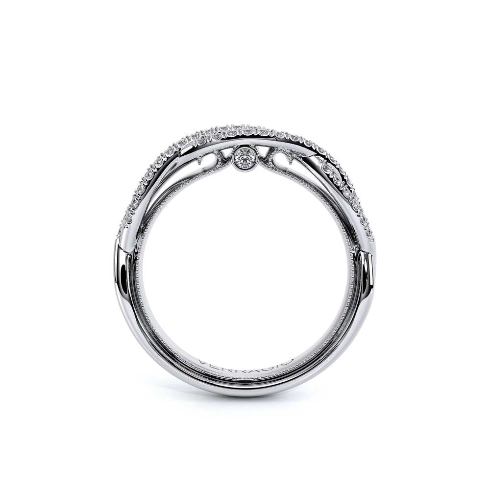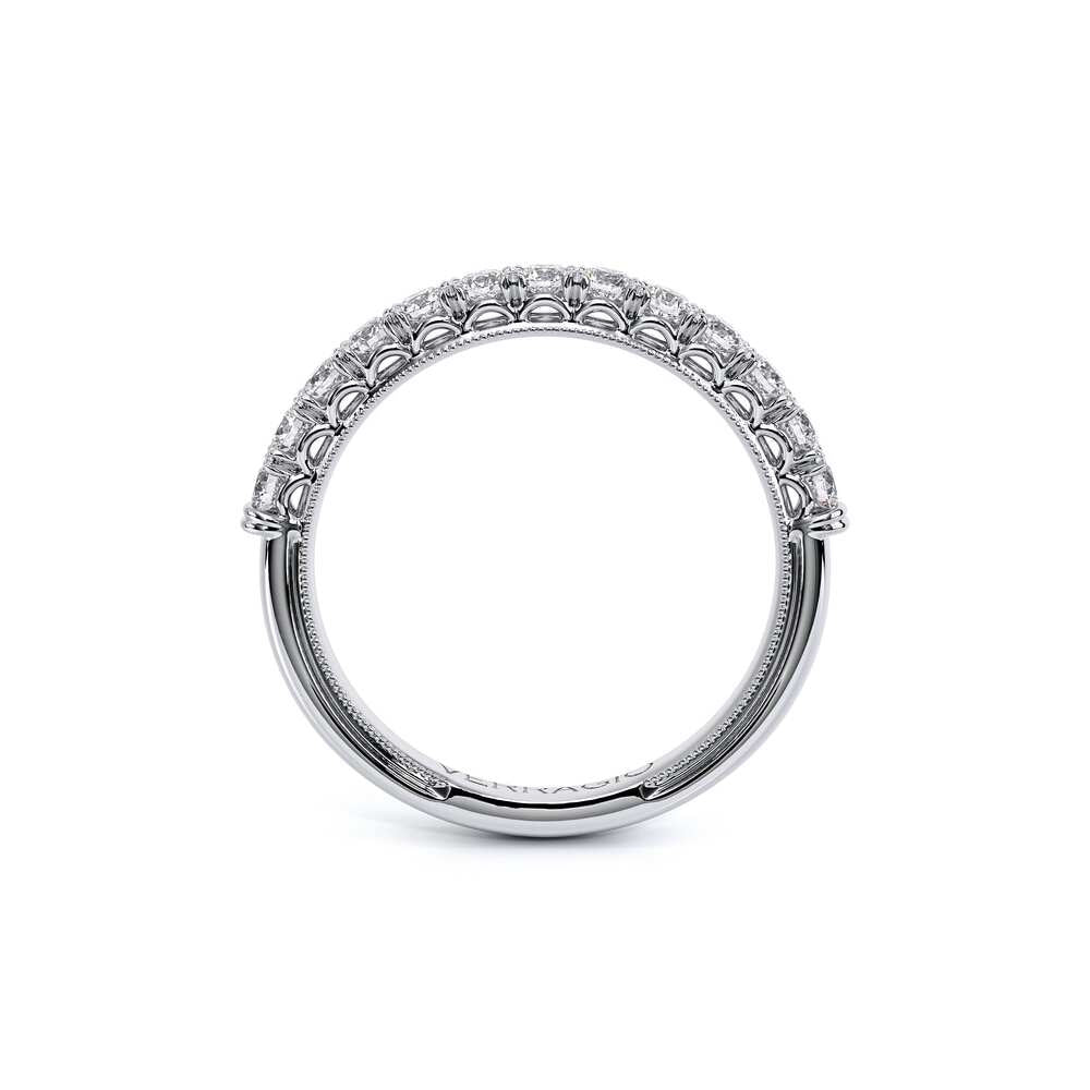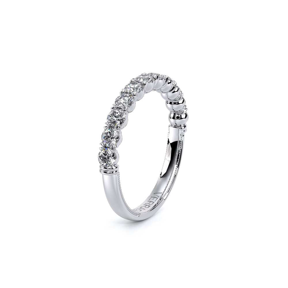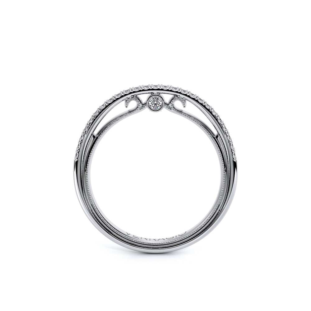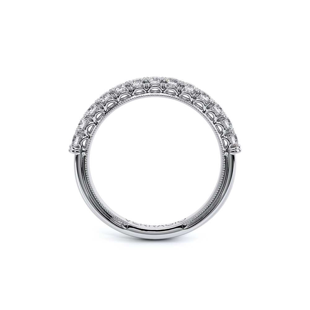 PARISIAN-136W wedding band carries through the beautiful scalloped bezel set diamonds on the band, adorned with Parisian lace and Timeless wraps details to compliment your Verragio engagement ring perfectly. **Note: +$400 for Lace, Beading or Both in a different color