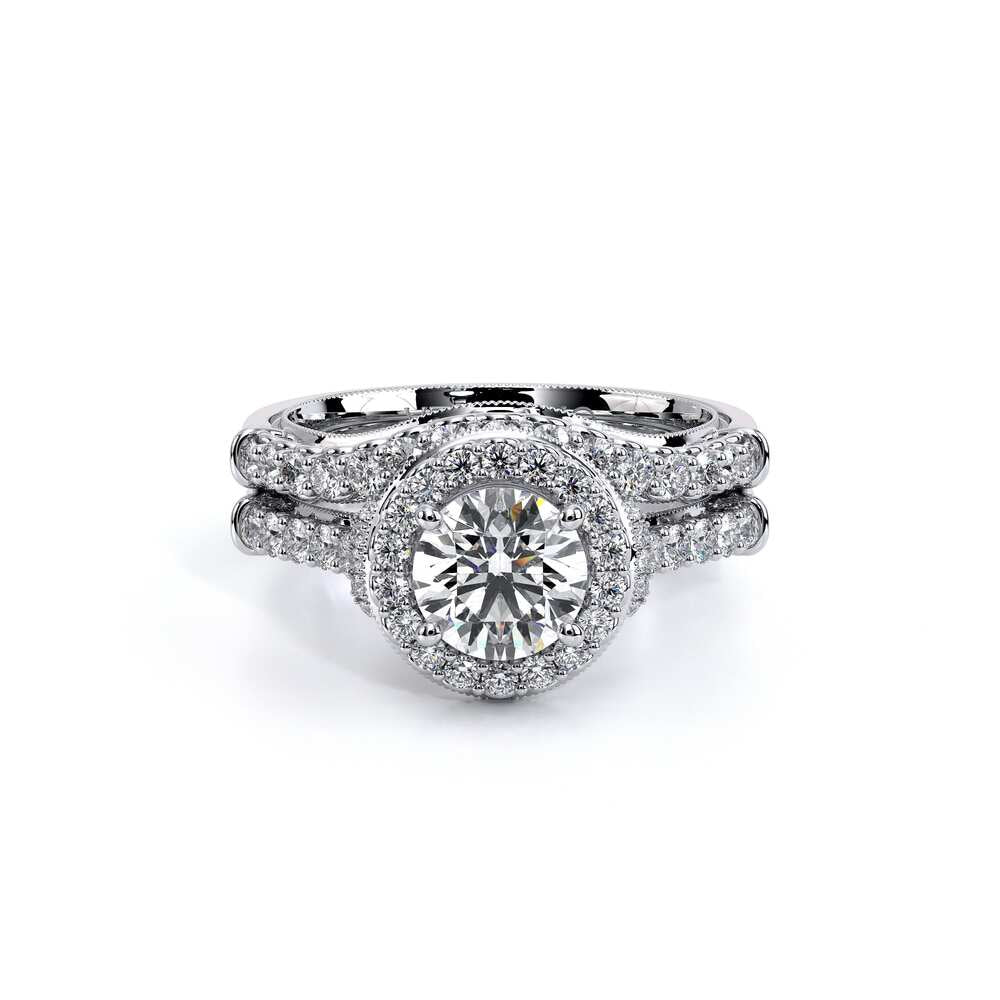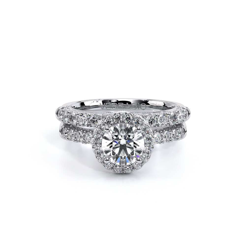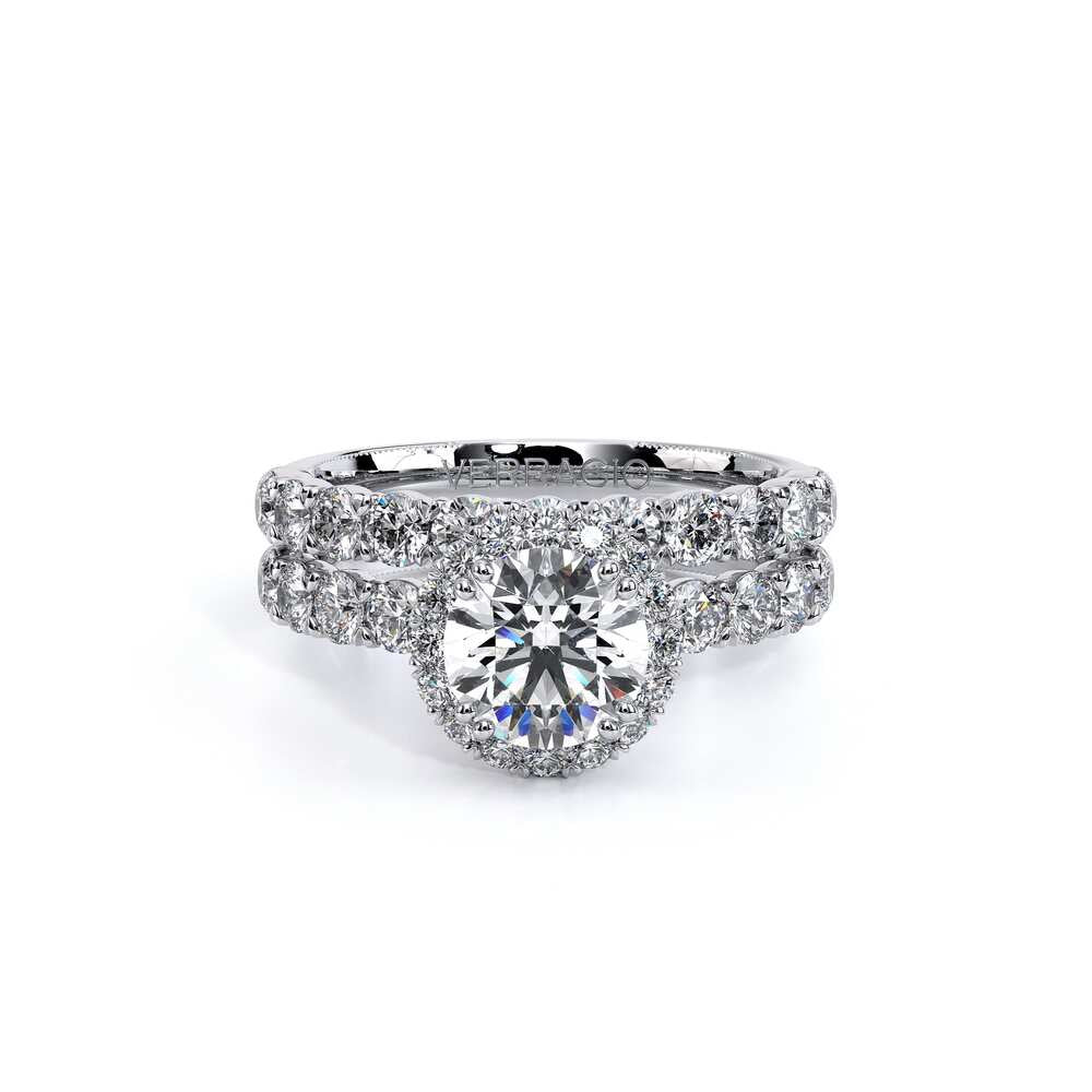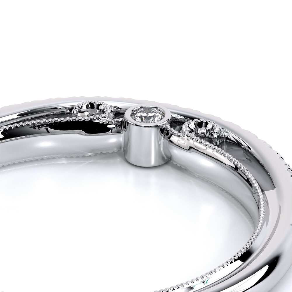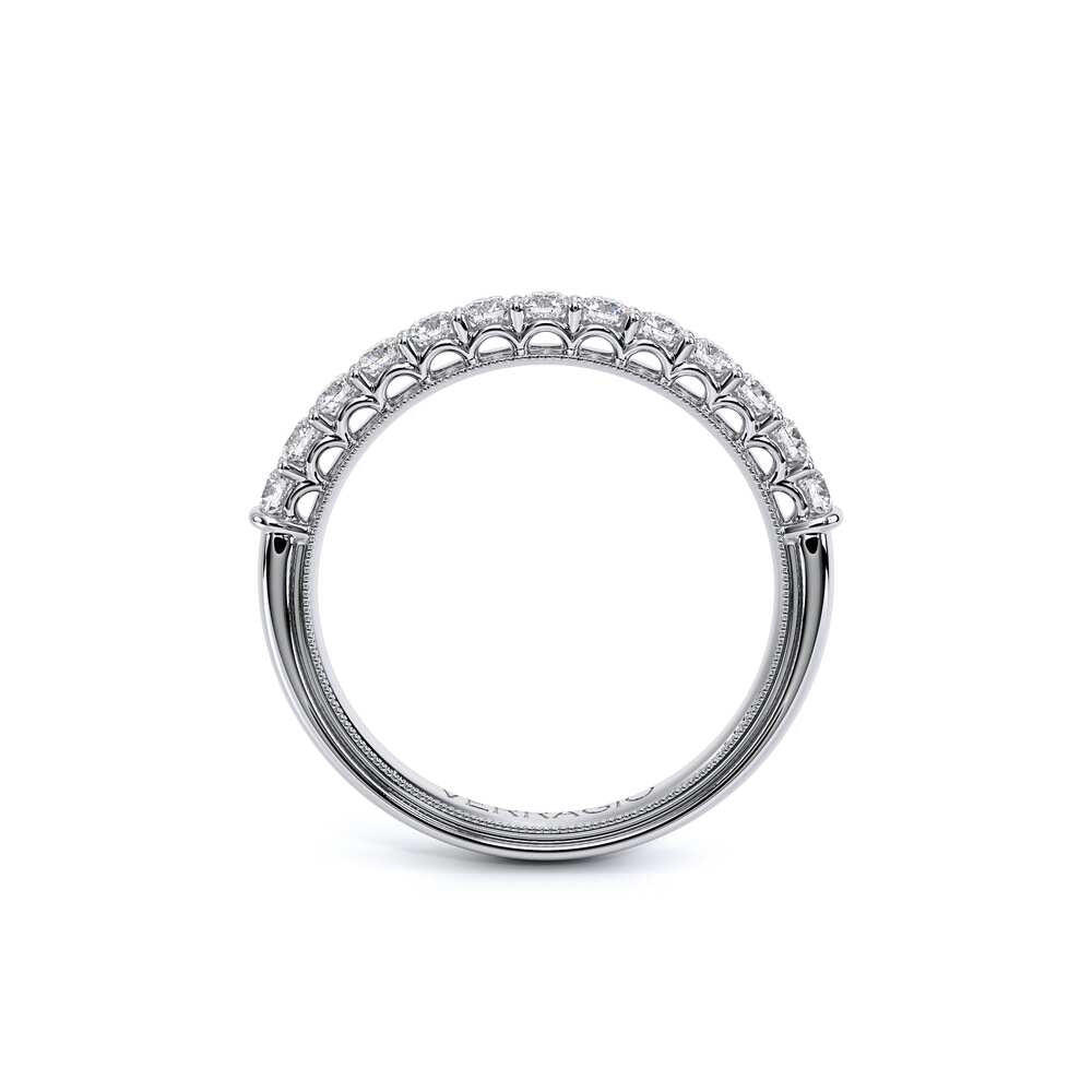 PARISIAN-136W wedding band carries through the beautiful scalloped bezel set diamonds on the band, adorned with Parisian lace and Timeless wraps details to compliment your Verragio engagement ring perfectly. **Note: +$400 for Lace, Beading or Both in a different color