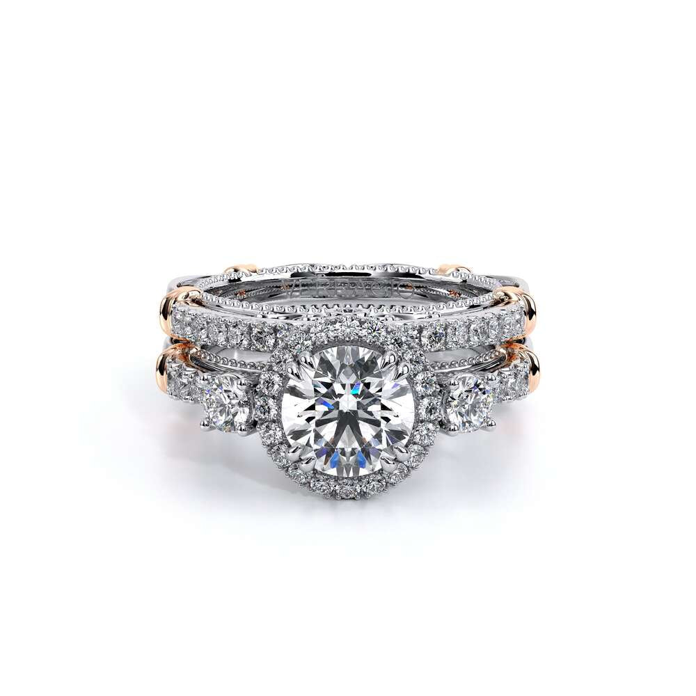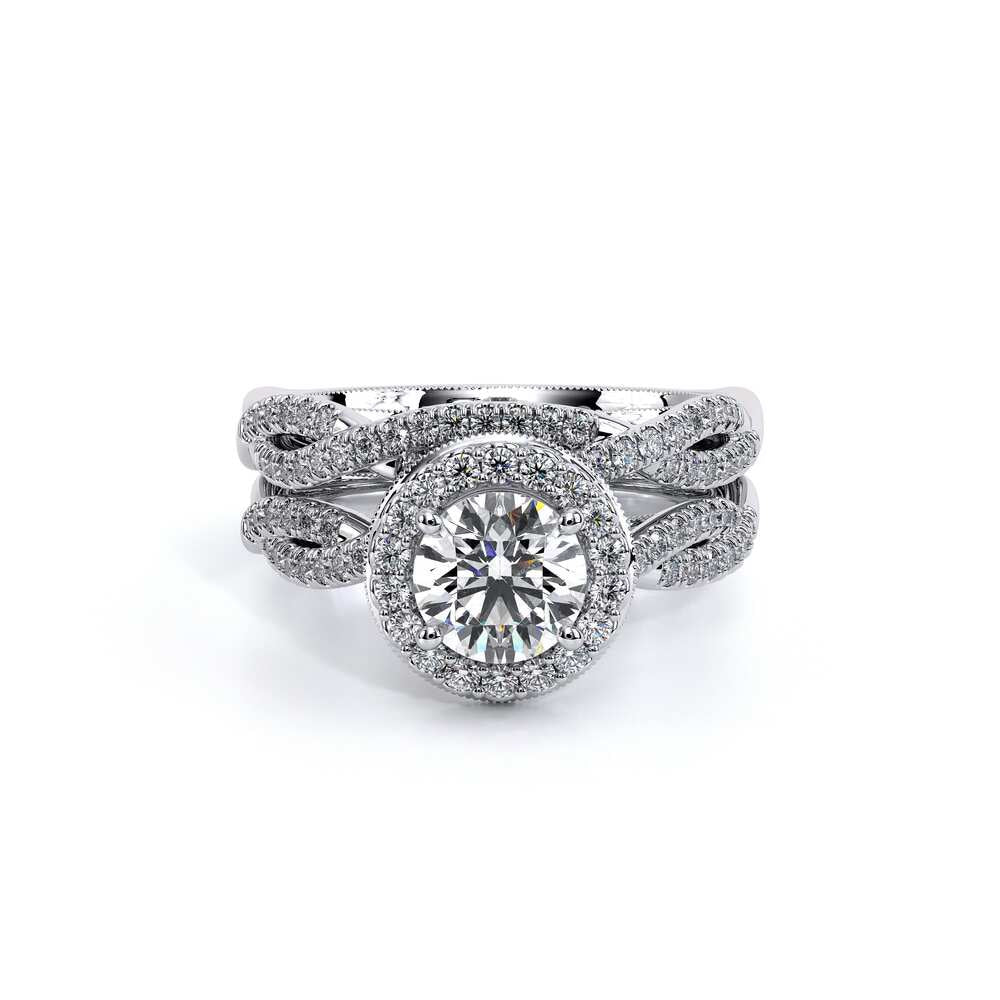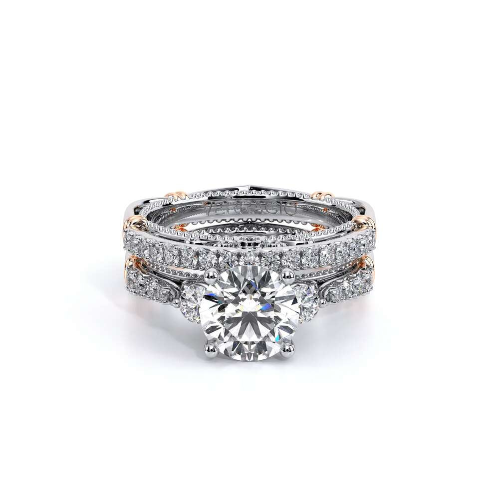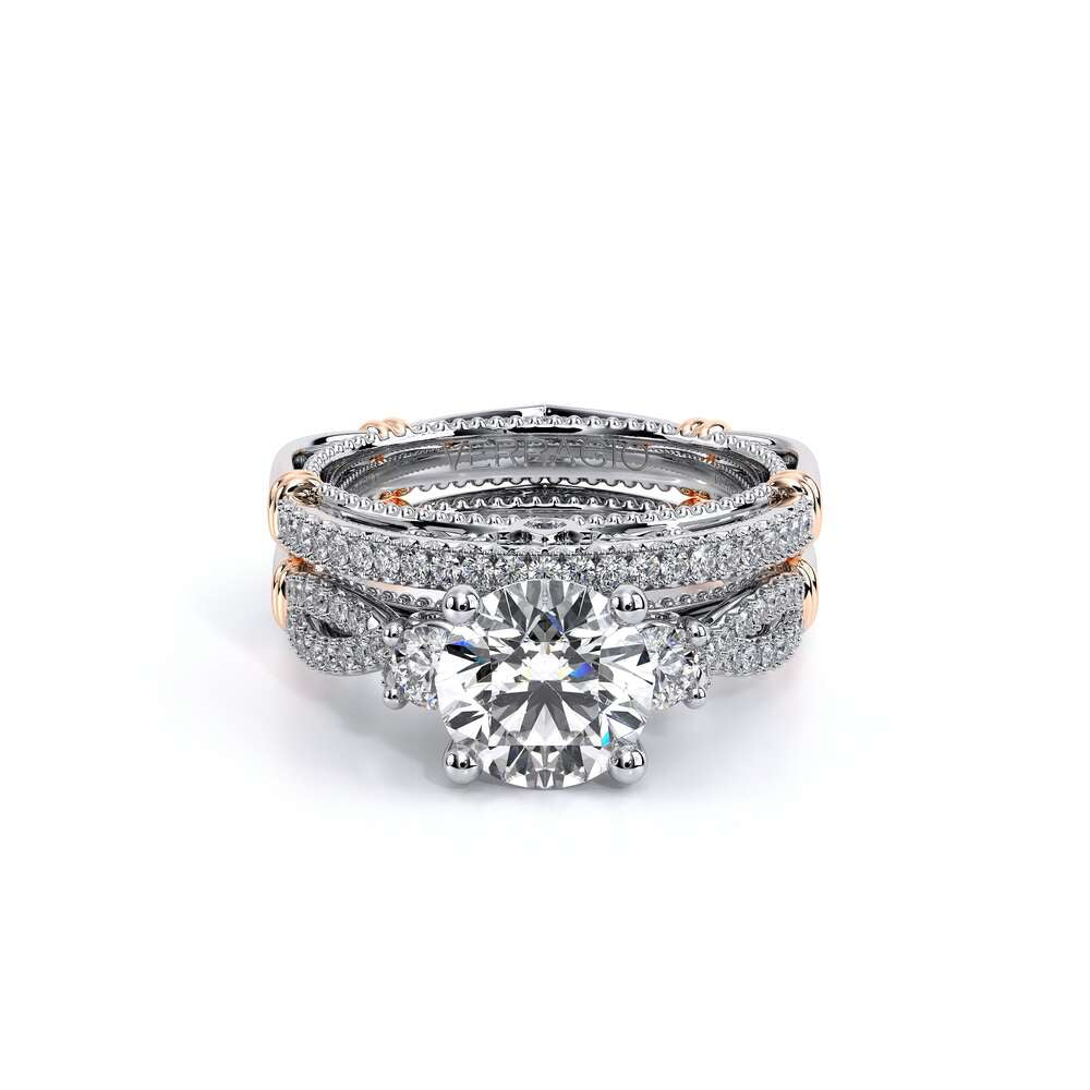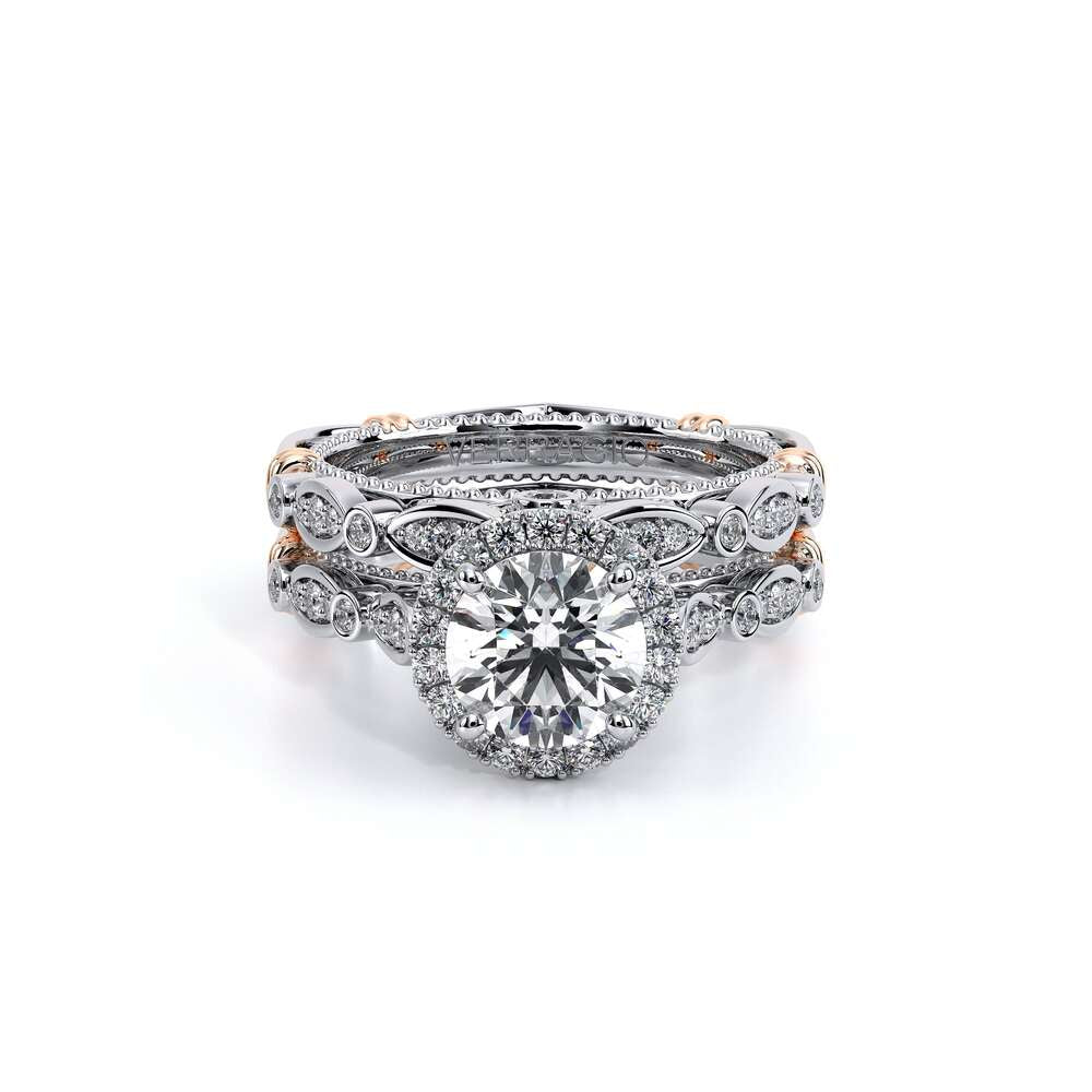 Parisian-106W wedding band is a beautifully handcrafted twisted style band that features the Parisian lace detail, our Verragio Signature beading and rose gold Timeless wraps to create the perfect wedding set. **Note: +$400 for Lace, Beading or Both in a different color
