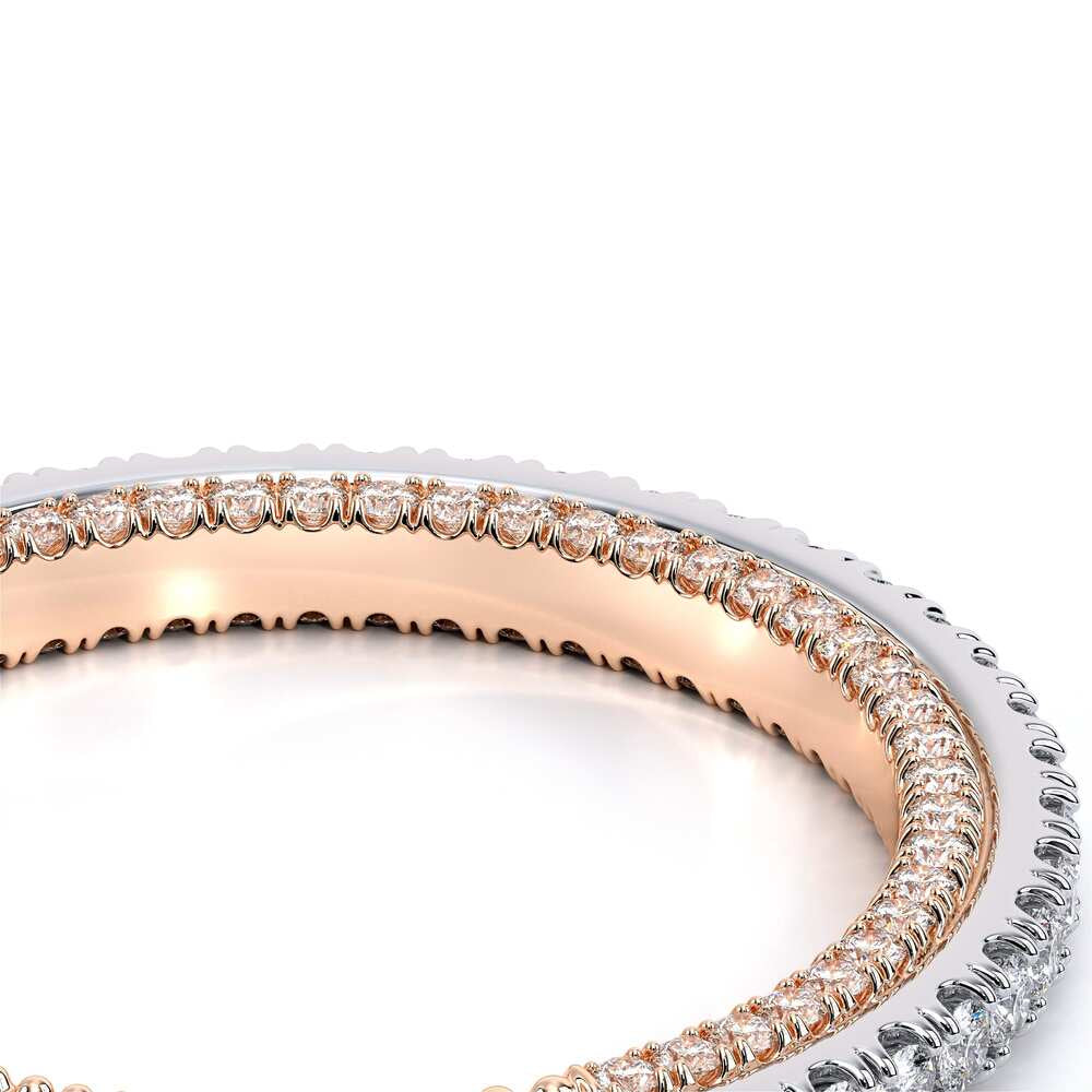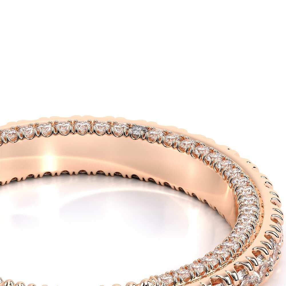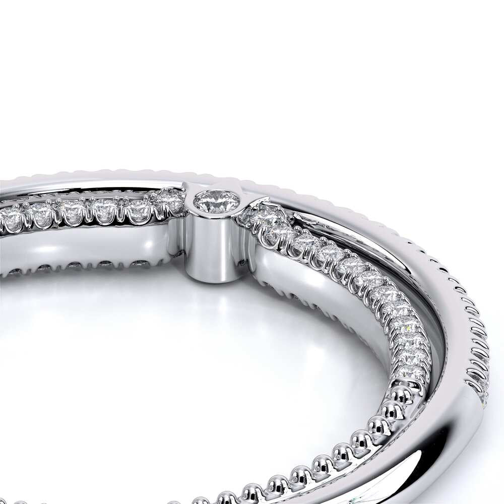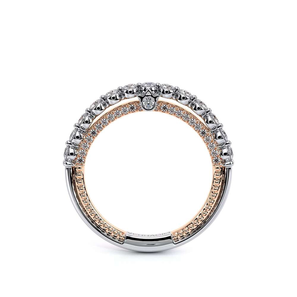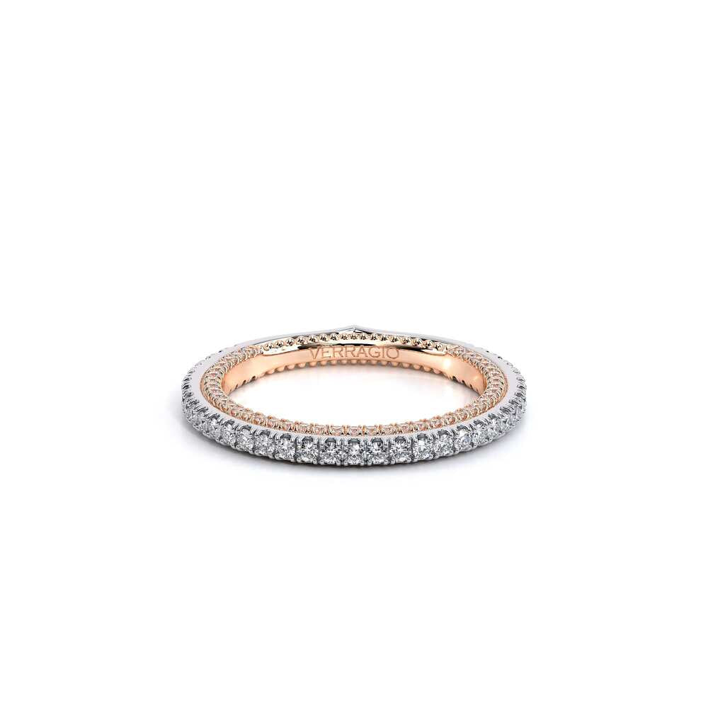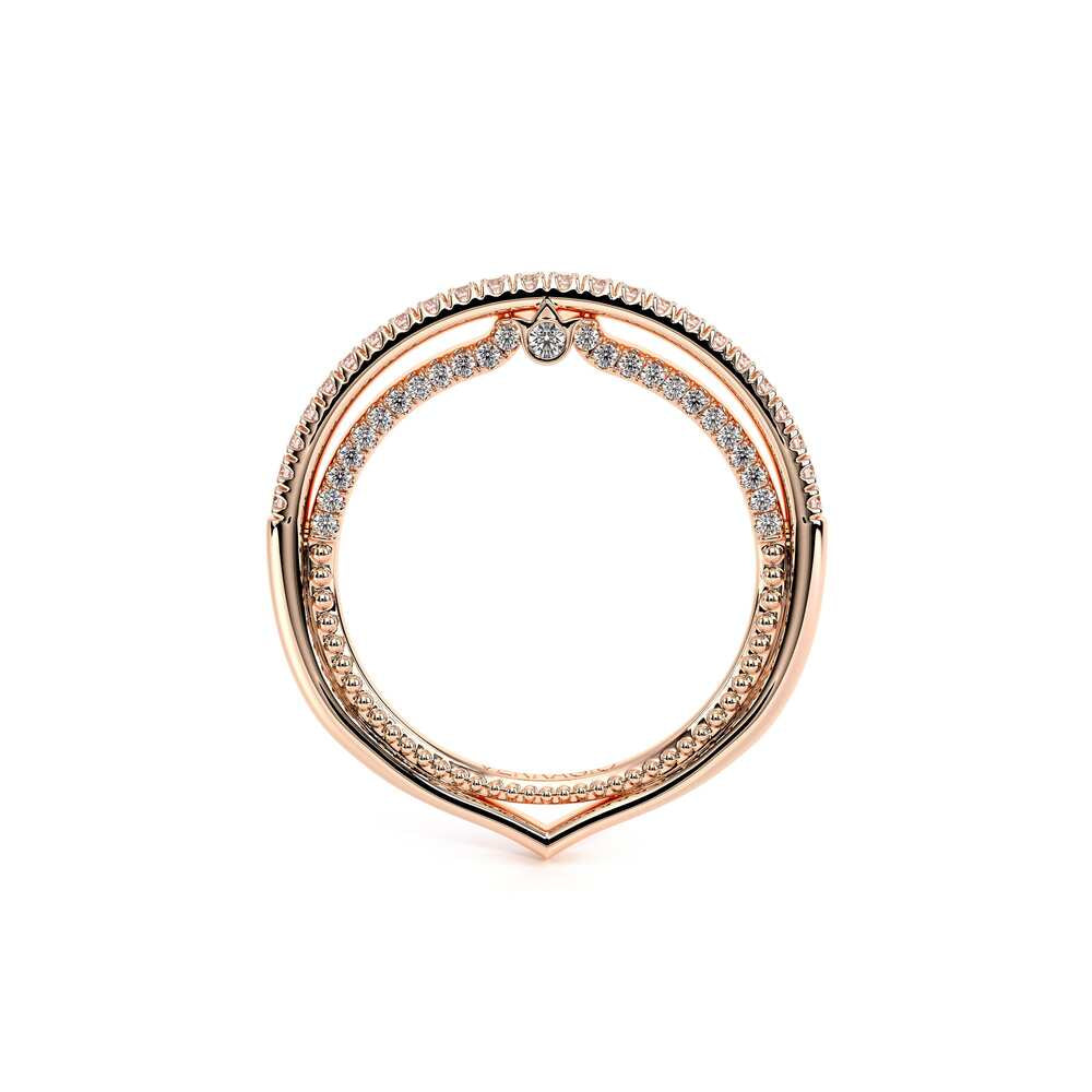 COUTURE-0420W-2T Classic Wedding band pave with round brilliant diamonds, featuring full Signature Beading profile, completed with the Couture pointed shank and Verragio Bezel immersed.