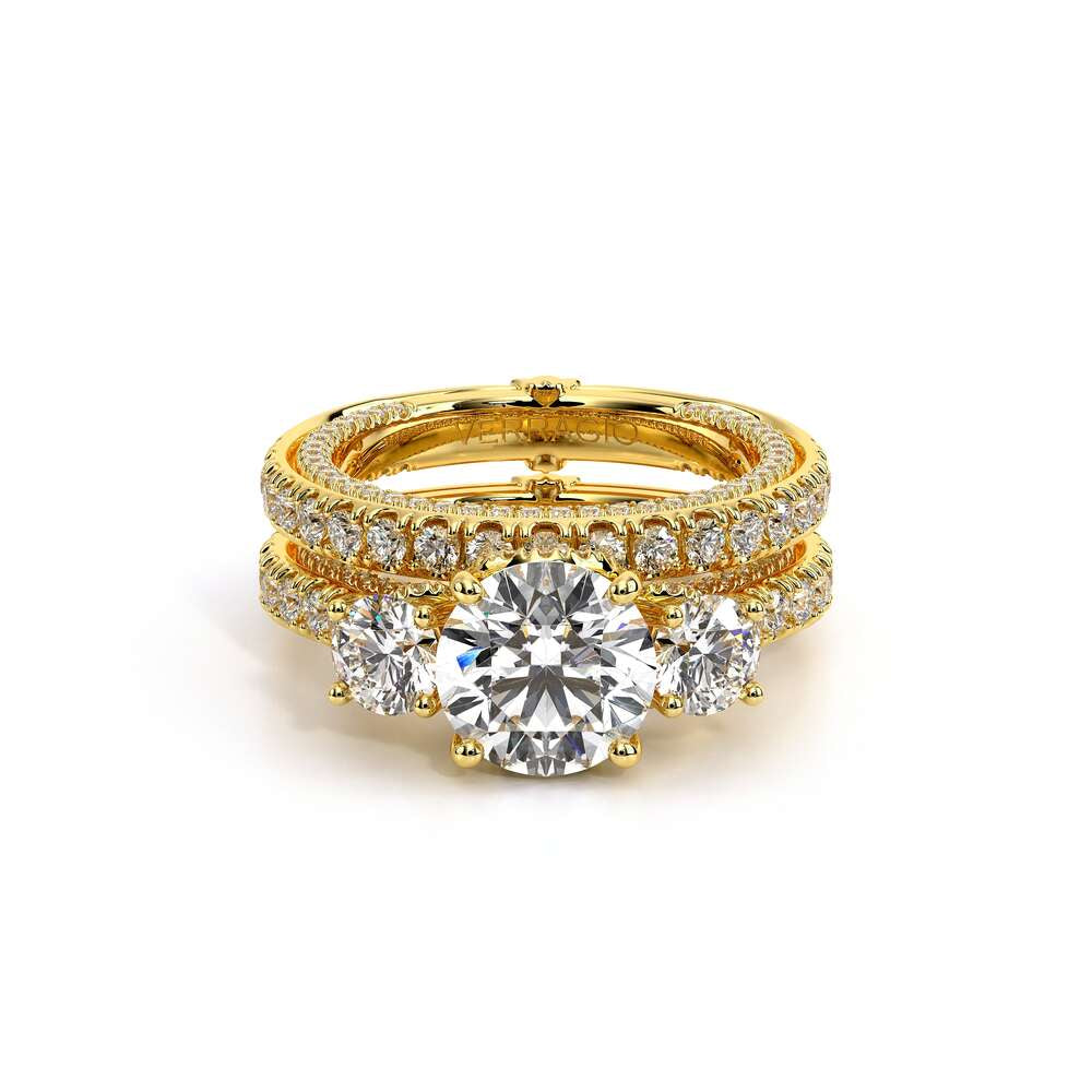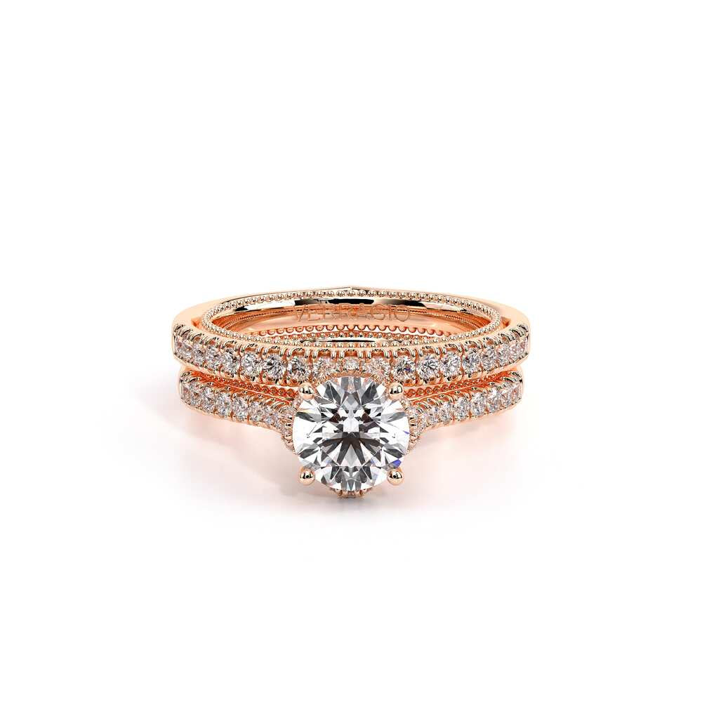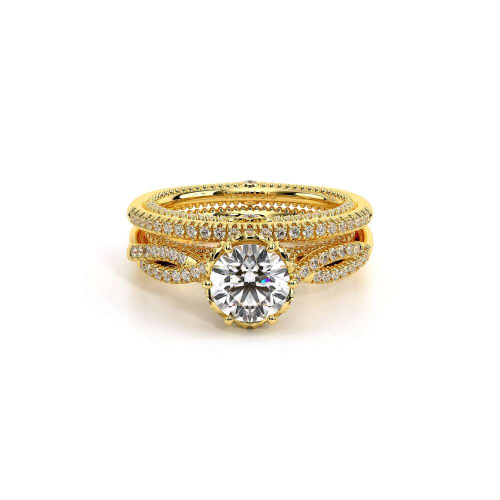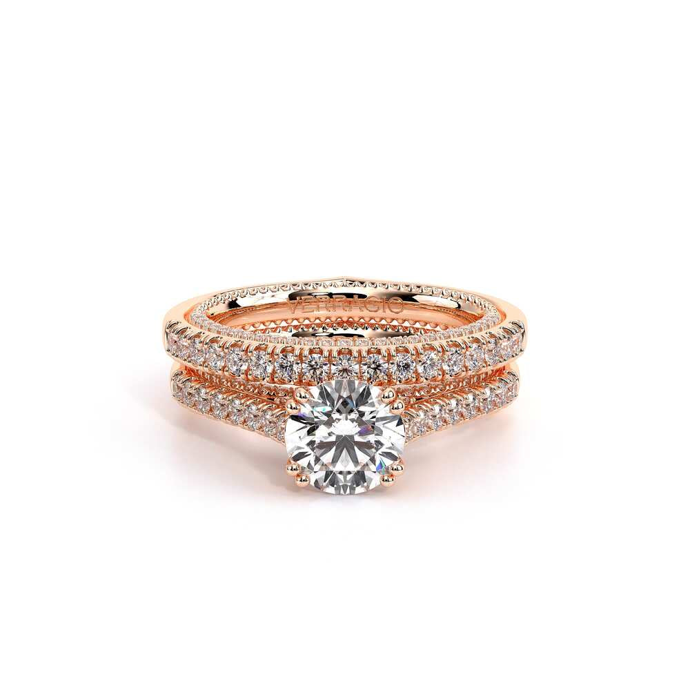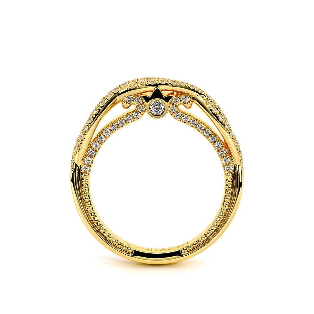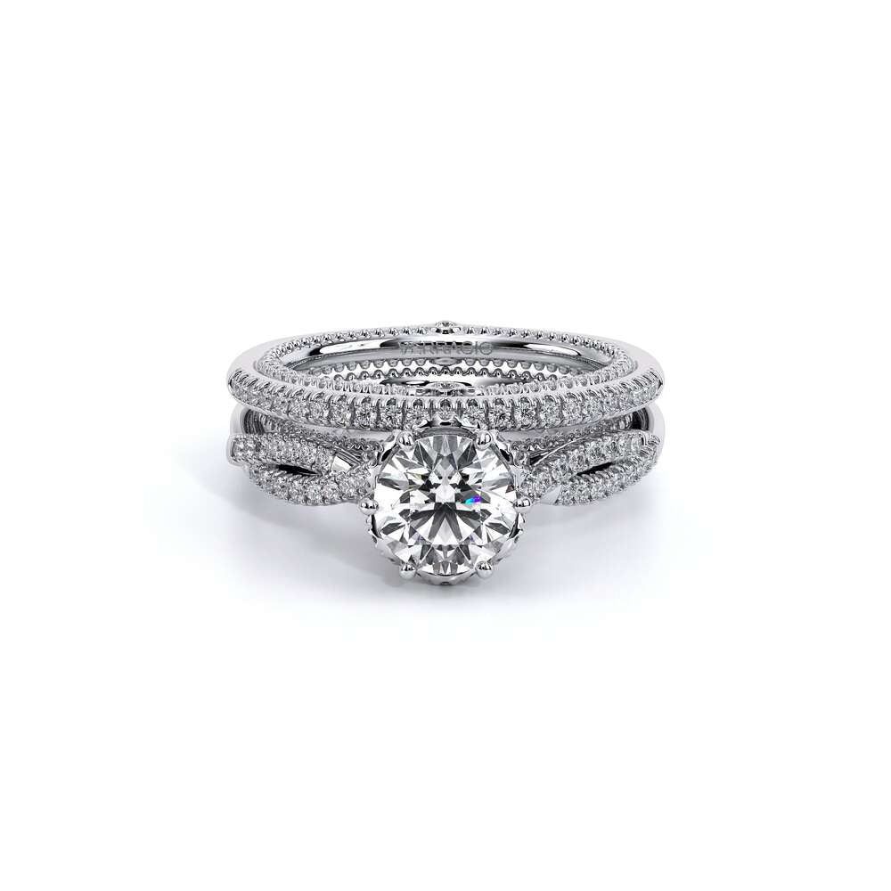 COUTURE-0451WSB Straight band version of 0451W, pave with round brilliant diamonds, featuring the Verragio Crest-Bezel Set and Half Diamond Riviera-Signature Beading profile, completed with the Couture pointed shank.