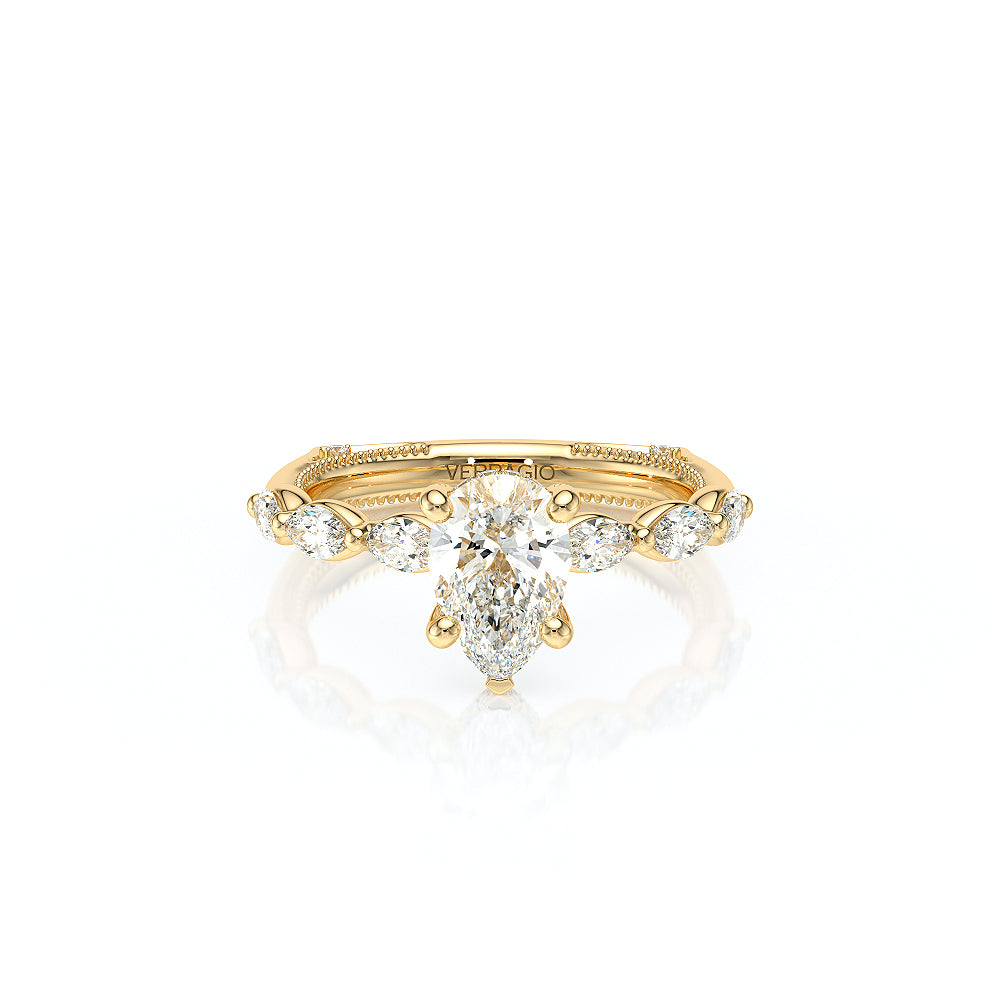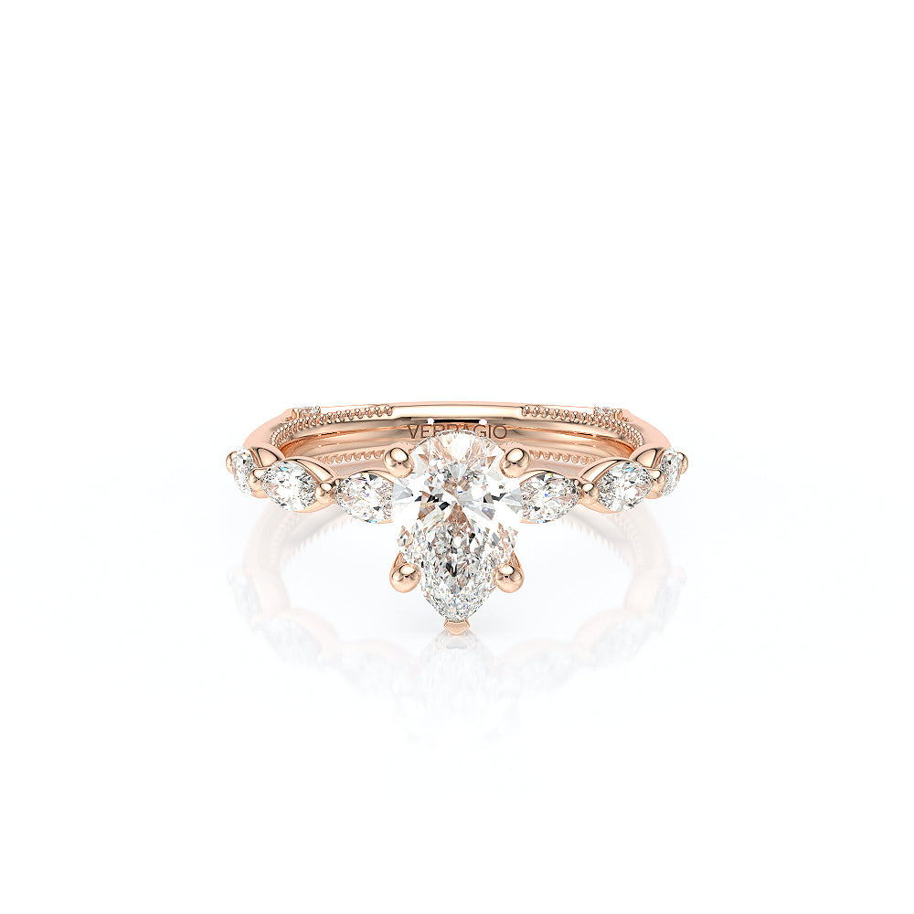 The VNG-2205R showcases three bold south-to-west facing marquise stones along the shank, complemented by Verragio beading and a diamond head for added sparkle.
