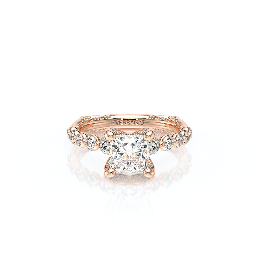 The VNG-2206P features round graduating stones that transition along the shank, with diamonds on each prong’s sides and Verragio beading enhancing the intricate and graceful design.