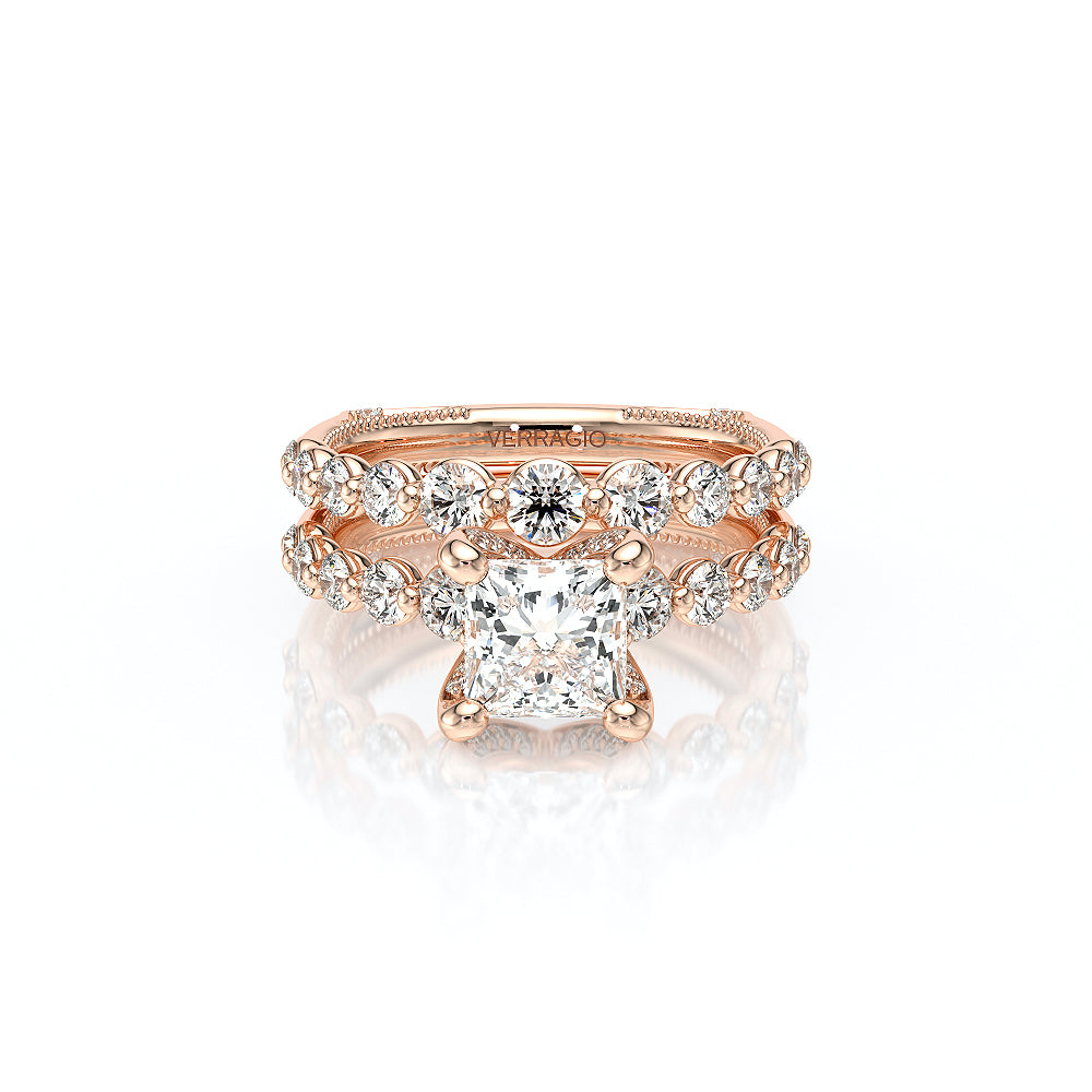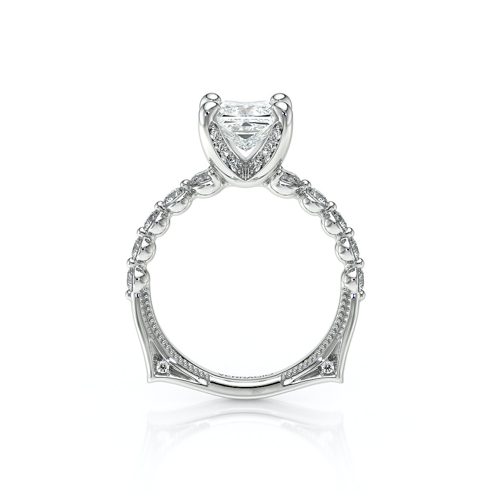 The VNG-2204P highlights a knife-edge shank with round stones, Verragio beading on the side profile, and diamond-accented prongs that enhance the overall aesthetic.