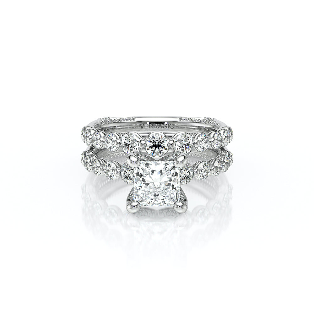 The diamond-intensive embellisher, VNG-2039W, showcases two inner rows of tiny round diamonds, beautifully framed by an outer row of graduating stones that transition seamlessly from small to large, creating a bold and visually stunning design that highlights Verragio's mastery in craftsmanship.