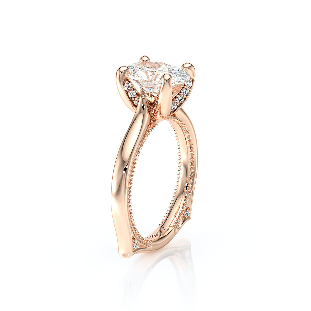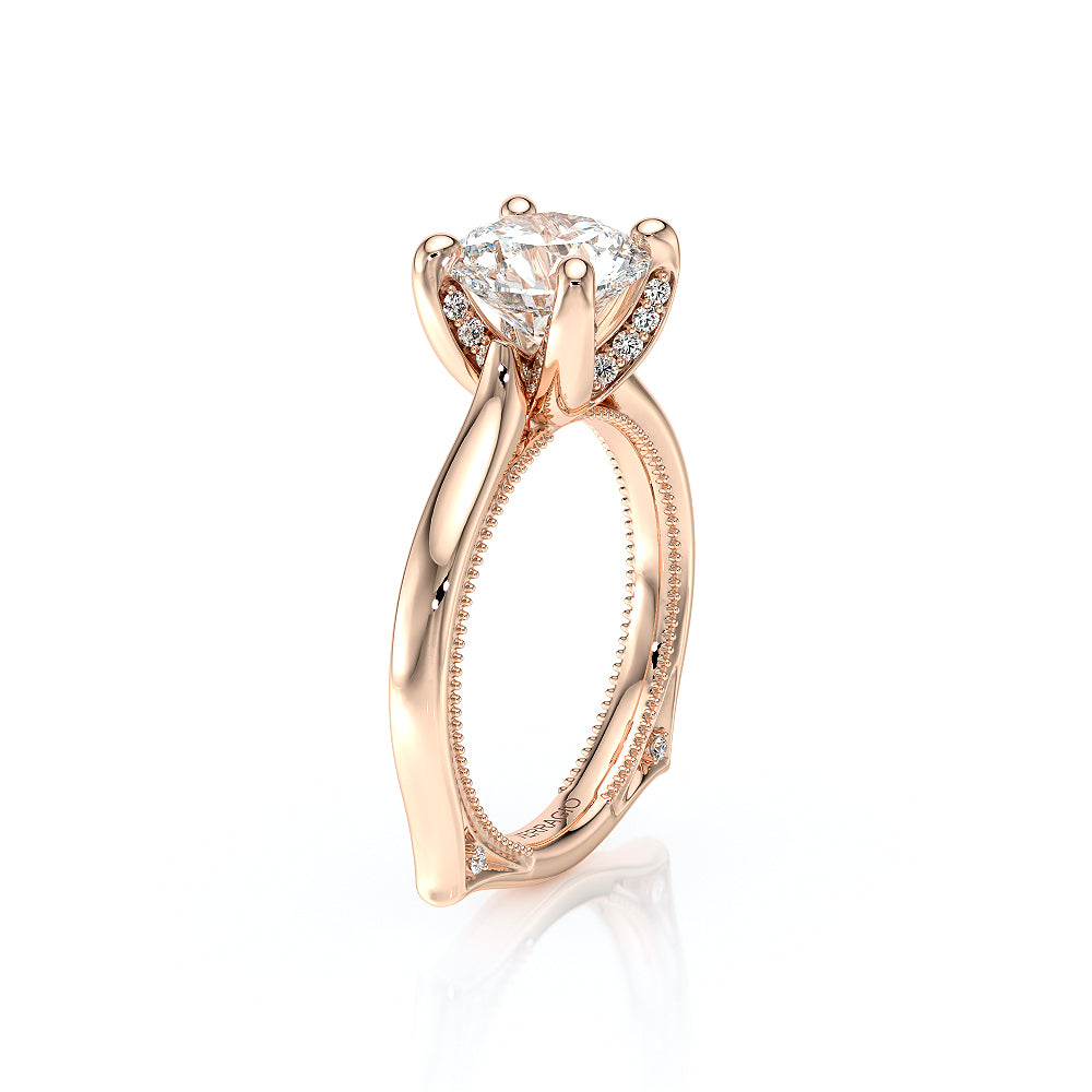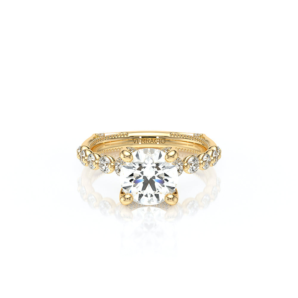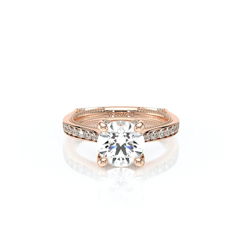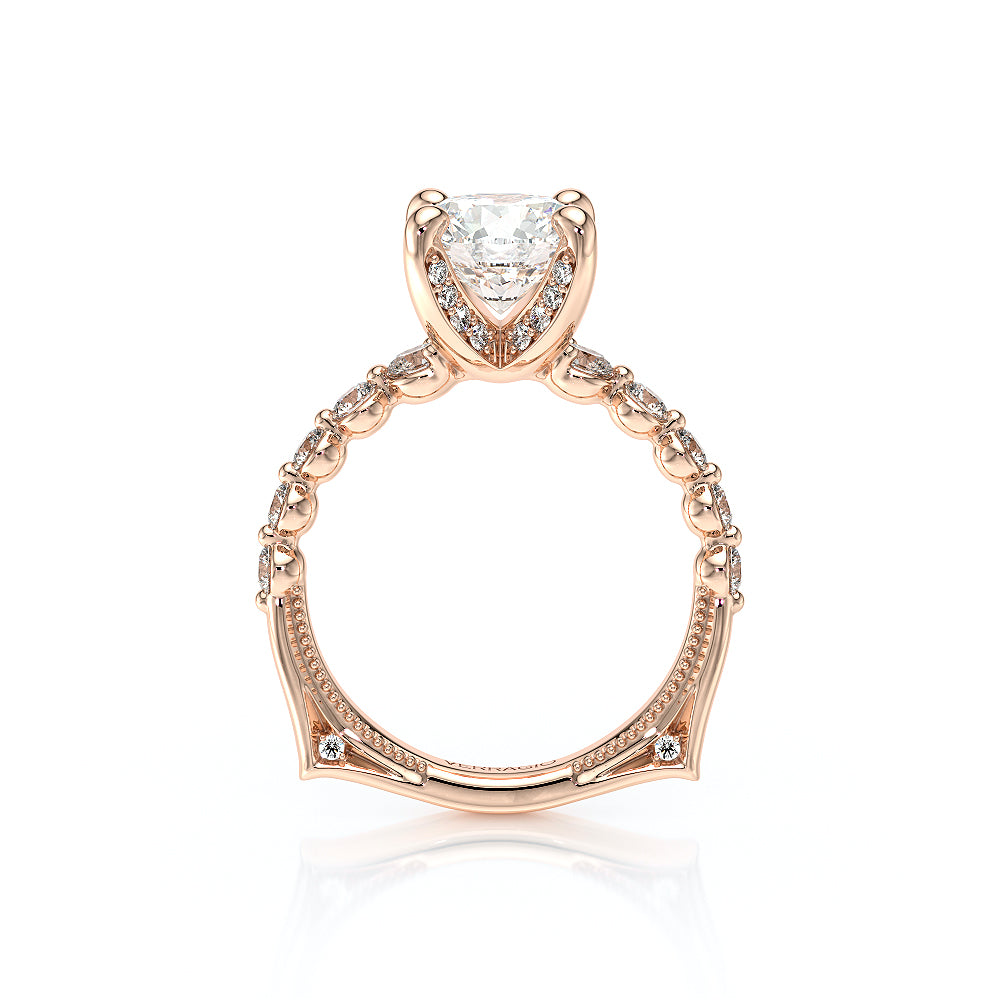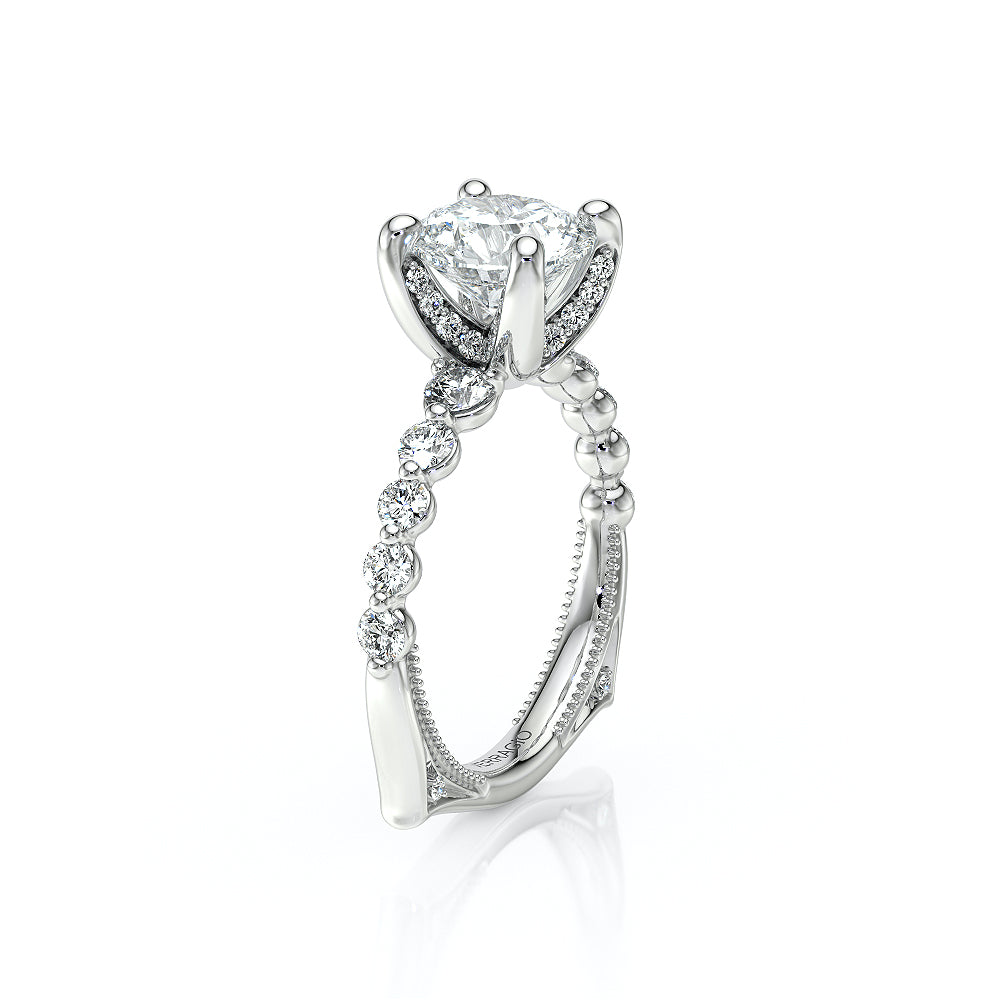 The VNG-2206R showcases round graduating stones along the shank, flowing from smaller to larger toward the head. Diamonds on each side of the prongs and Verragio beading create a beautifully detailed and elegant design.