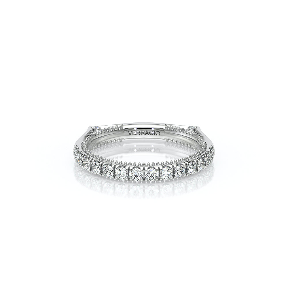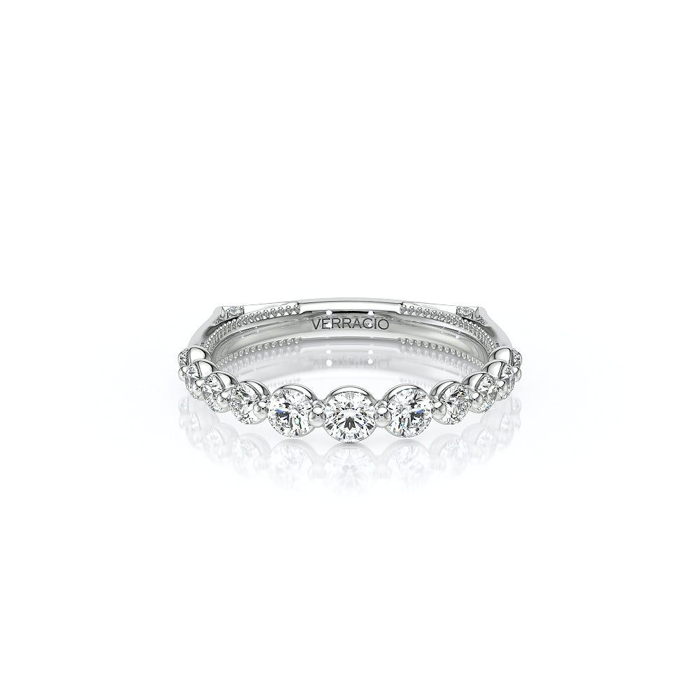 The VNG-2206W band features round graduating stones along the shank, elegantly accented by Verragio’s signature beading for a timeless and versatile design.
