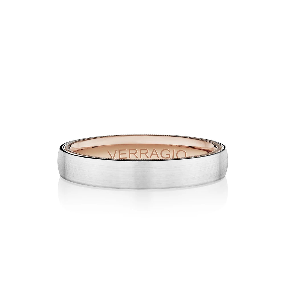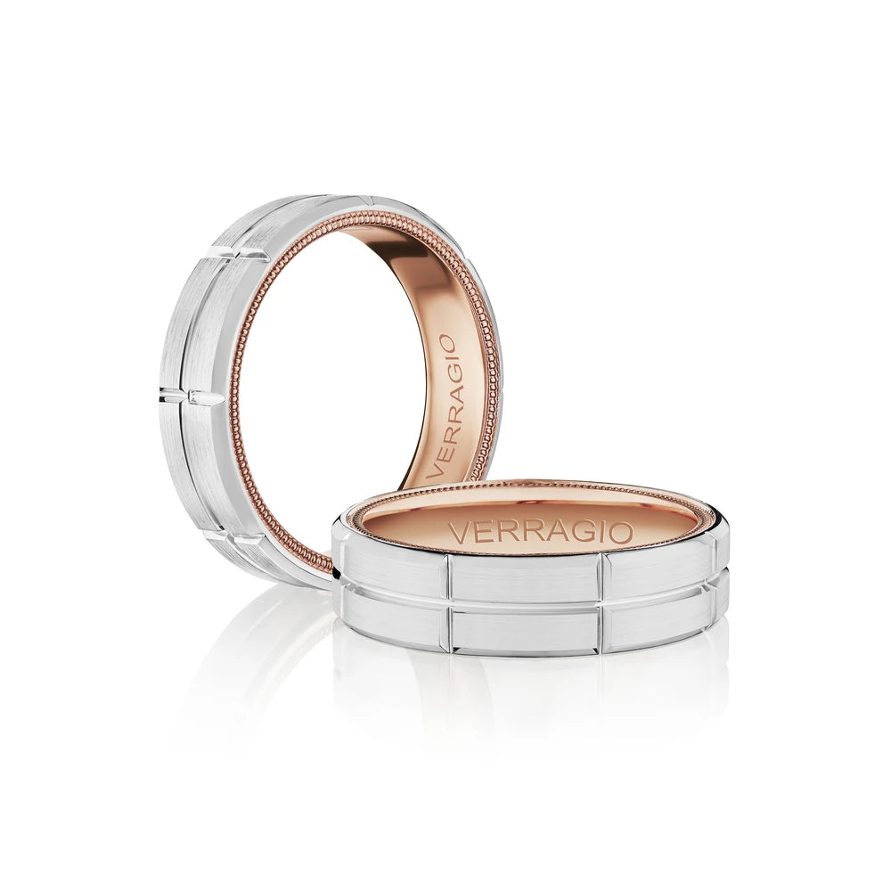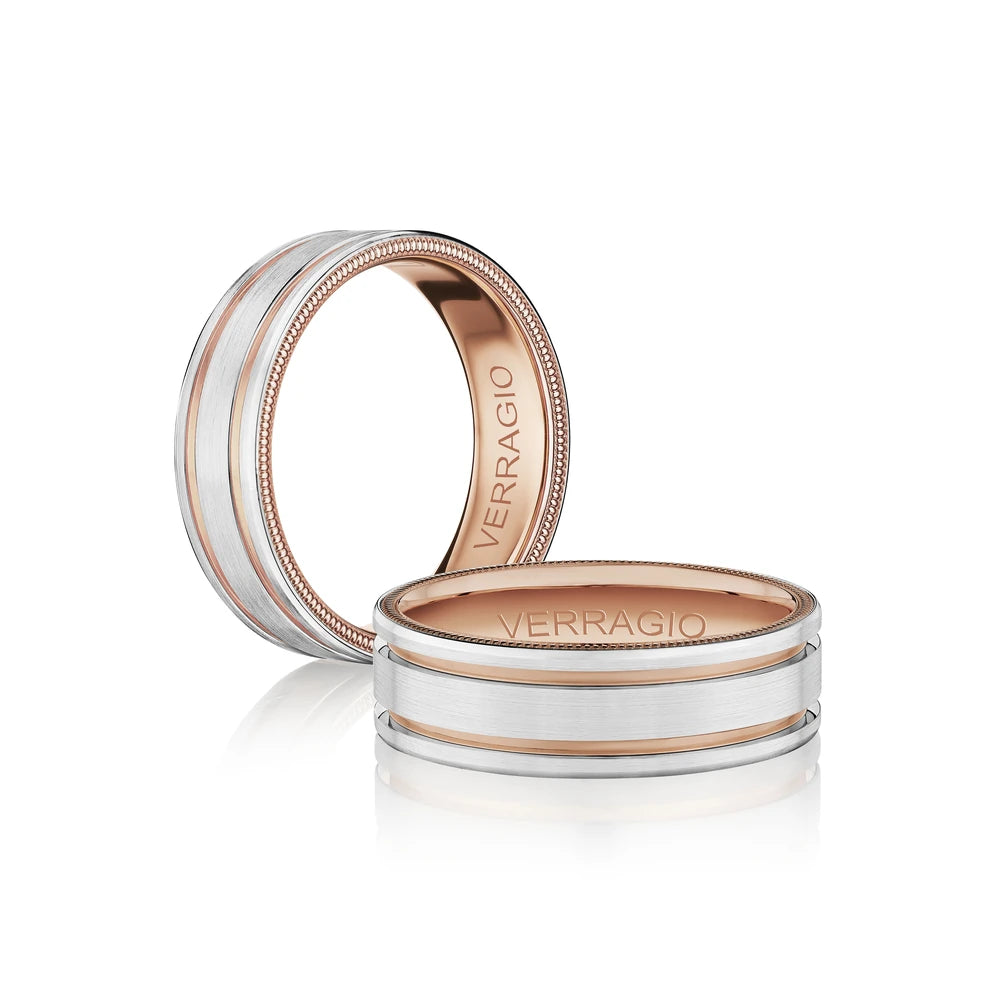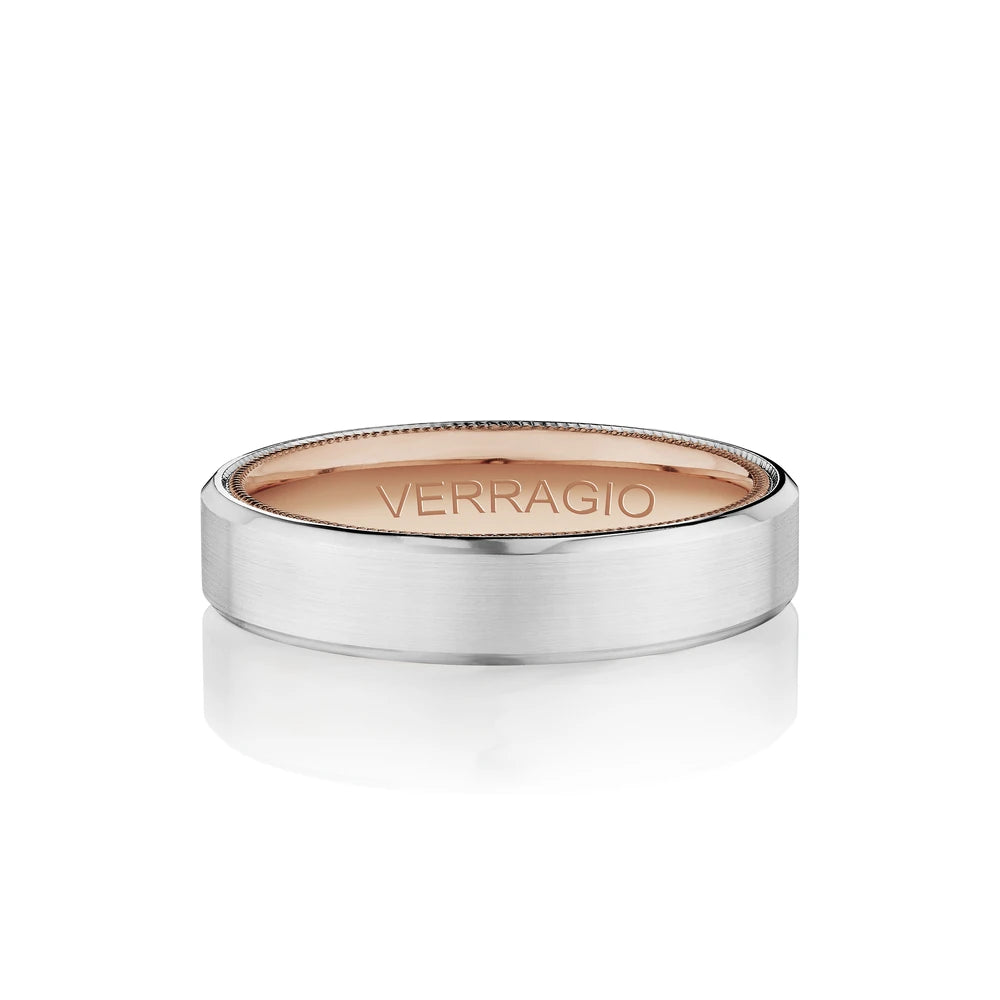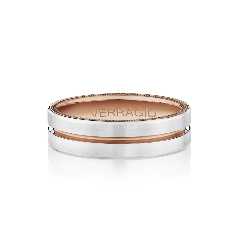 VW-6024 is a elegant 6MM width men's band with a matte finish. Featuring Verragio's timeless signature rose gold beading. Making this ring a perfect match to any Verragio ring.