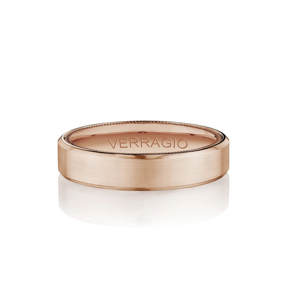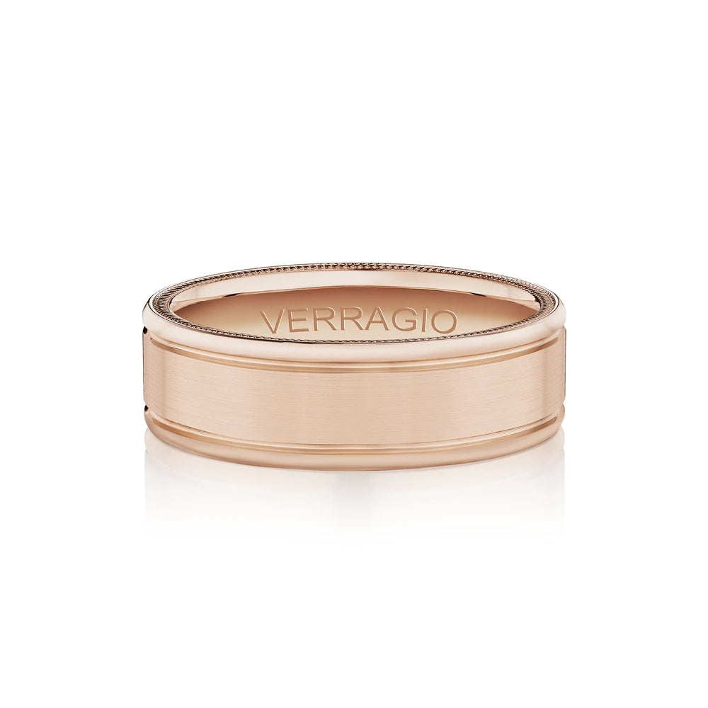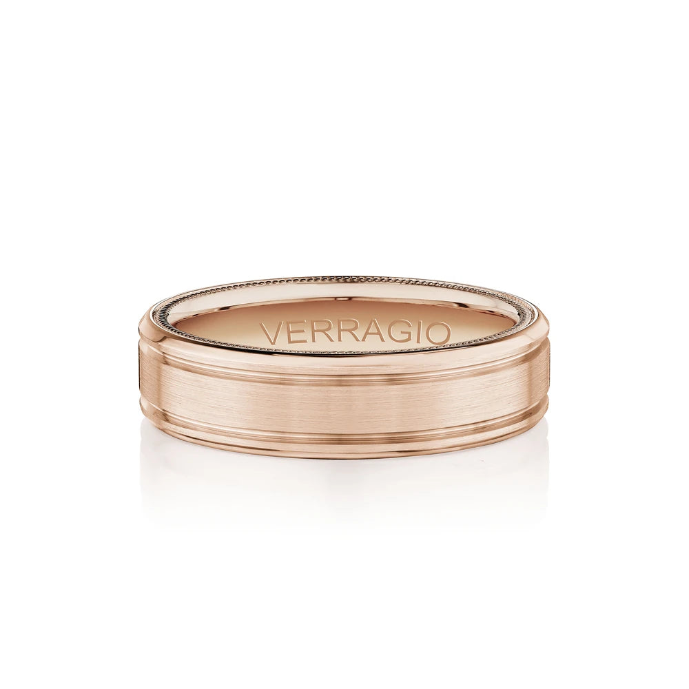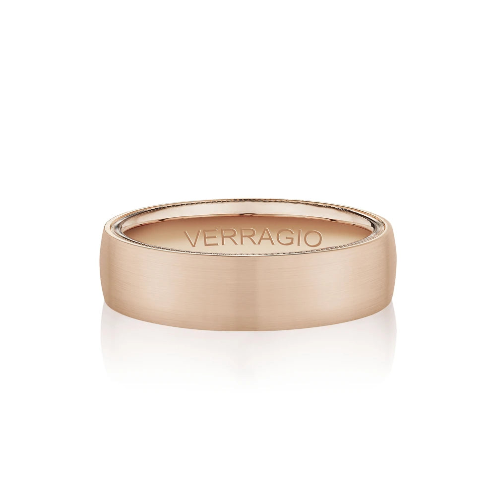 VW-6028 is our classic 6MM men's band accentuated with high polished edges and a matte finish. Adorned with Verragio's stylish signature beading in rose gold.