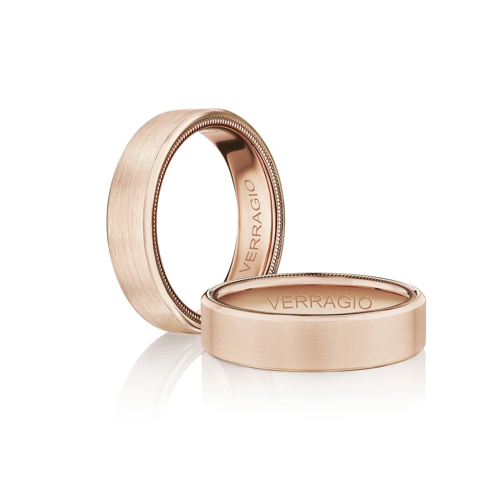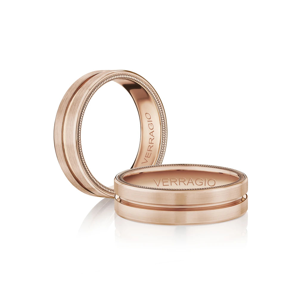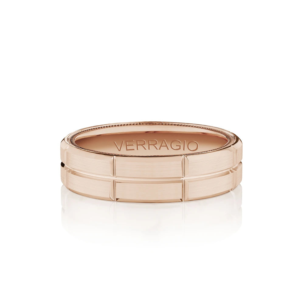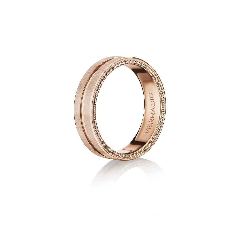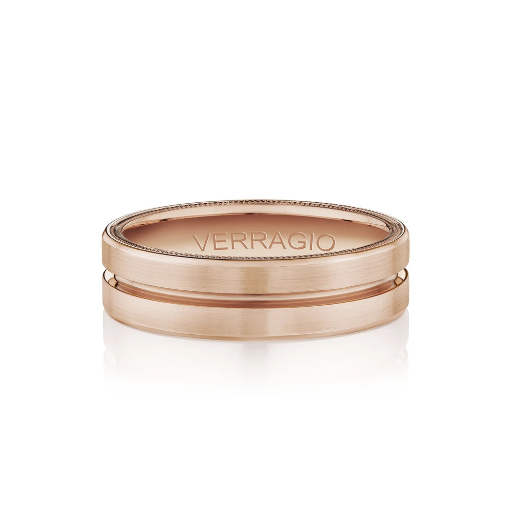 VW-6028 is our classic 6MM men's band accentuated with high polished edges and a matte finish. Adorned with Verragio's stylish signature beading in rose gold.