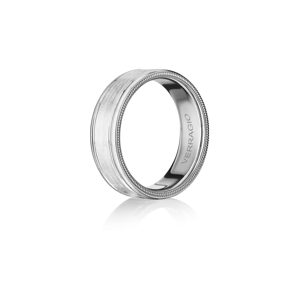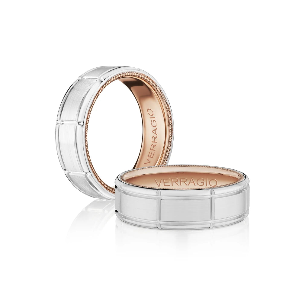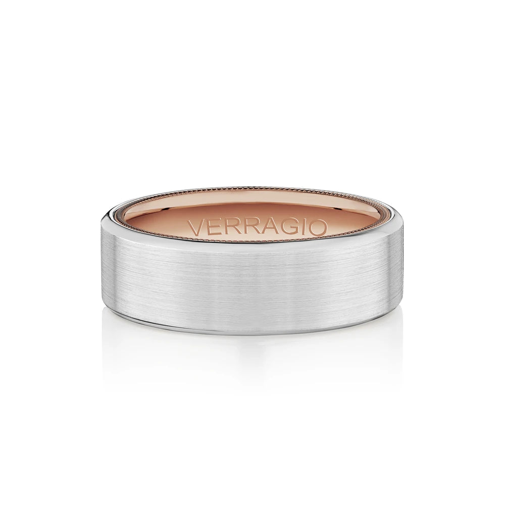 VW-7011 is our stylish 7MM matte finish men's band. Sculpted along the interior is Verragio's signature rose gold beading, designed to compliment your bridal set.
