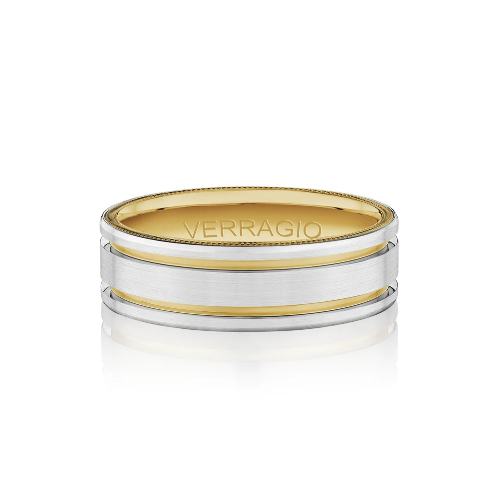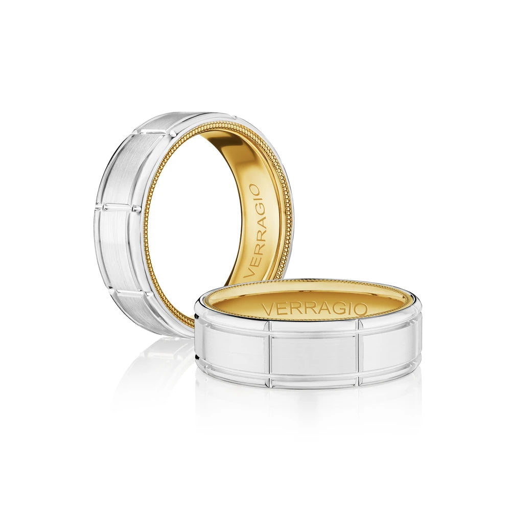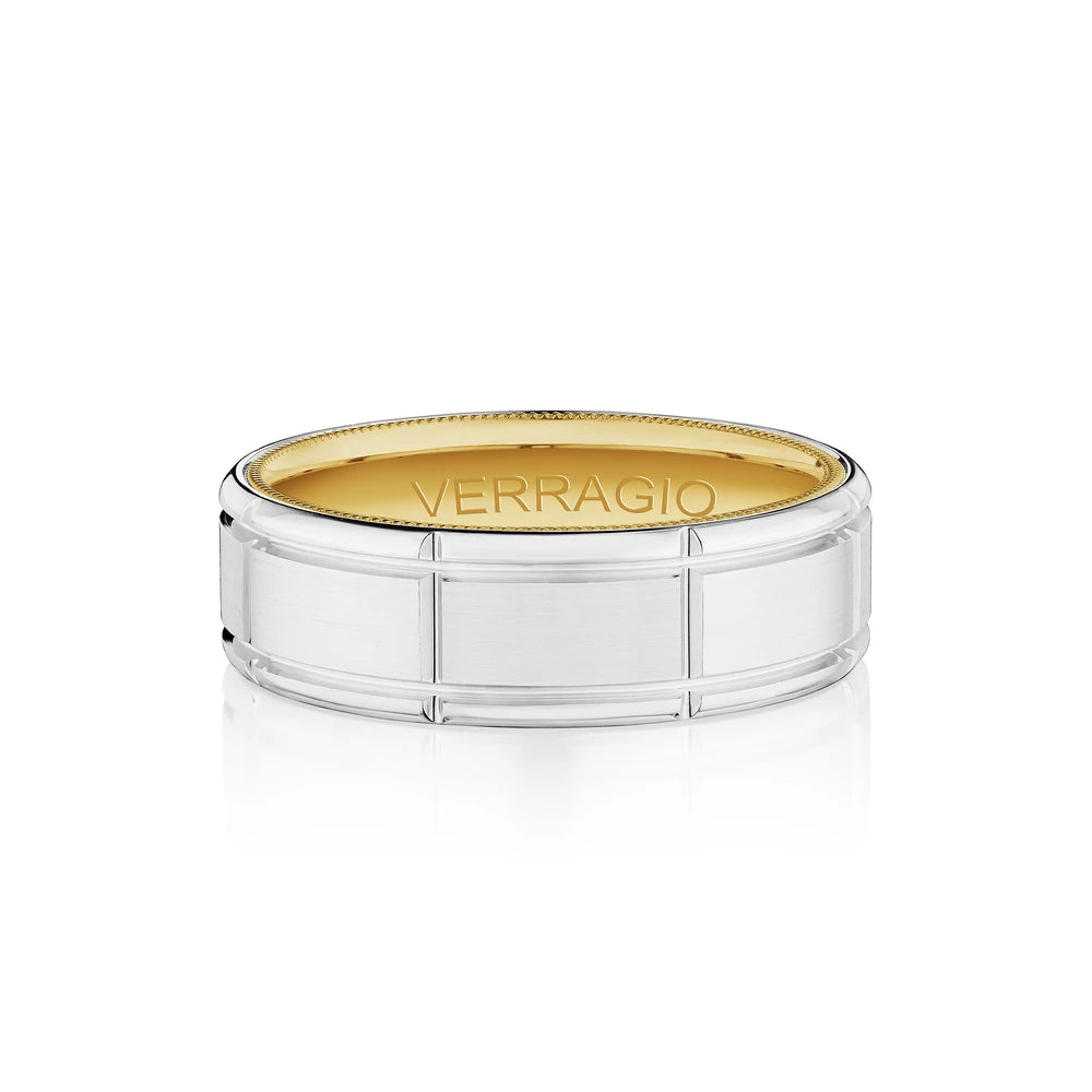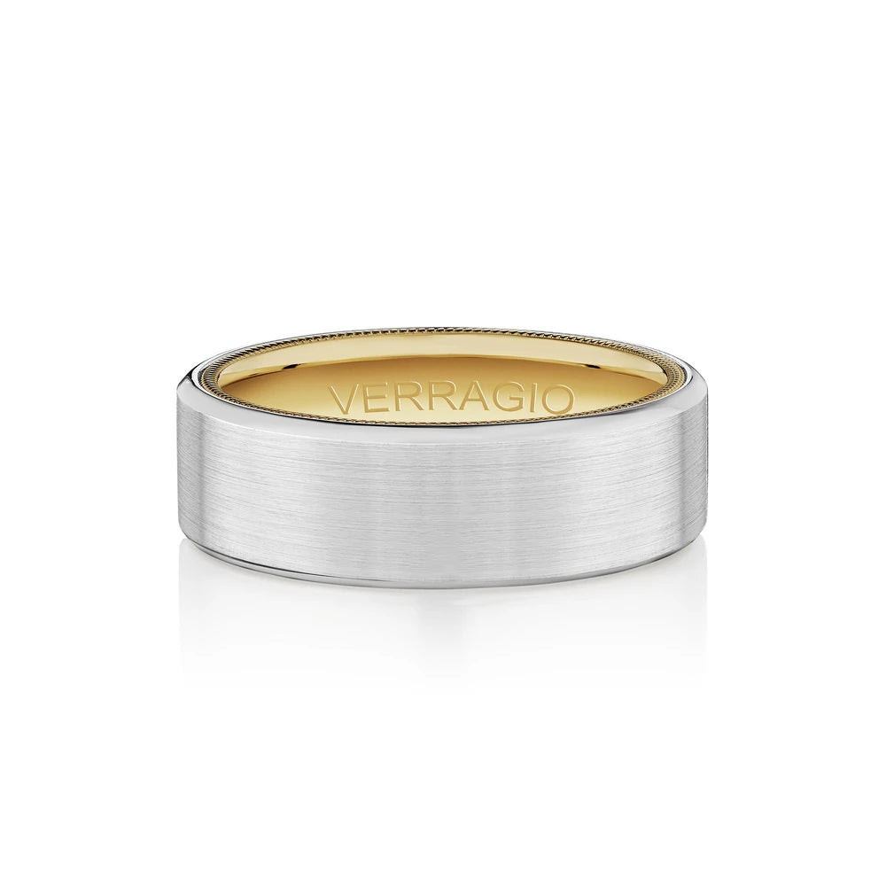 VW-7011 is our stylish 7MM matte finish men's band. Sculpted along the interior is Verragio's signature rose gold beading, designed to compliment your bridal set.