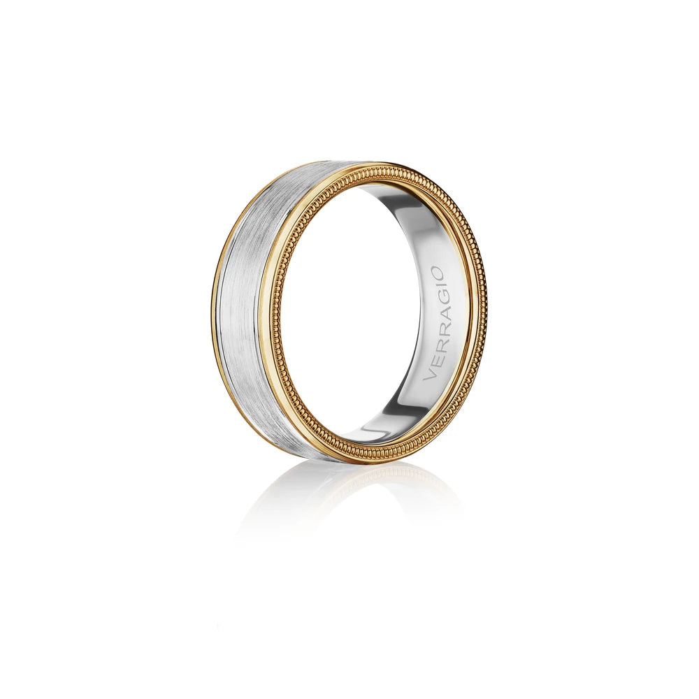 VW-7014 is our classic 7MM men's band accentuated with high polished edges and a matte finish. Adorned with Verragio's stylish signature beading in rose gold.