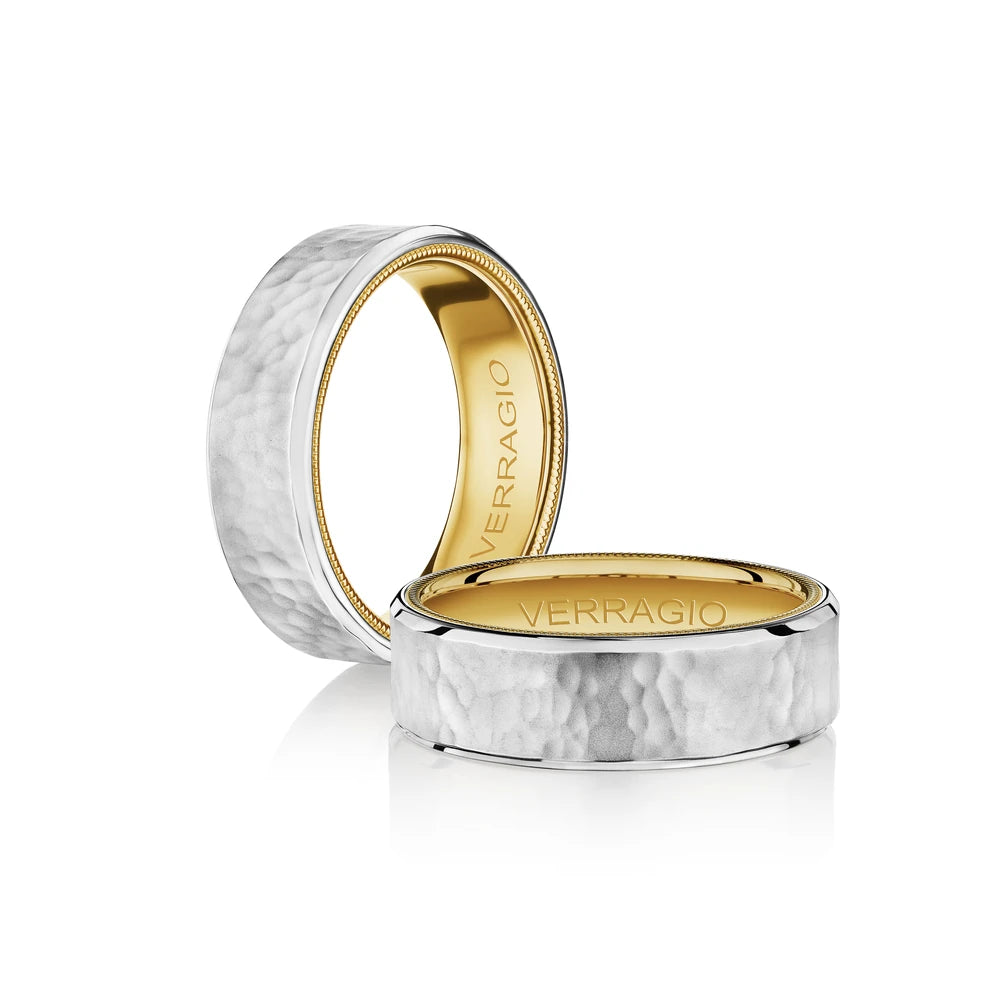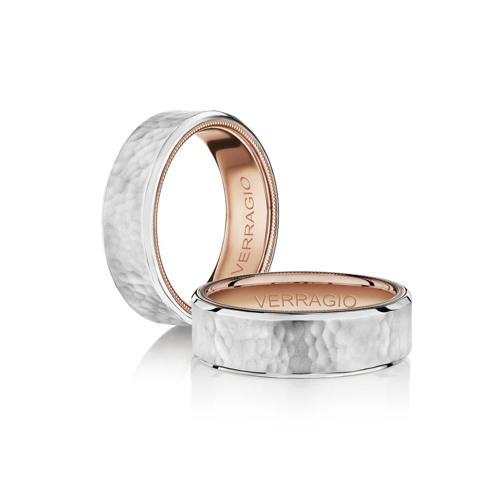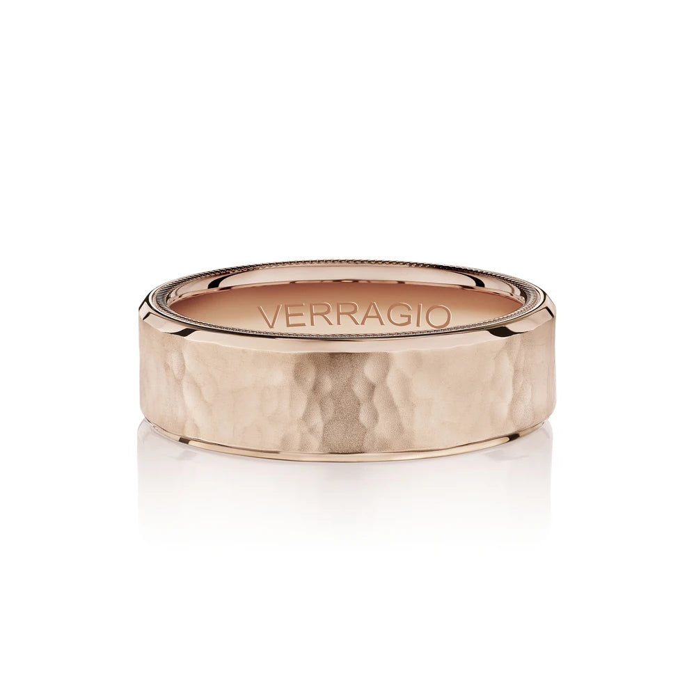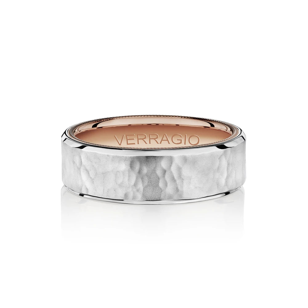 VW-7012 is our handsome 7MM hammered men's band with a matte finish. Refined with a touch of Verragio's signature beading in rose gold, designed to stand the test of time.