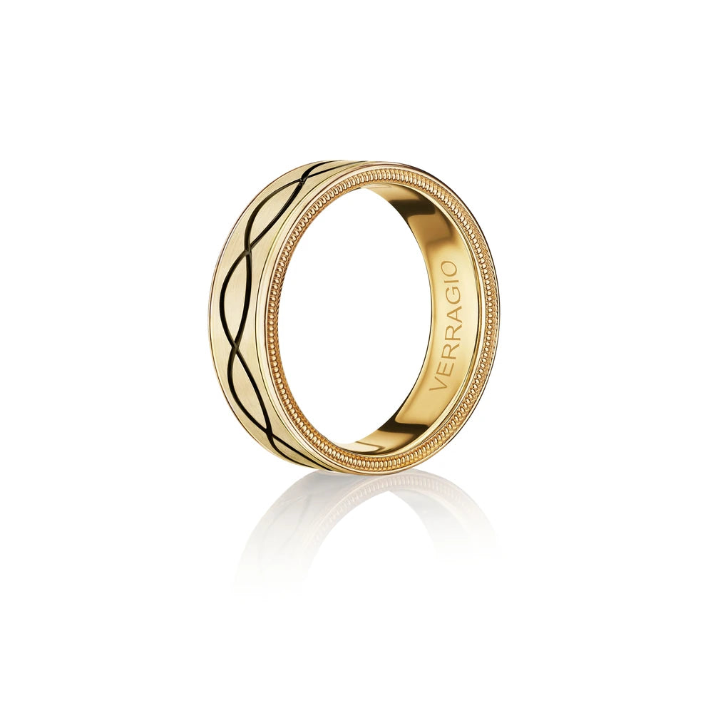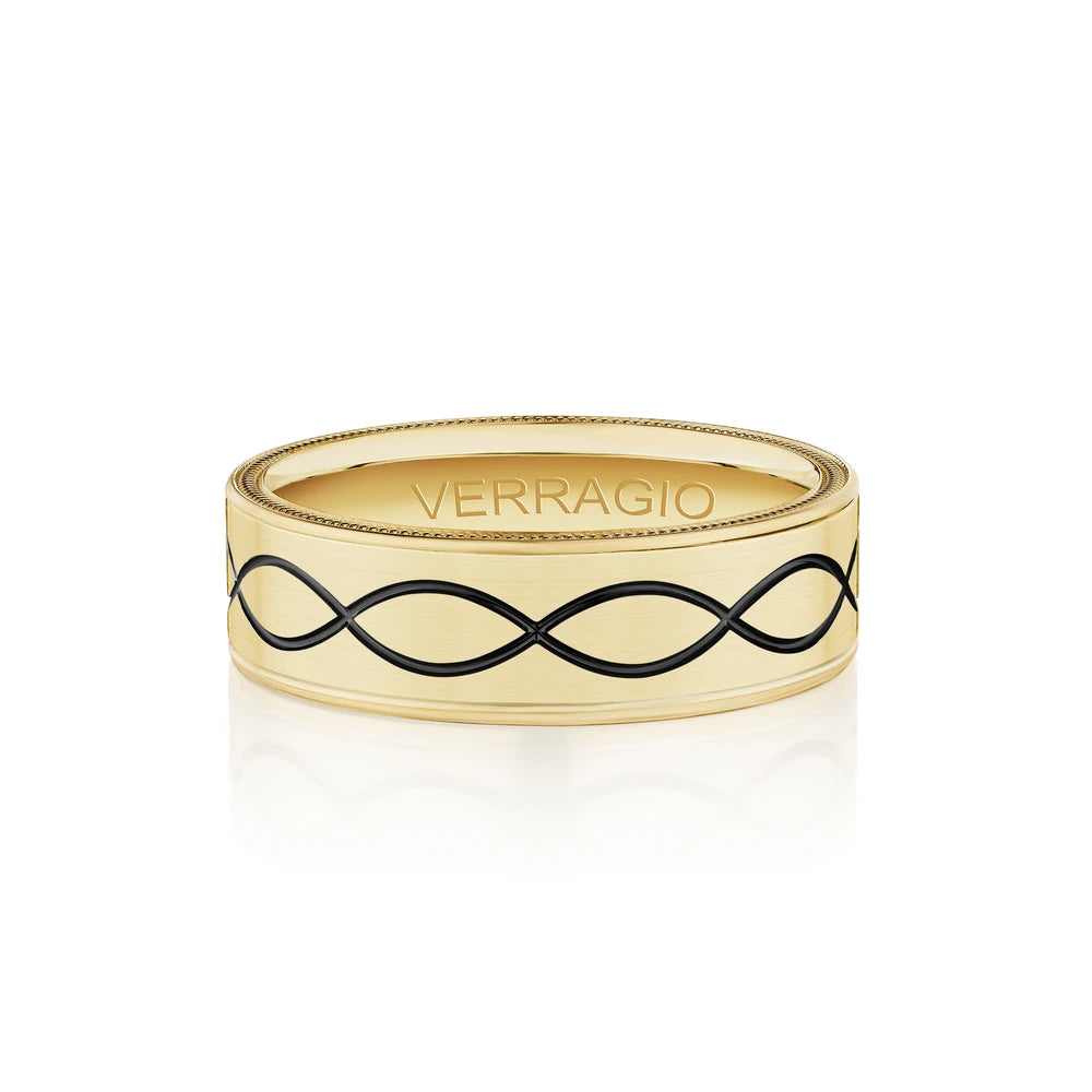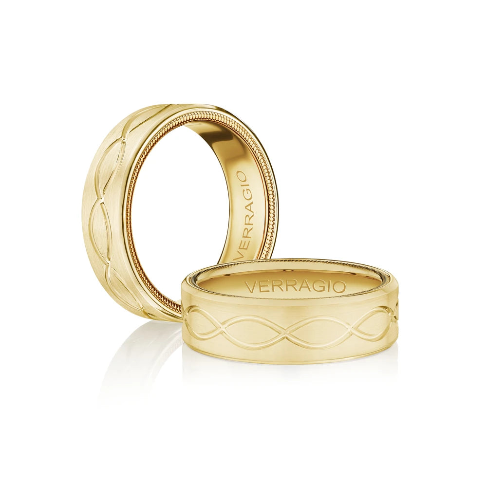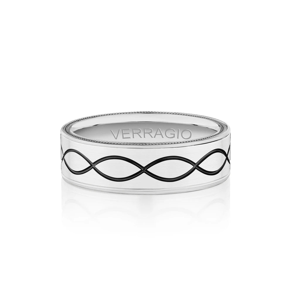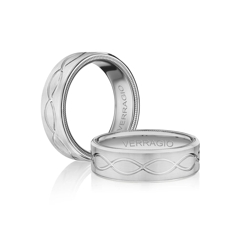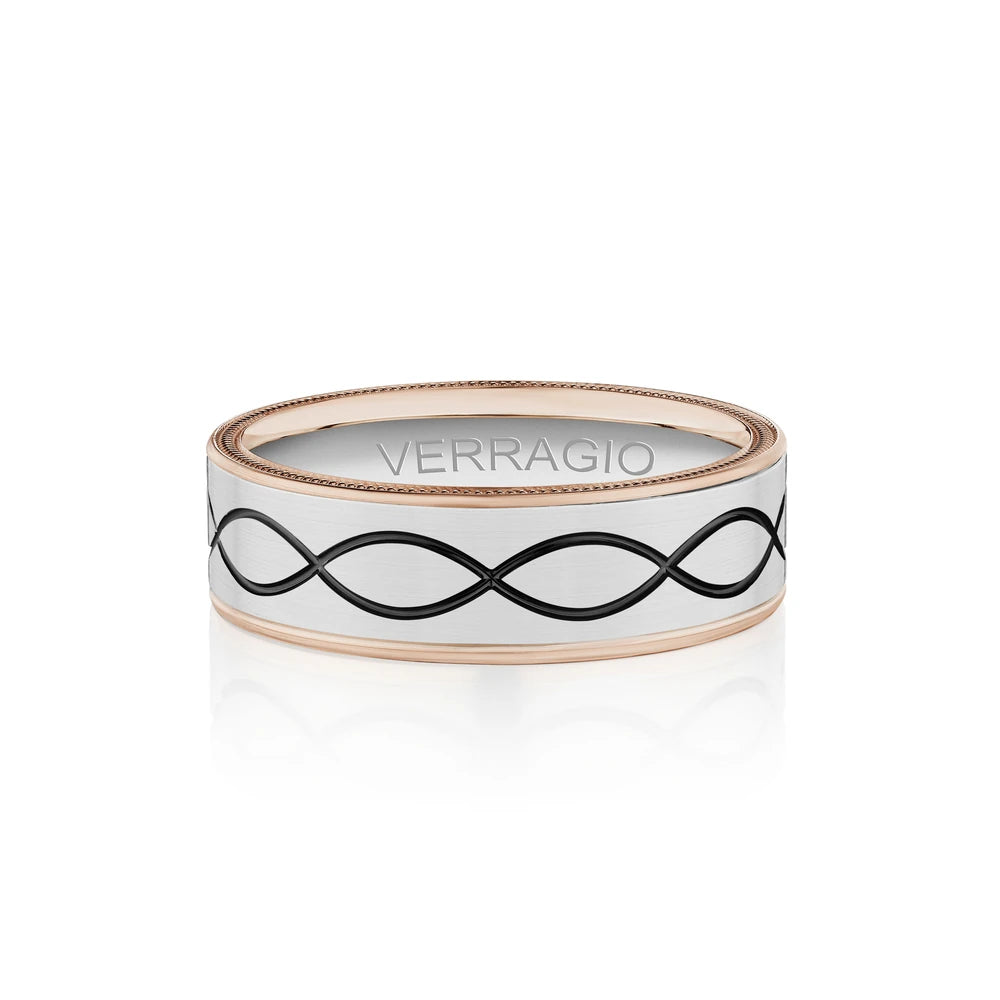 VW-7013 is a classy matte finished 7MM men's band, adorned with Verragio's timeless signature beading in rose. Featured with an exquisite infinity design on the band to symbolize your eternal love.