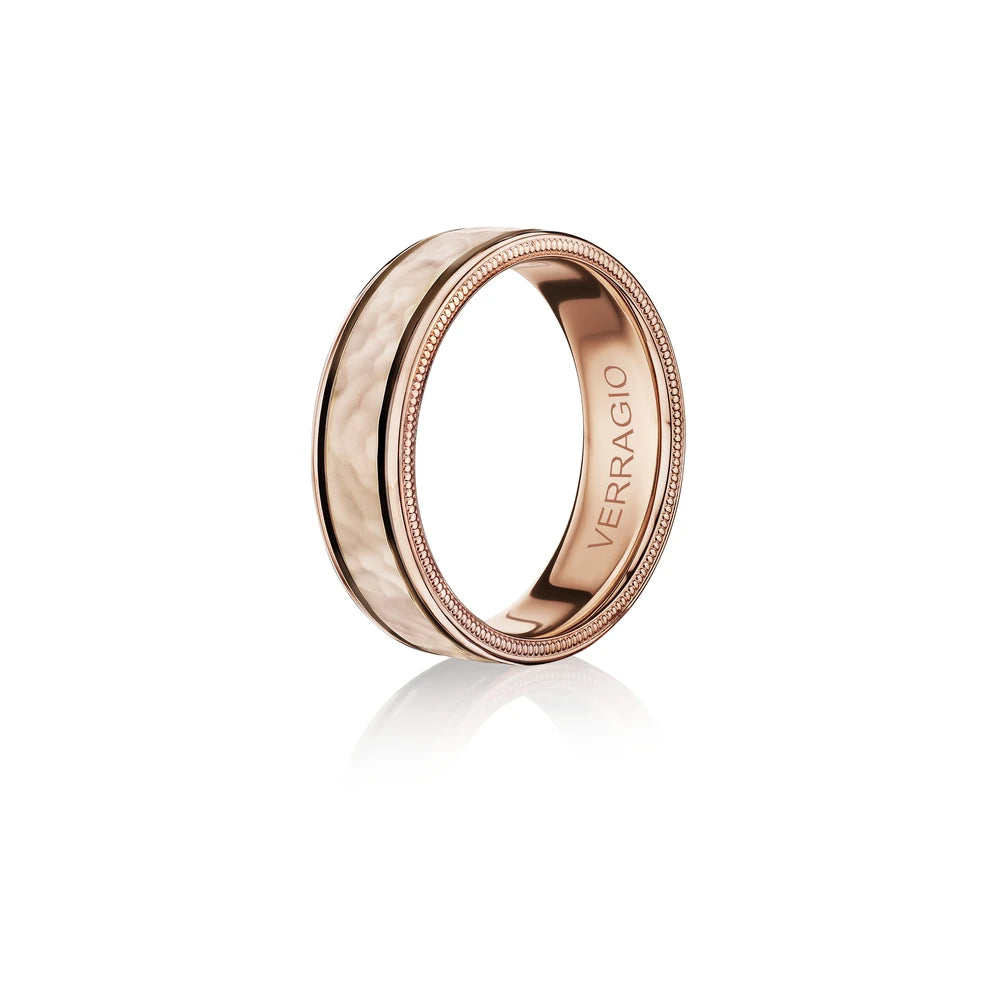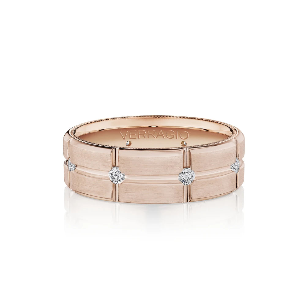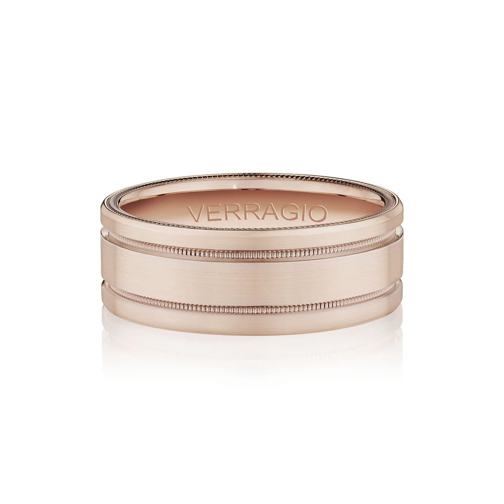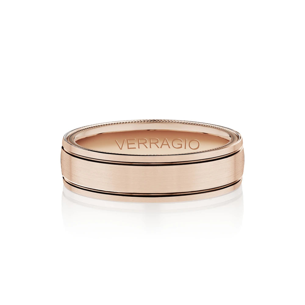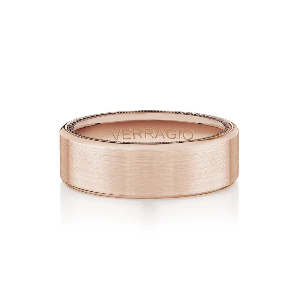 VW-7014 is our classic 7MM men's band accentuated with high polished edges and a matte finish. Adorned with Verragio's stylish signature beading in rose gold.