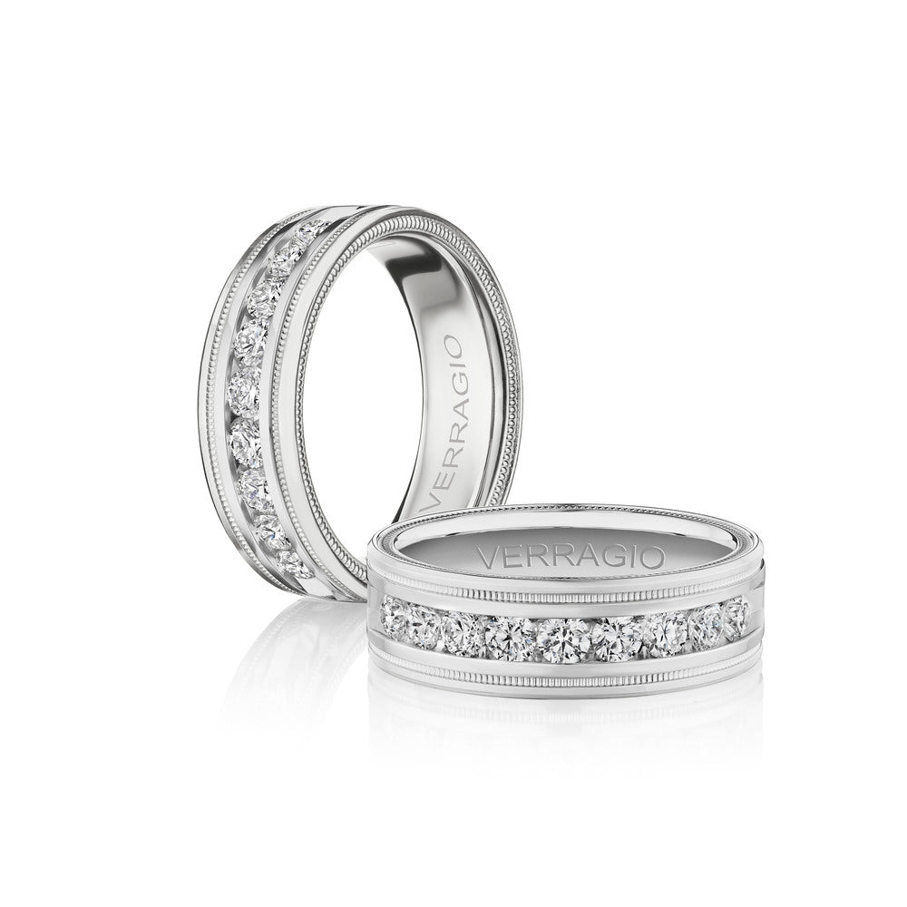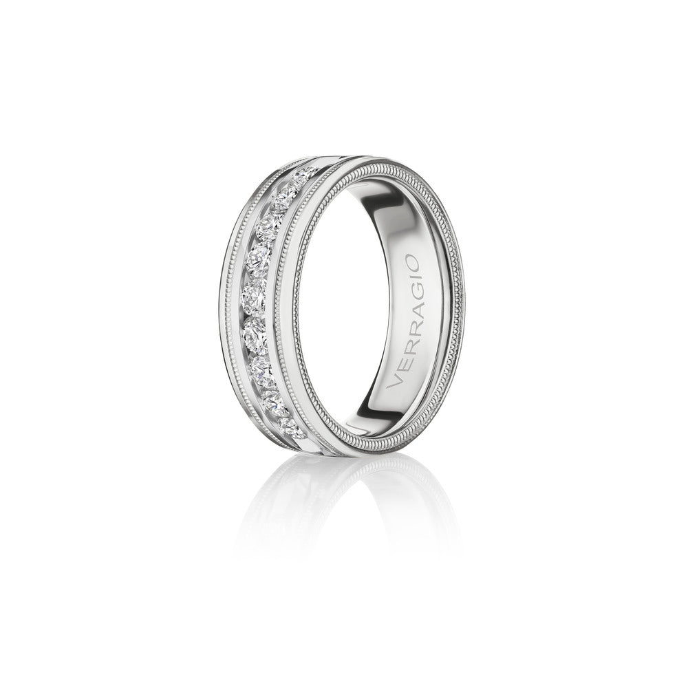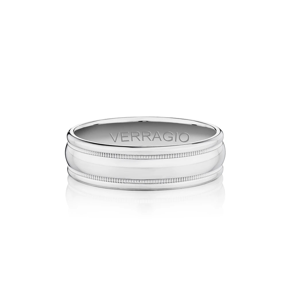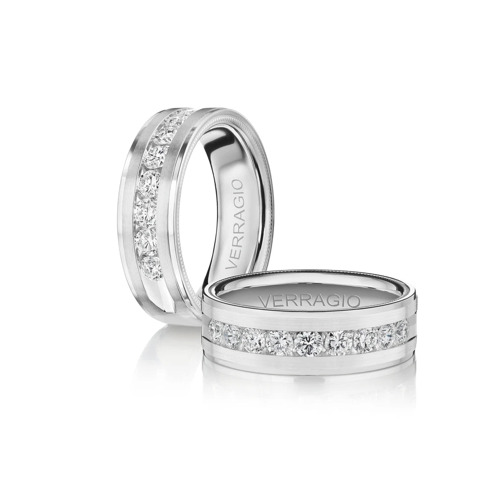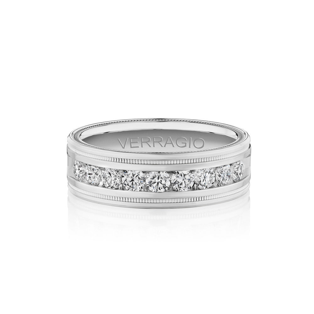 One of our latest wedding band designs in a 8mm width with a high polish finish, made complete with signature Verragio bead-work giving it a tailored feel. Whether you prefer modern or traditional styles, these wedding bands are precisely crafted with artisanal details to stand out.